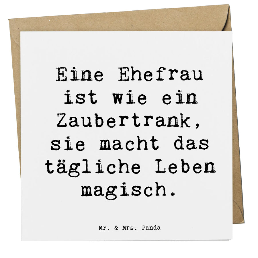 Die Deluxe Karte für Deine Ehefrau von Mr. & Mrs. Panda ist das perfekte Geschenk, um Deine Liebe und Dankbarkeit auszudrücken. Mit einem zauberhaften Motiv, das mit dem Spruch "Eine Ehefrau ist wie ein Zaubertrank, sie macht das tägliche Leben magisch." verziert ist, wird diese Karte besonders emotionale Momente unvergesslich machen.