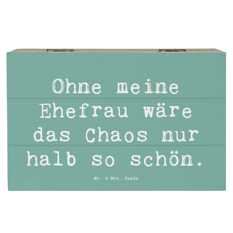 Holzkiste Spruch Ohne meine Ehefrau wäre das Chaos nur halb so schön. - 19 x 12 cm - Meeresbrise