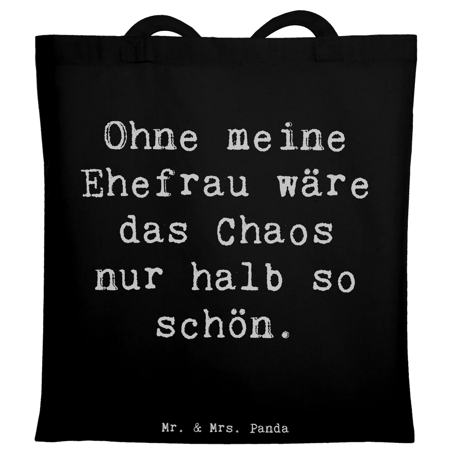 Tragetasche Spruch Ohne meine Ehefrau wäre das Chaos nur halb so schön. - Schwarz
