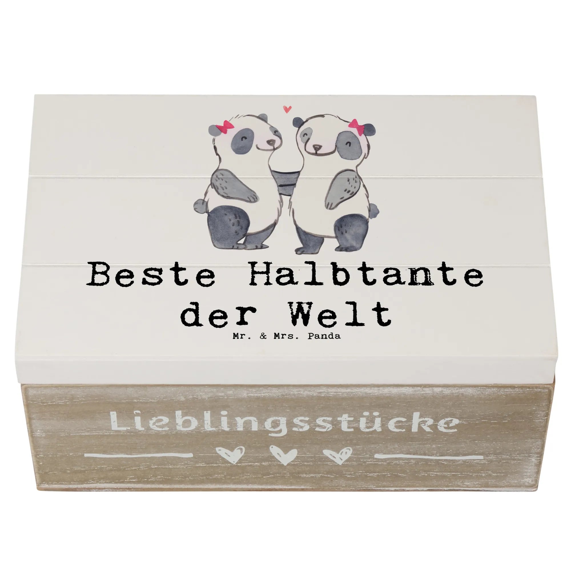 Skrzynia drewniana Panda Najlepsza ciocia na świecie - 19 x 12 cm - biały