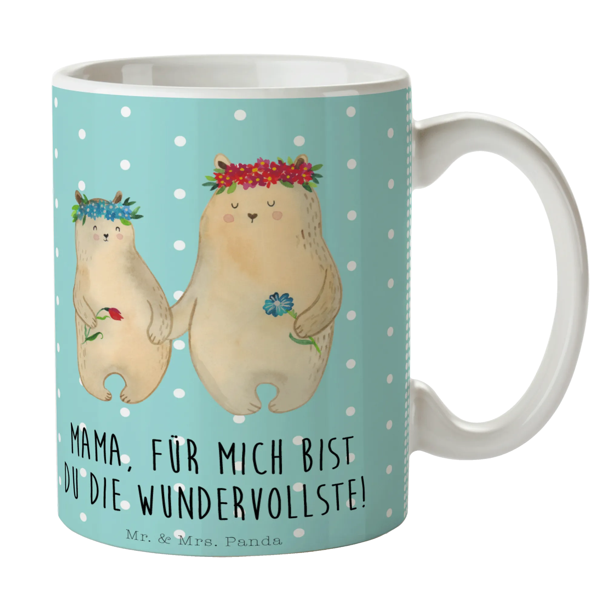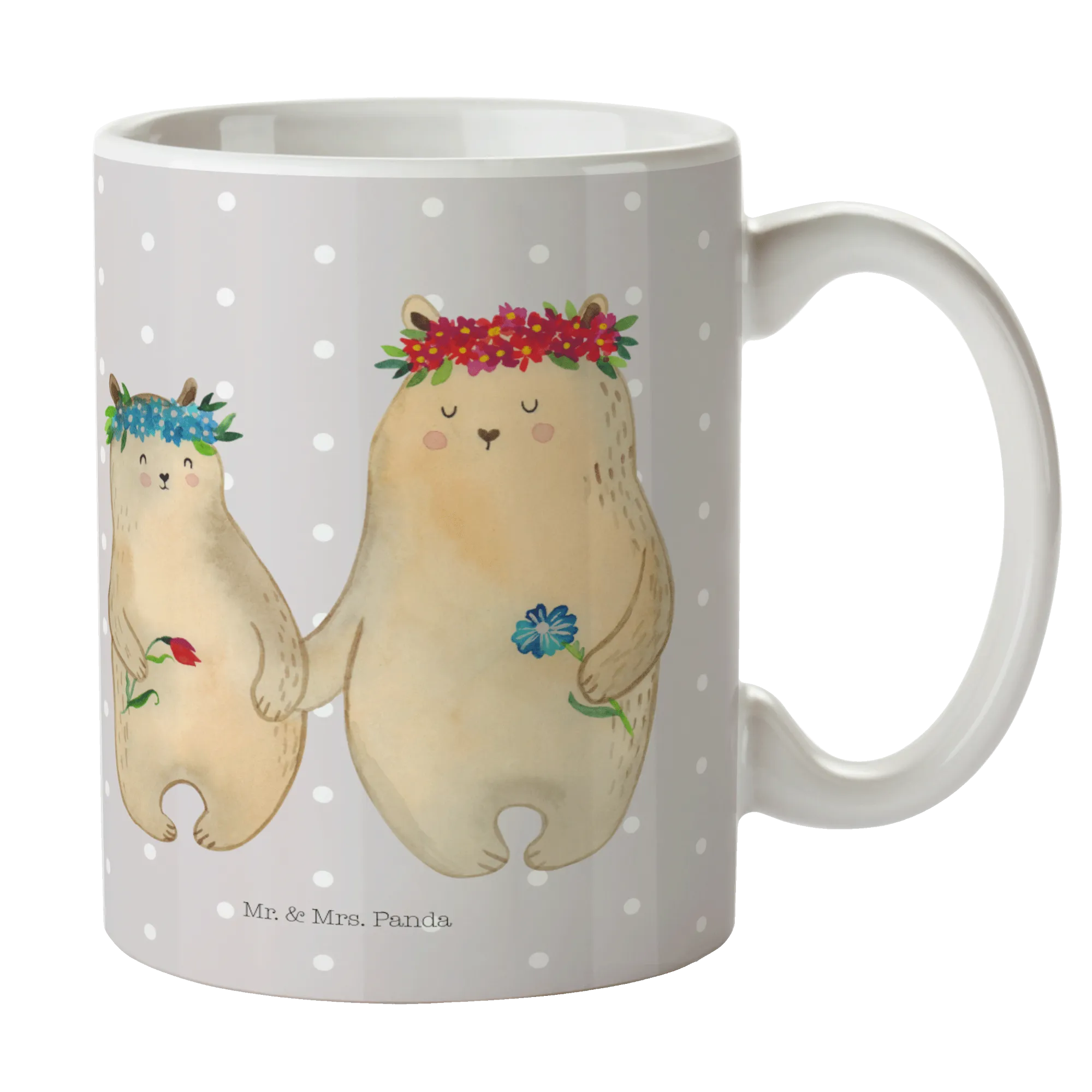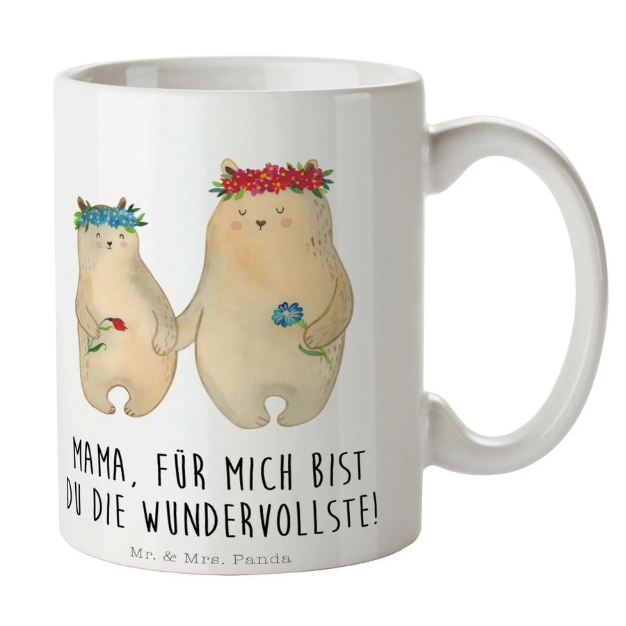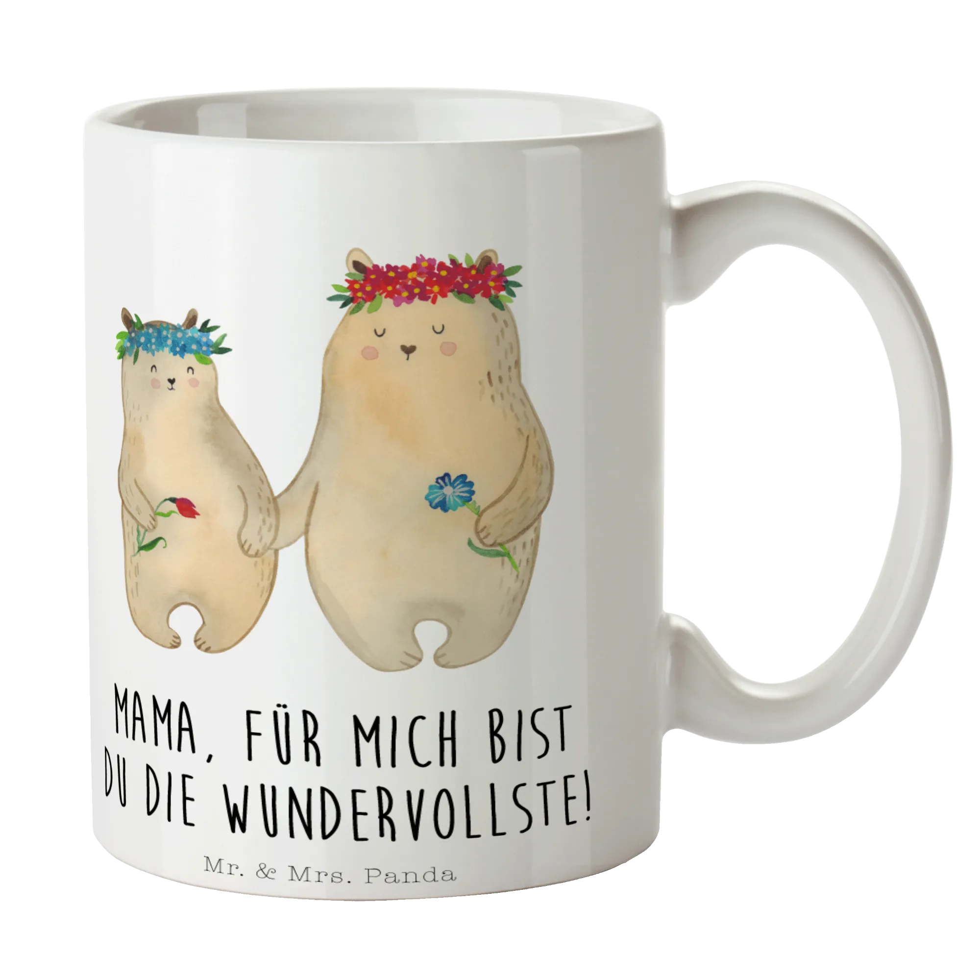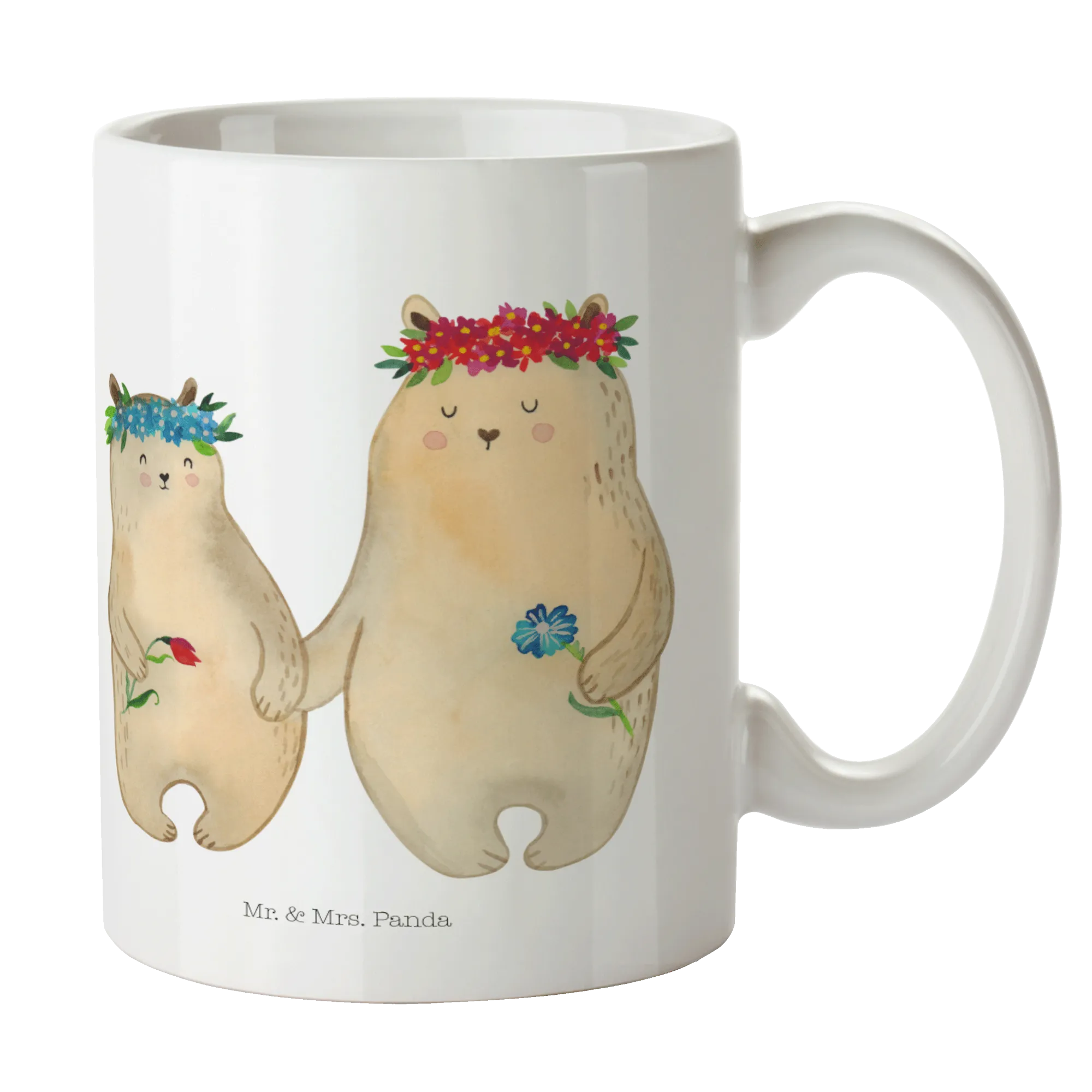 Kubek Niedźwiedzie z wianuszkiem - z napisem - Biały