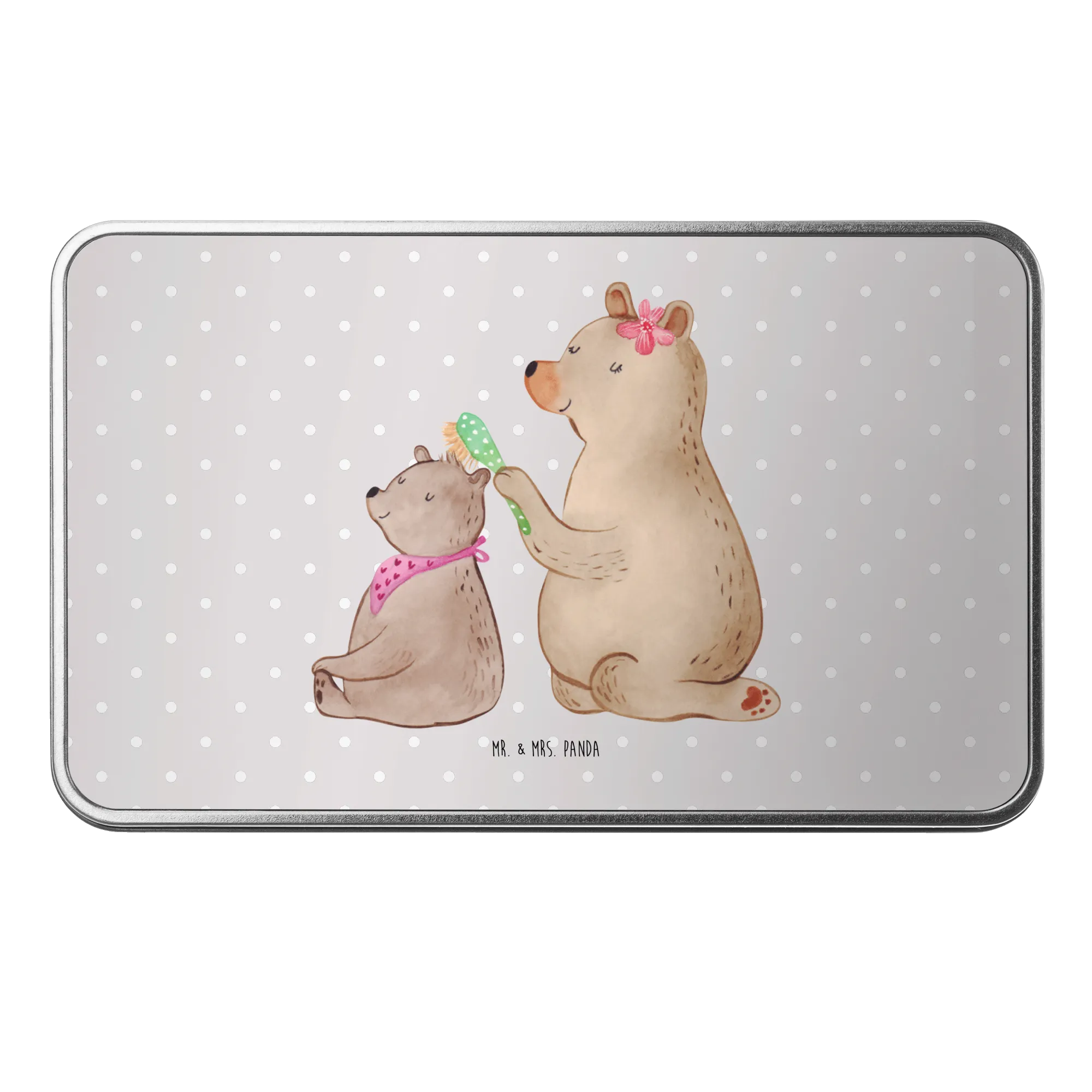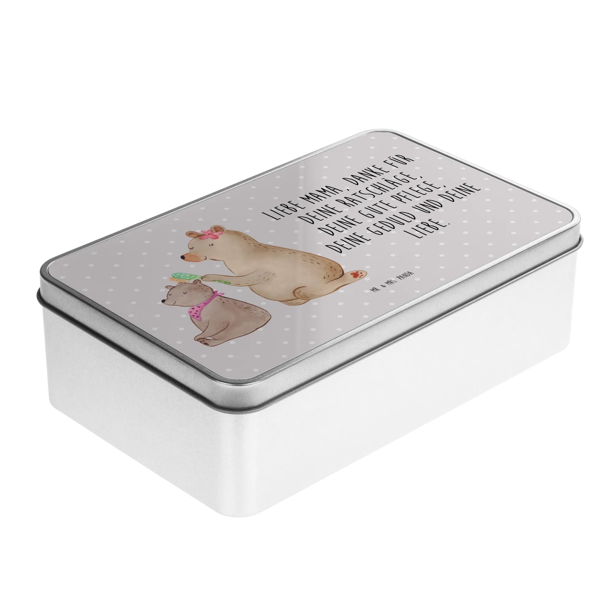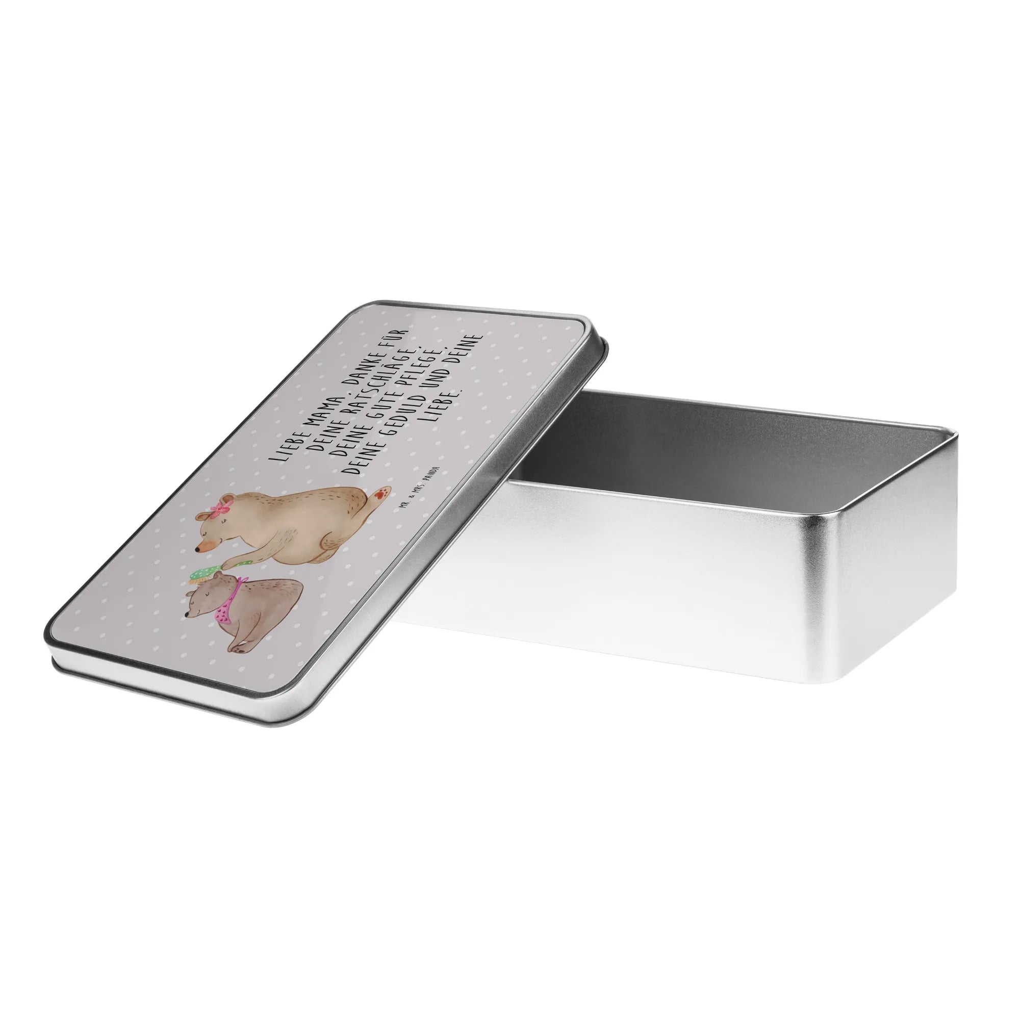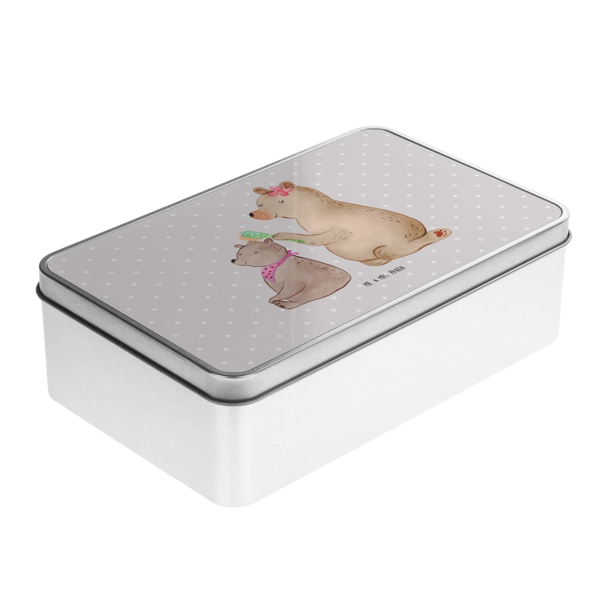 Metalowa puszka niedźwiedź dziecko - z napisem - Szary Pastel