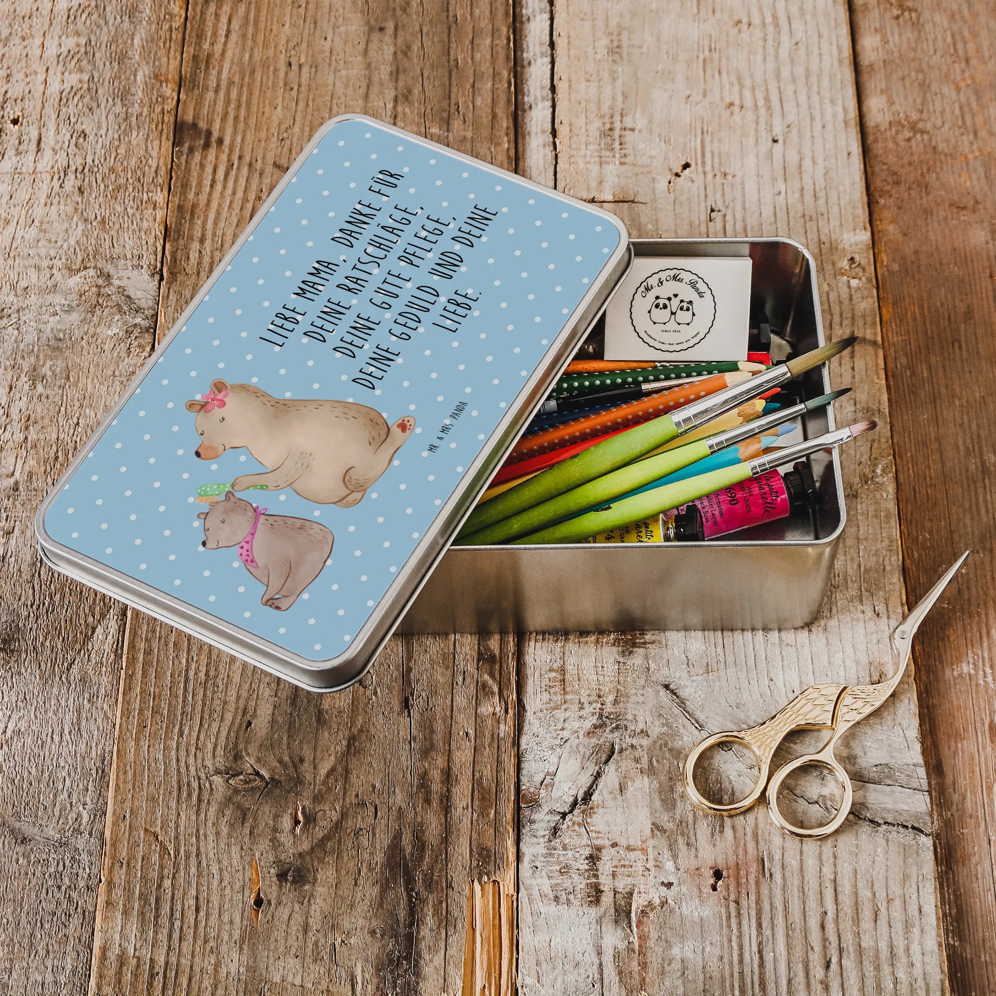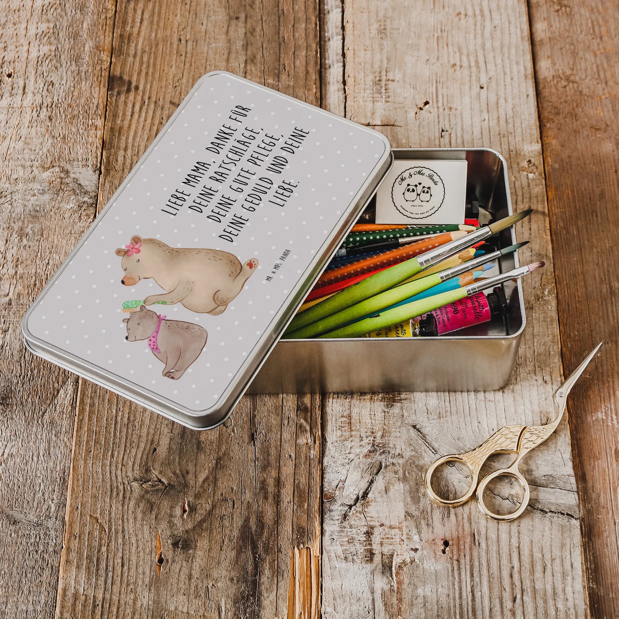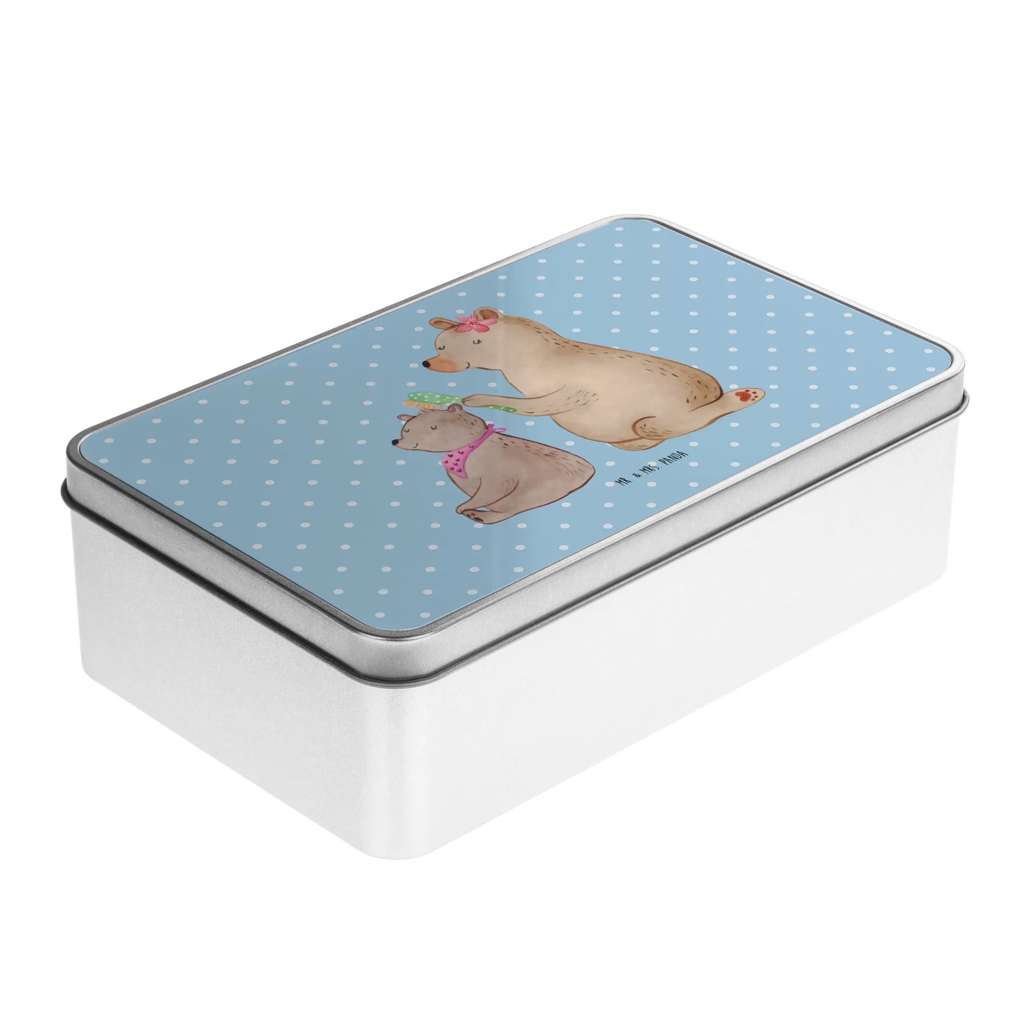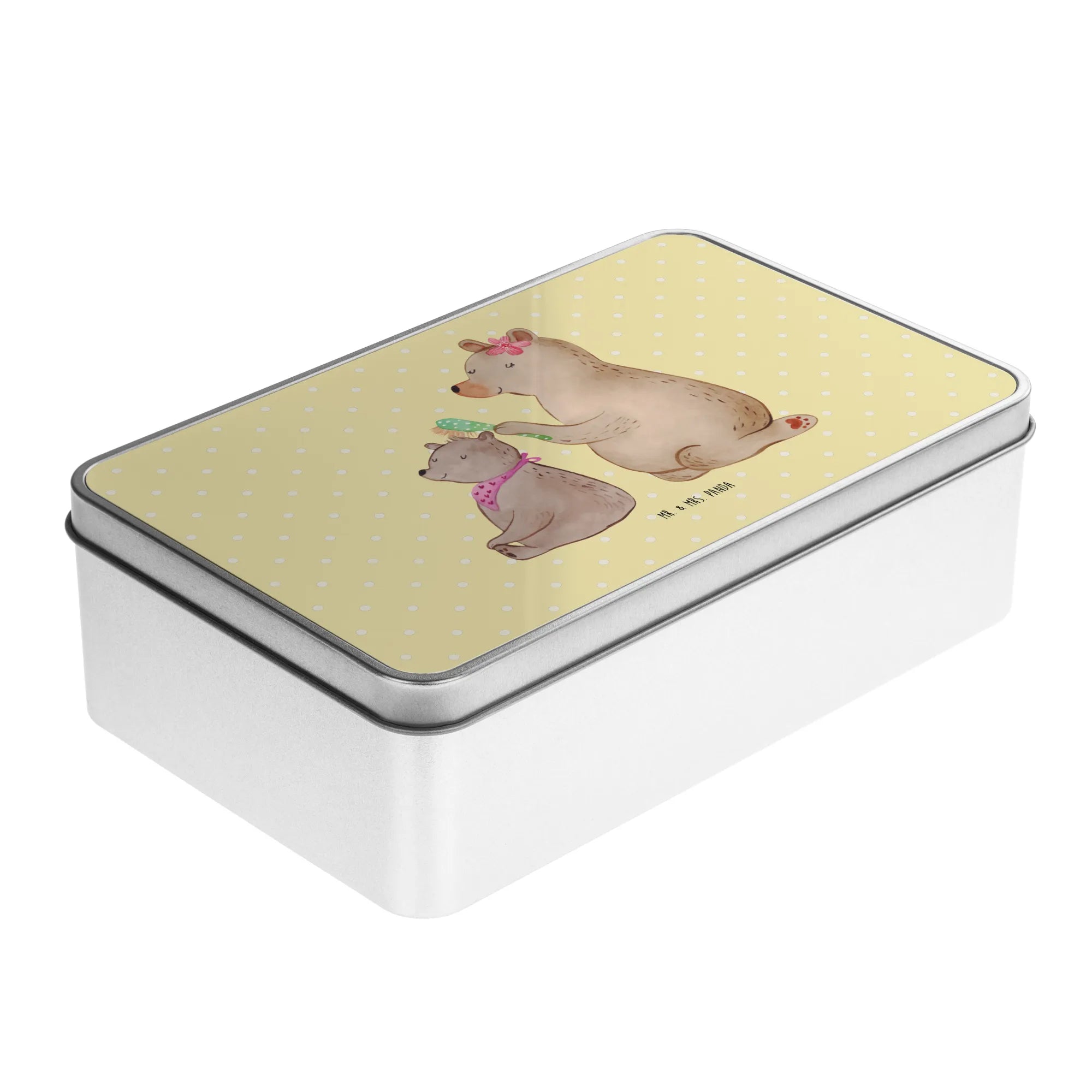 Metalowa puszka niedźwiedź dziecko - z napisem - Szary Pastel