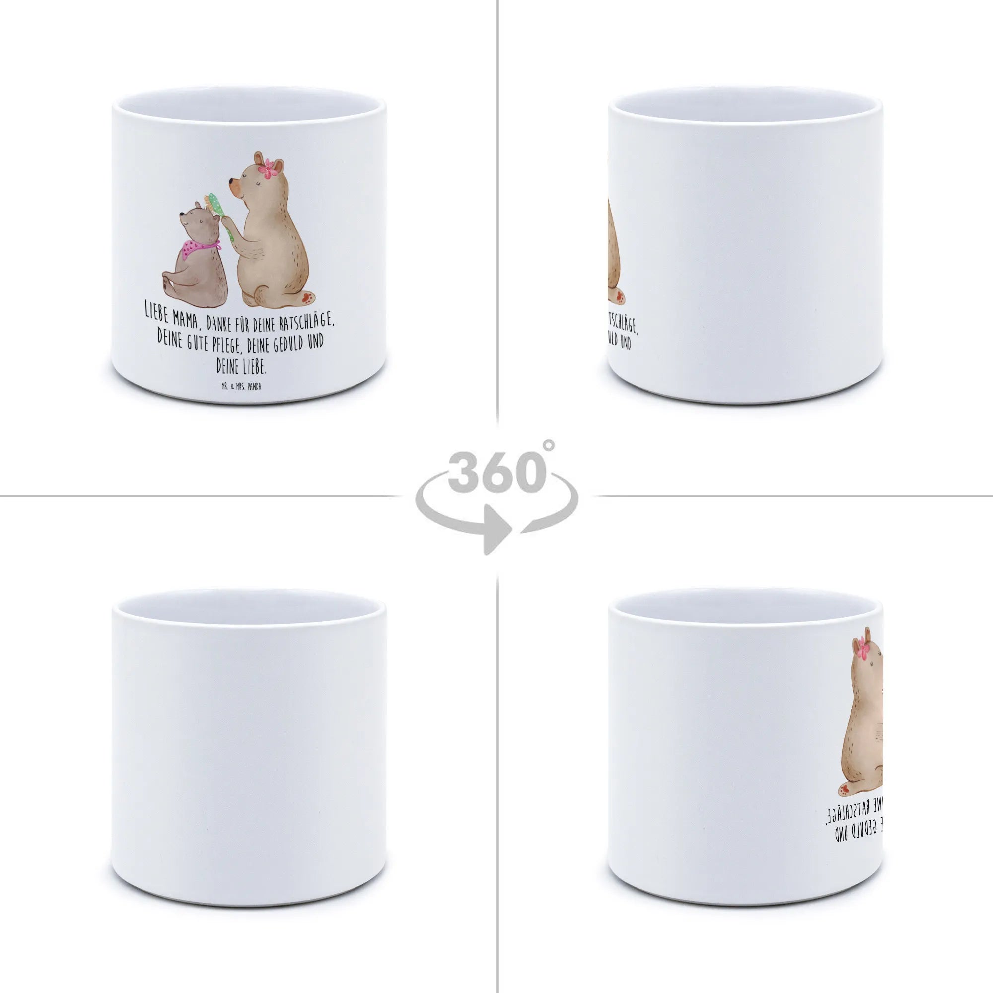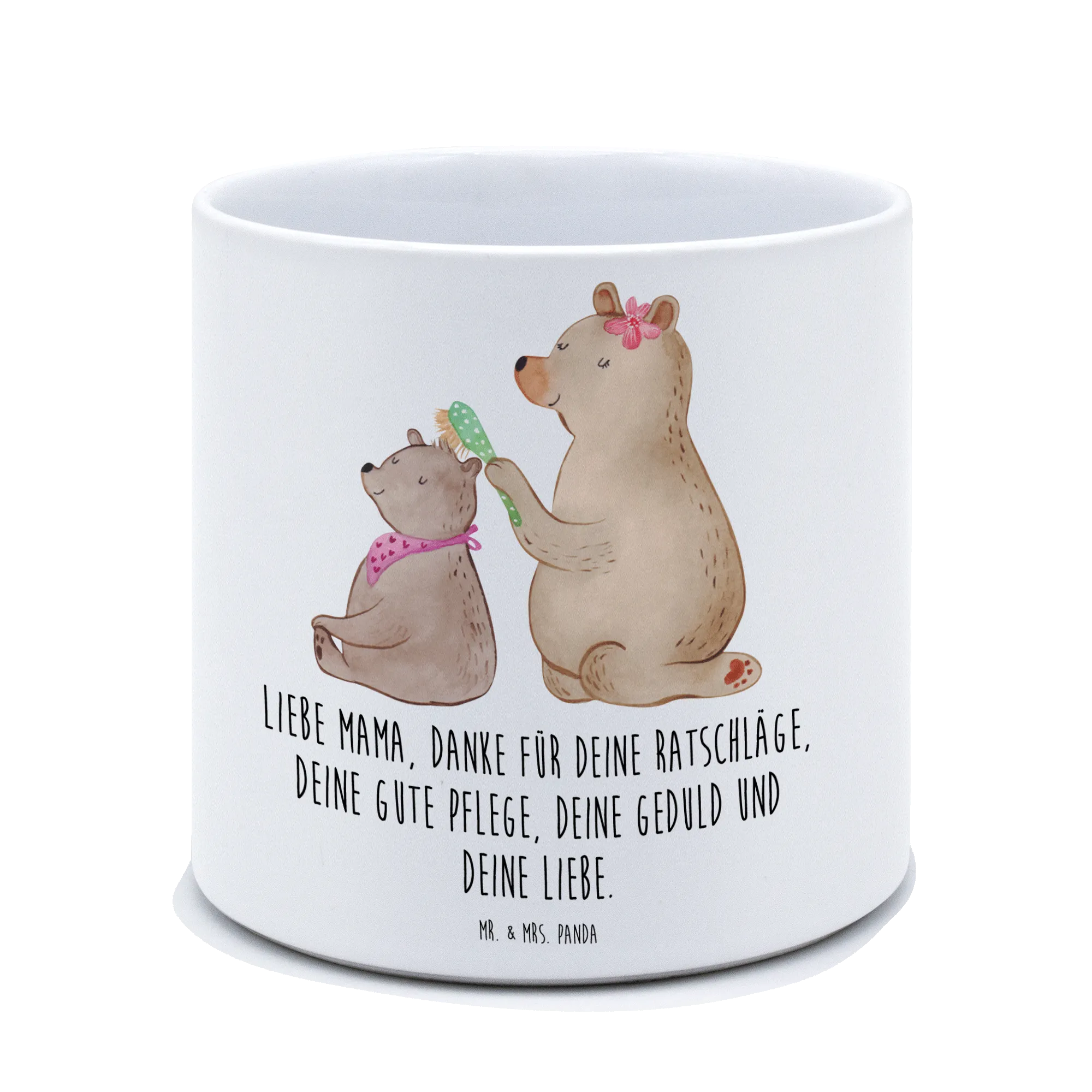 Entdecke den zauberhaften XL Blumentopf mit dem liebevoll gestalteten Motiv "Bär mit Kind" aus der Familie Kollektion von Mr. & Mrs. Panda! Dieser besondere Blumentopf ist nicht nur ein echtes Highlight für deine Pflanzen, sondern auch ein wundervolles Geschenk für alle Mamas, Mutti oder Mütter, die dir am Herzen liegen. Perfekt als Geschenk zum Muttertag, Geburtstag oder einfach, um Mama zu zeigen, wie viel sie dir bedeutet!