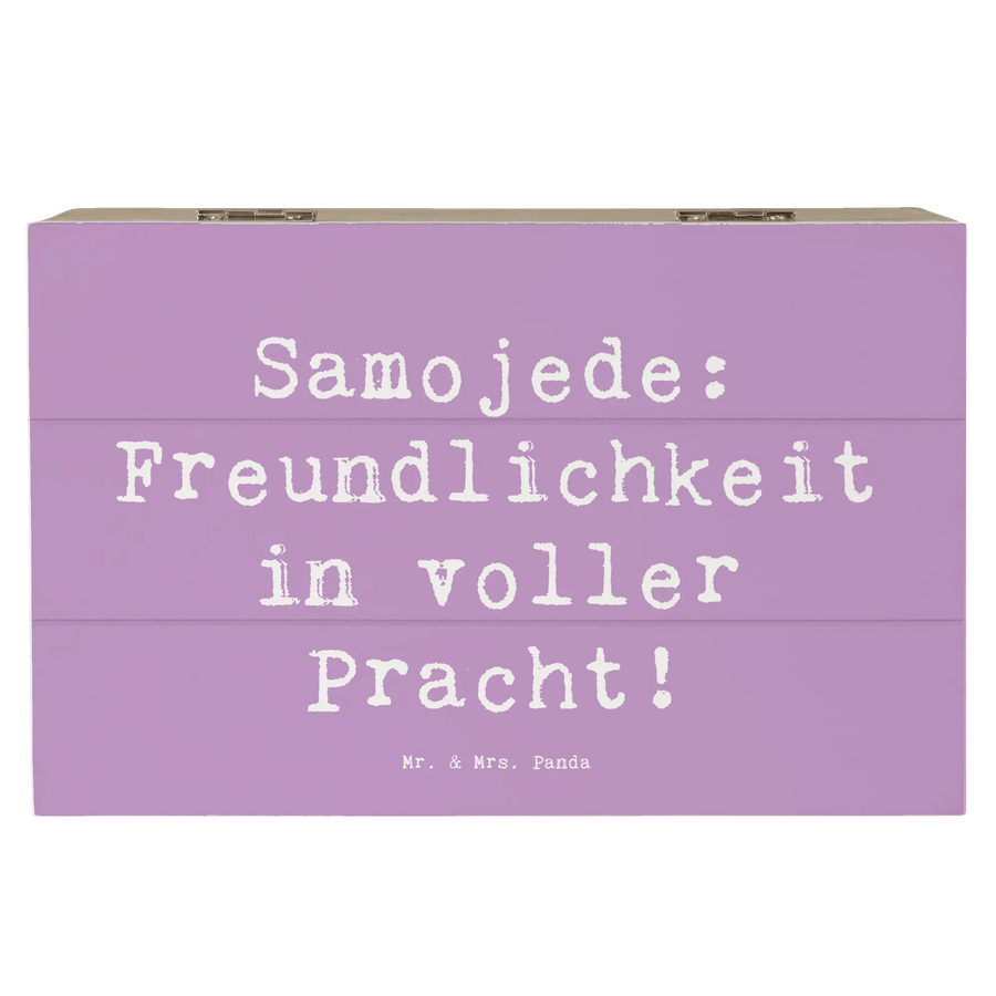 Die wunderschöne Holzkiste von Mr. & Mrs. Panda ist ein wahres Schmuckstück für alle Hundeliebhaber, insbesondere für die Fans der Hunderasse Samojede. Mit ihrem charmanten Design in Lavendeltraum und dem inspirierenden Spruch "Samojede: Freundlichkeit in voller Pracht!" ist diese Kiste nicht nur ein Aufbewahrungsort, sondern auch ein liebevolles Erinnerungsstück.
