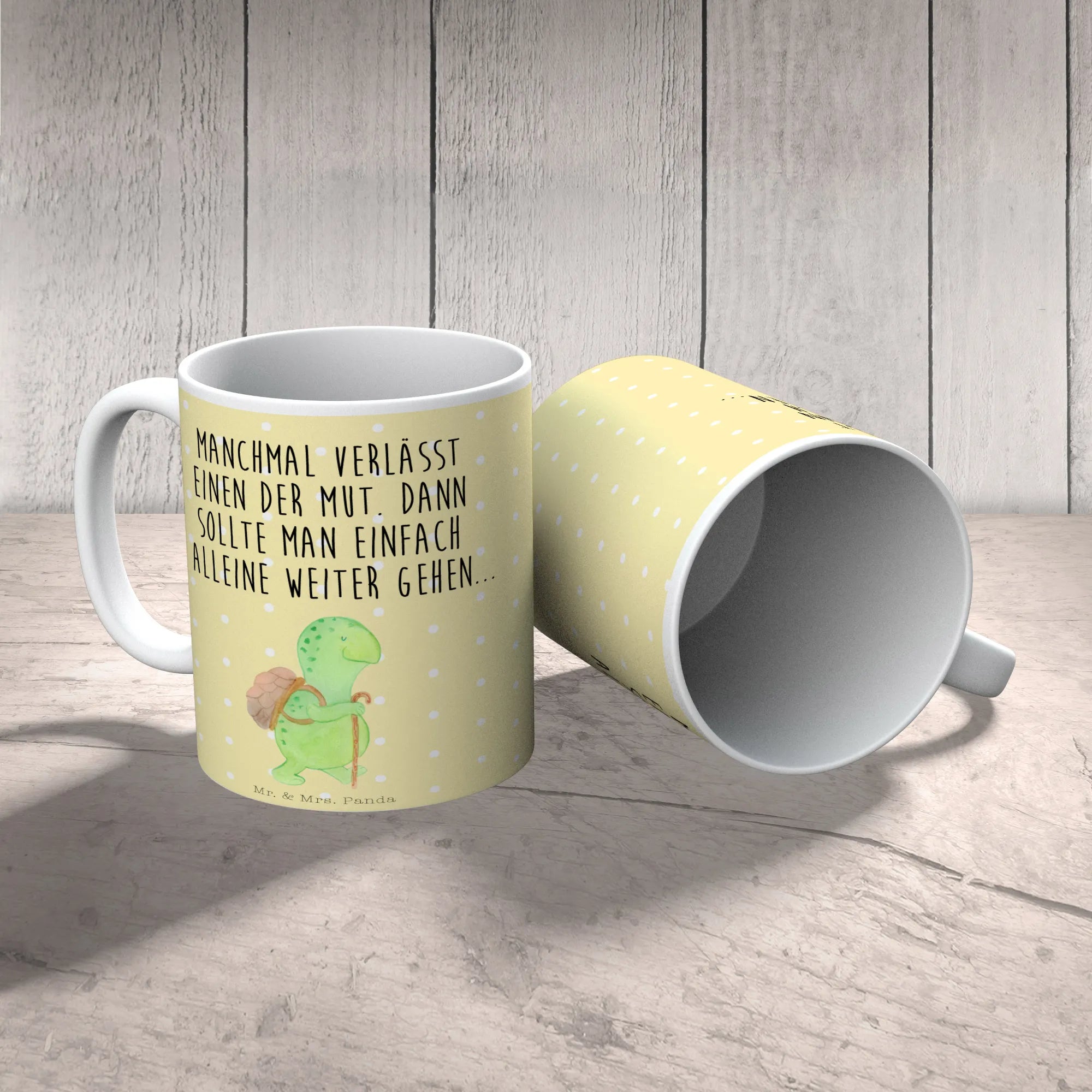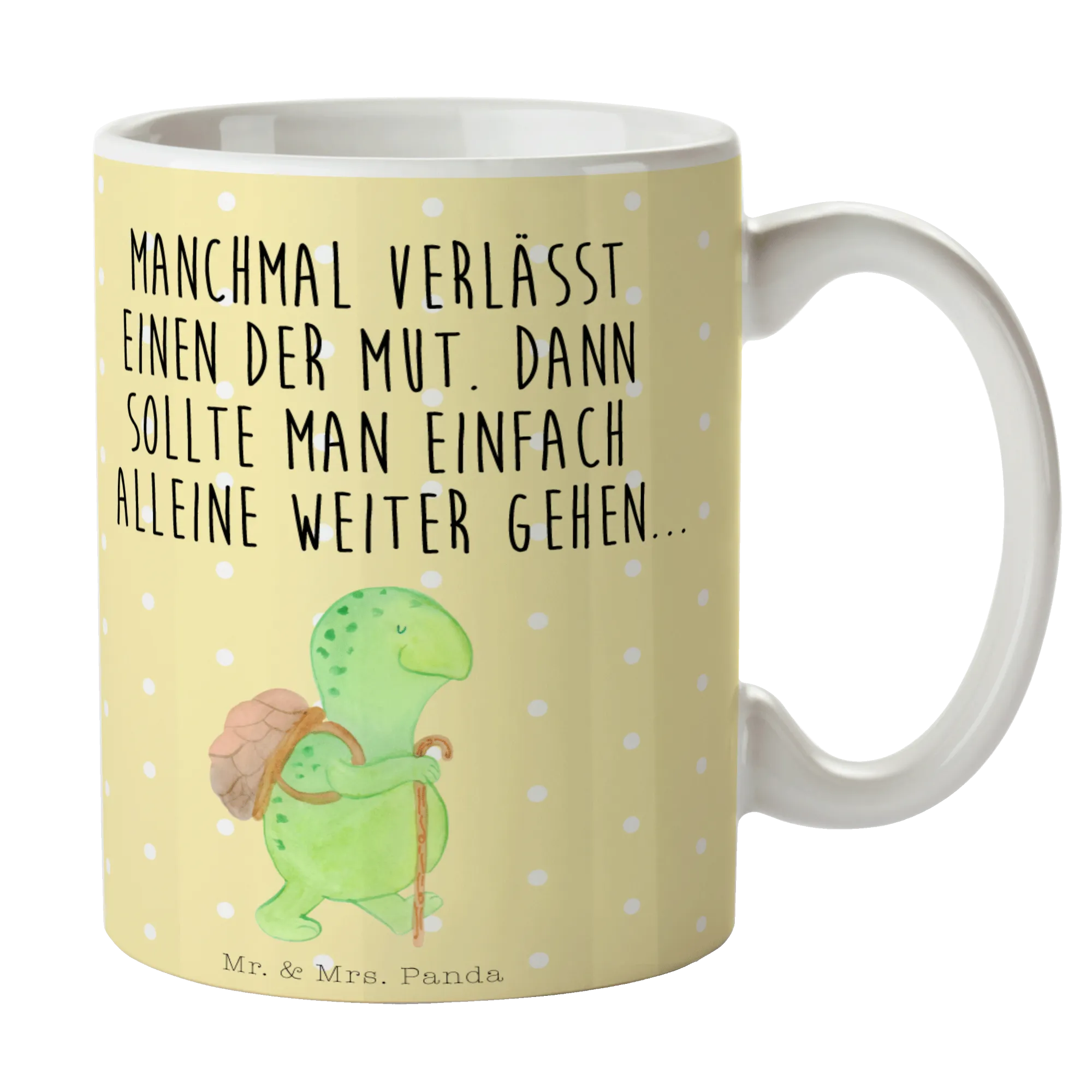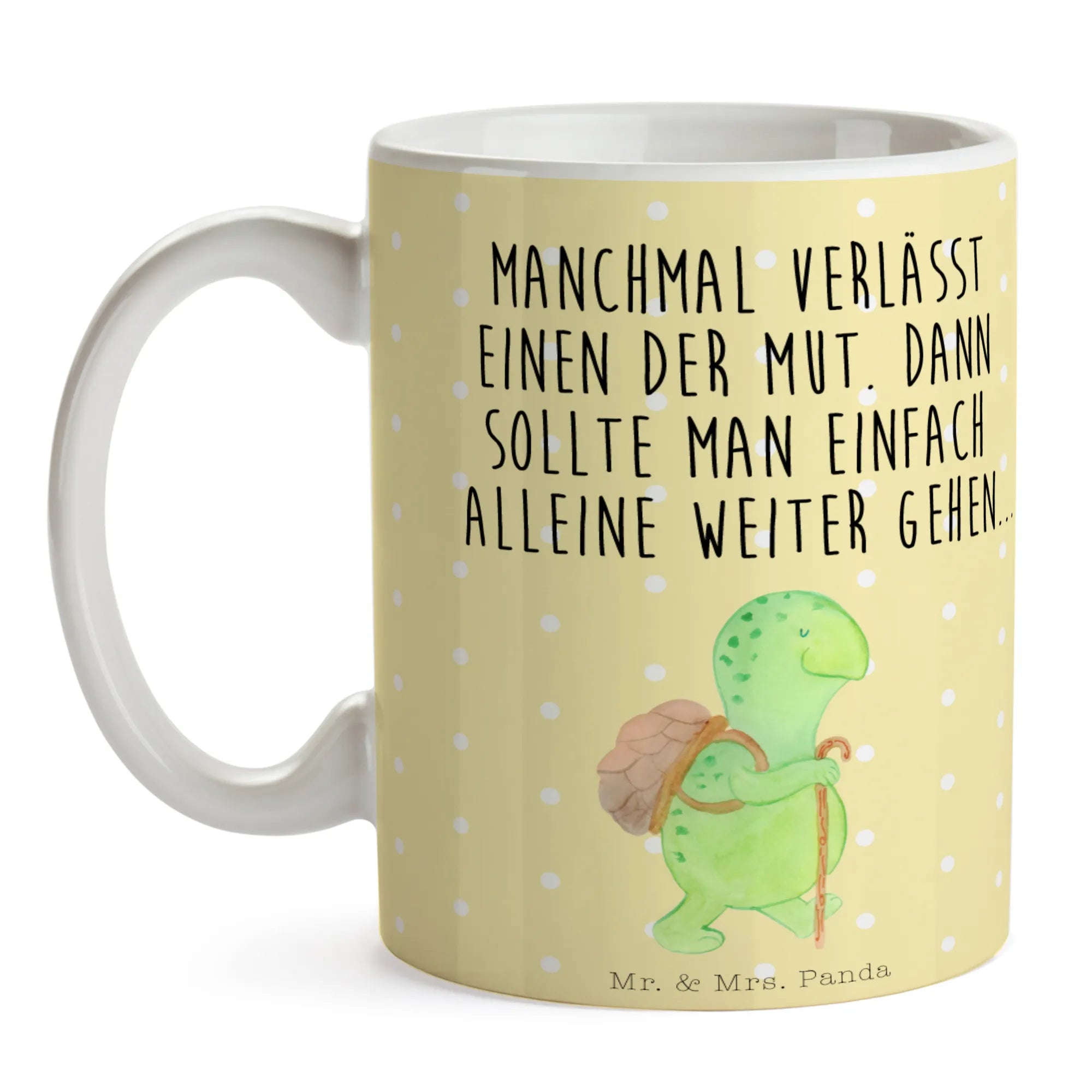 Ein Geschenk mit Herz: Bring Freude in den Alltag eines lieben Menschen oder belohne dich selbst mit dieser charmanten Kaffeetasse. Das handgezeichnete Schildkrötenmotiv von Mrs. Panda macht die Tasse zu einem ganz besonderen Mitbringsel für Schildkröten-Liebhaber und Menschen, die kleine Mutmacher brauchen.