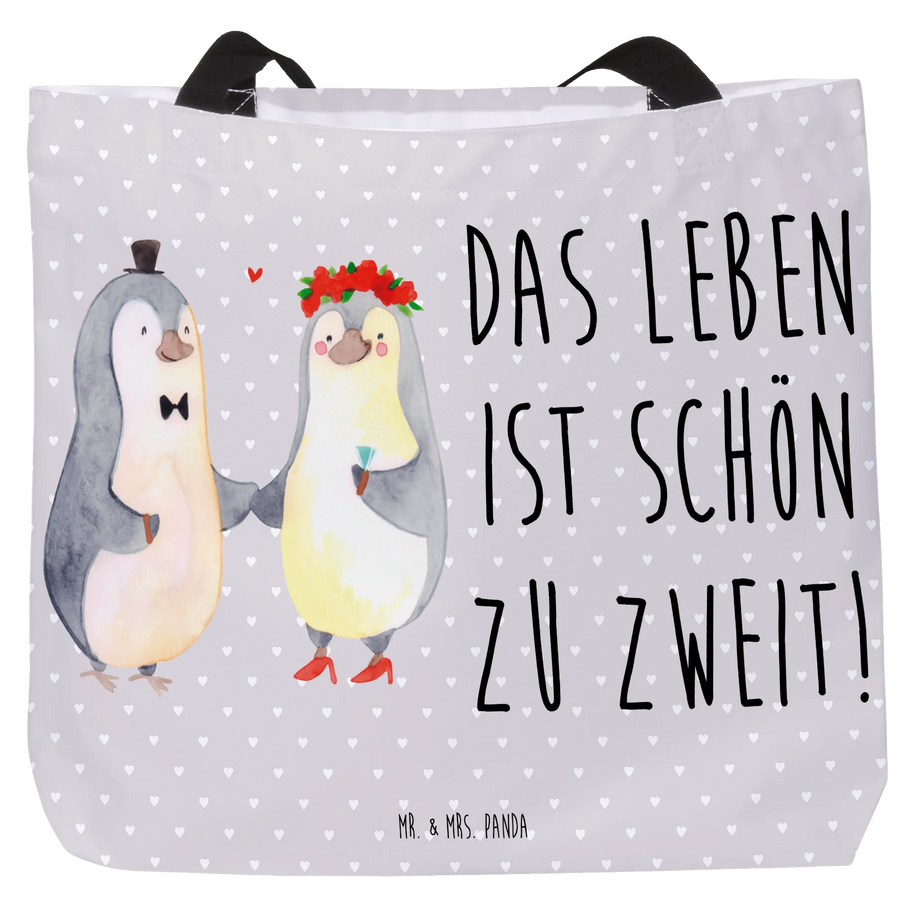 Shopper Ślub pingwinów - z napisem - Szary Pastel