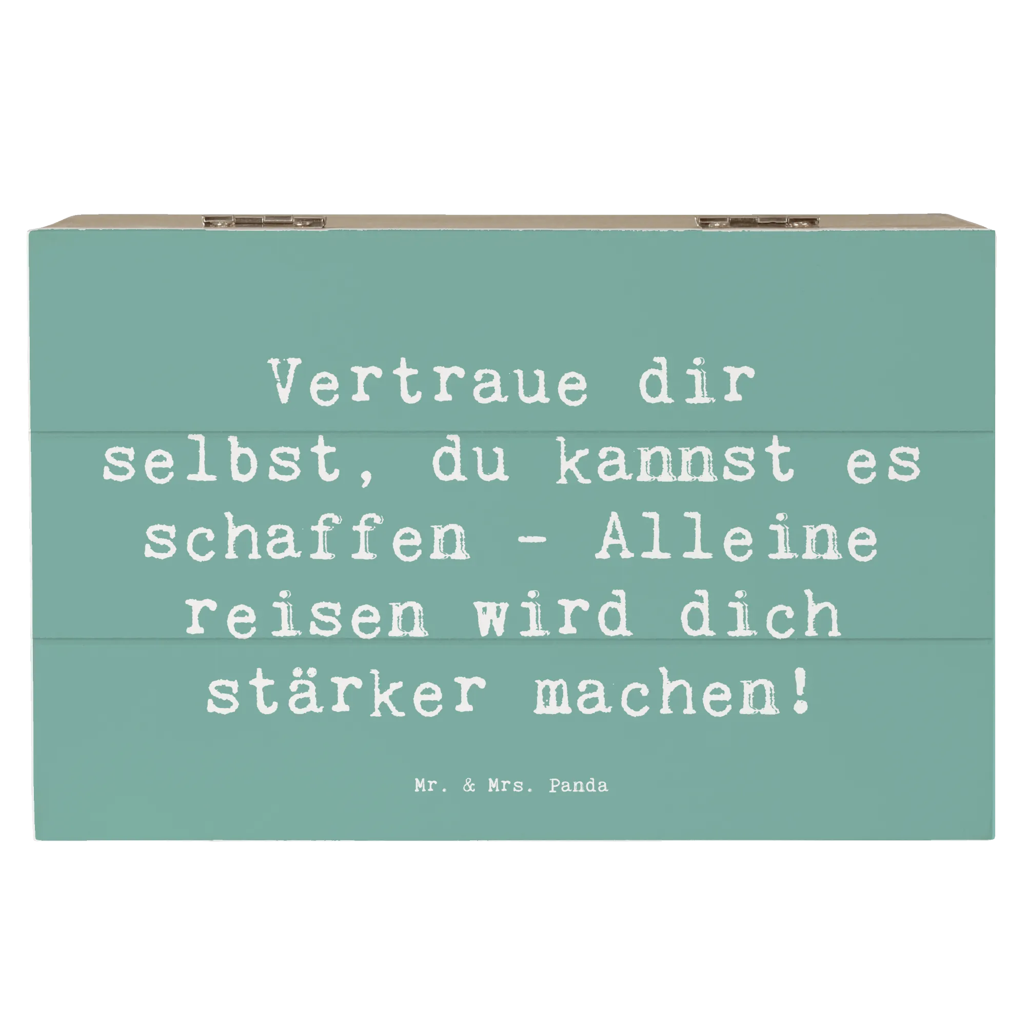Entdecke die zauberhafte Holzkiste "Alleine Reisen unternehmen" aus der Mutmacher-Kollektion von Mr. & Mrs. Panda! Diese wundervolle Erinnerungskiste ist nicht nur ein schöner Aufbewahrungsort für deine wertvollsten Schätze, sondern auch eine Quelle der Inspiration und des Trostes.