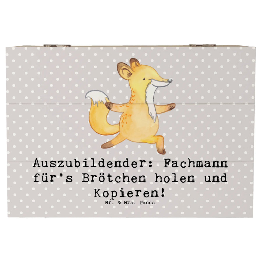 Die Holzkiste "Auszubildender" von Mr. & Mrs. Panda ist das perfekte Geschenk für alle angehenden Fachkräfte. Diese wunderschöne Kiste aus robuster Holzfaser ist nicht nur ein toller Blickfang, sondern auch äußerst funktional. Mit dem humorvollen Slogan "Auszubildender: Fachmann für's Brötchen holen und Kopieren!" bringt sie garantiert ein Lächeln auf die Gesichter der Beschenkten.