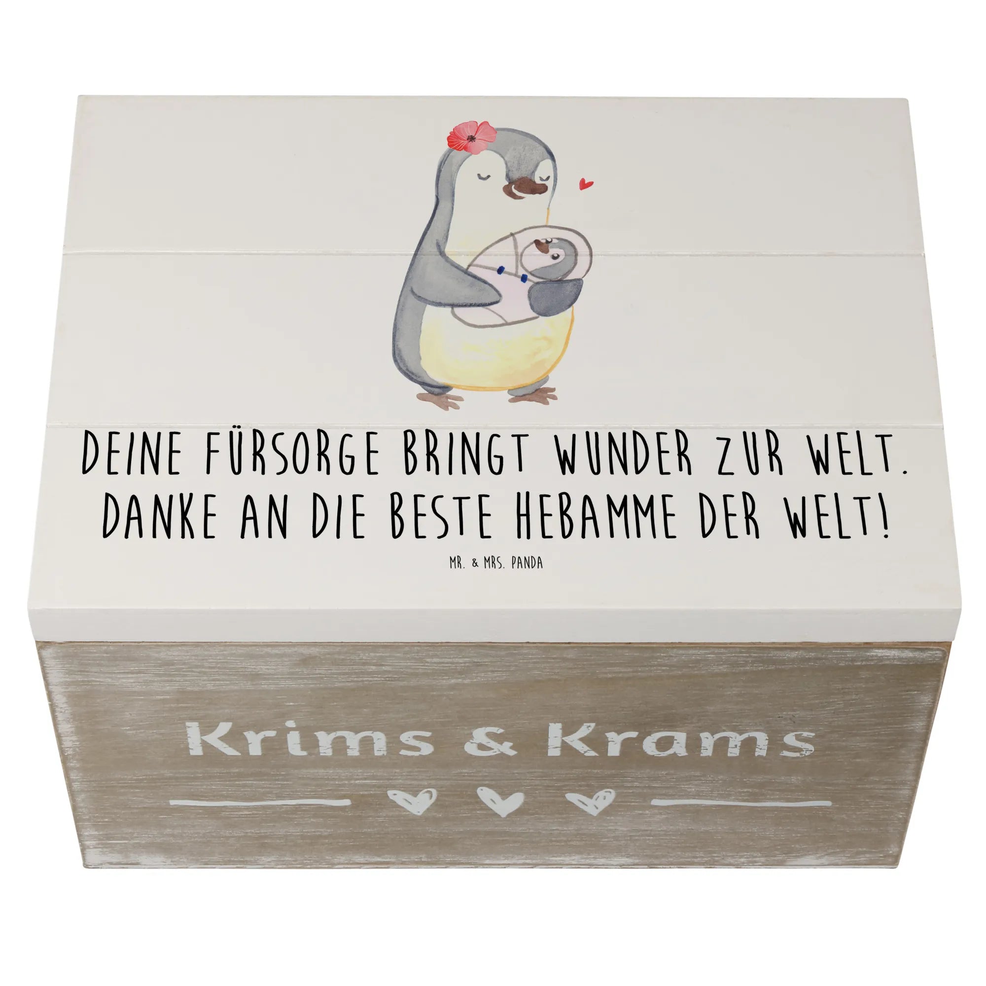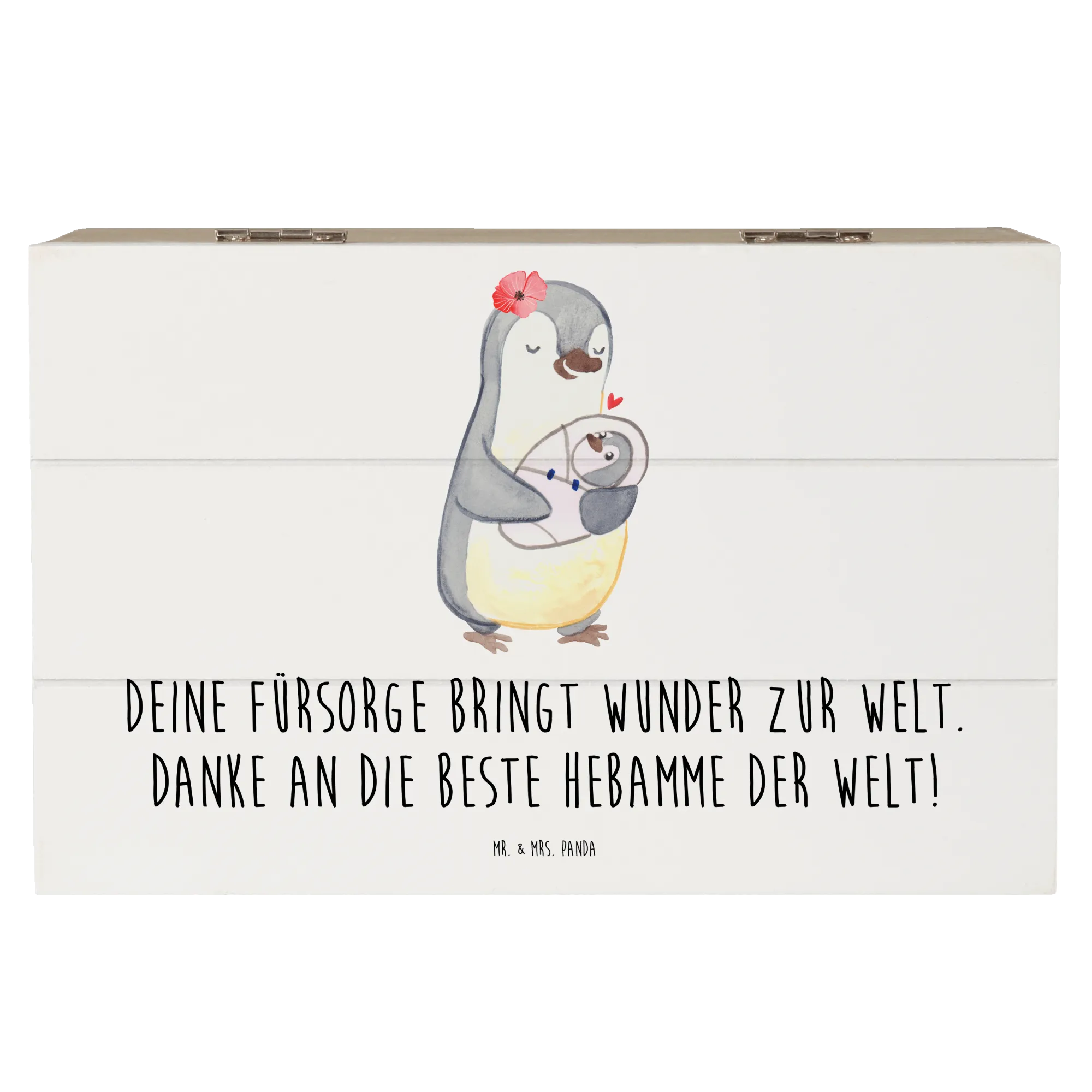 Unsere Holzkiste Hebamme aus der 'Danke'-Kollektion von Mr. & Mrs. Panda verbindet Herz und Stil. Mit dem liebevollen Spruch „Deine Fürsorge bringt Wunder zur Welt. Danke an die beste Hebamme der Welt!“ wird die Kiste zu einer emotionalen Erinnerungskiste, ideal als Geschenk nach der Geburt, als Abschiedsgeschenk aus der Klinik oder als Aufmerksamkeit von frischgebackenen Eltern.