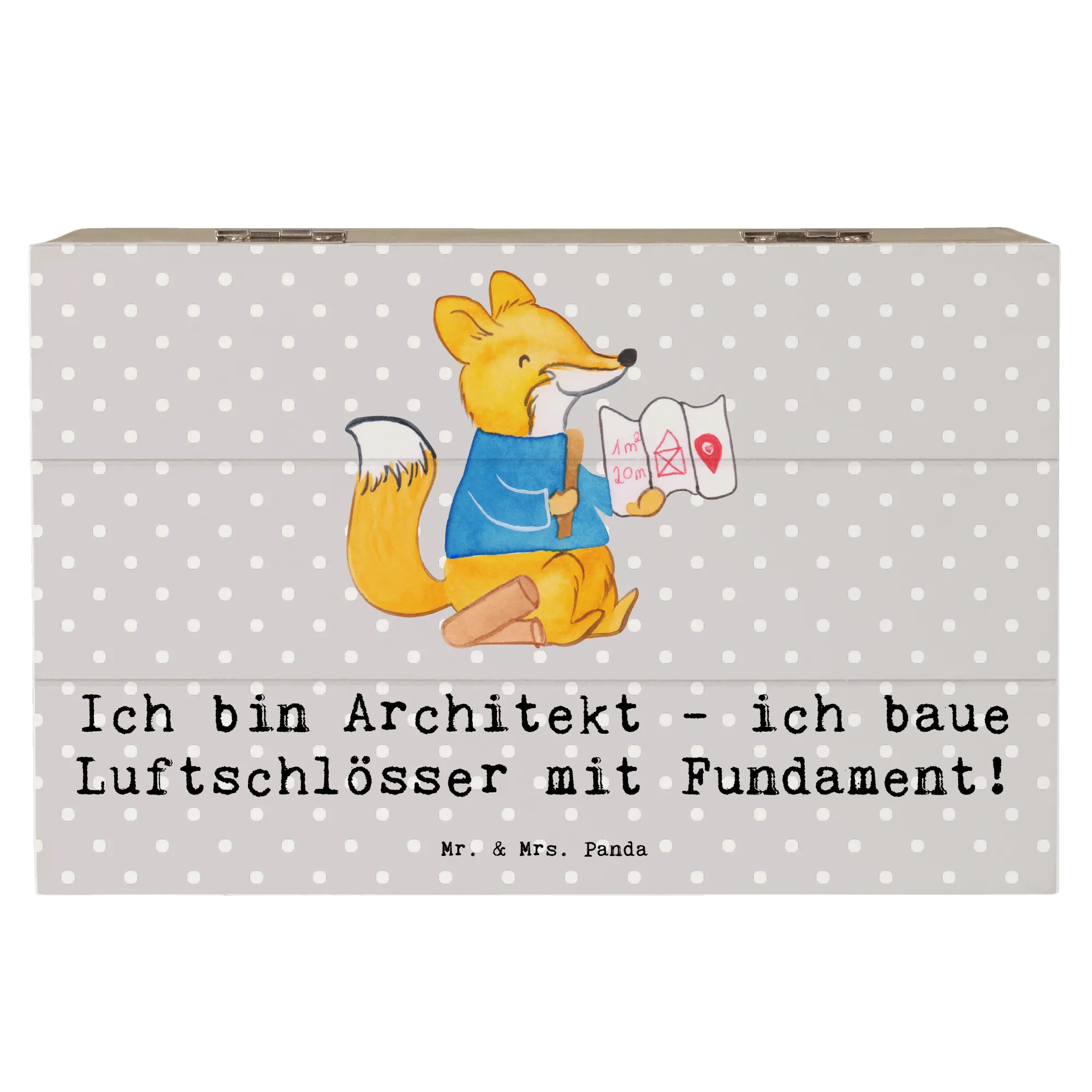 Entdecke die wunderschöne Holzkiste "Ich bin Architekt - ich baue Luftschlösser mit Fundament!" von Mr. & Mrs. Panda! Diese kreative Schatzkiste ist das perfekte Geschenk für alle Architekten und Bau-Enthusiasten.