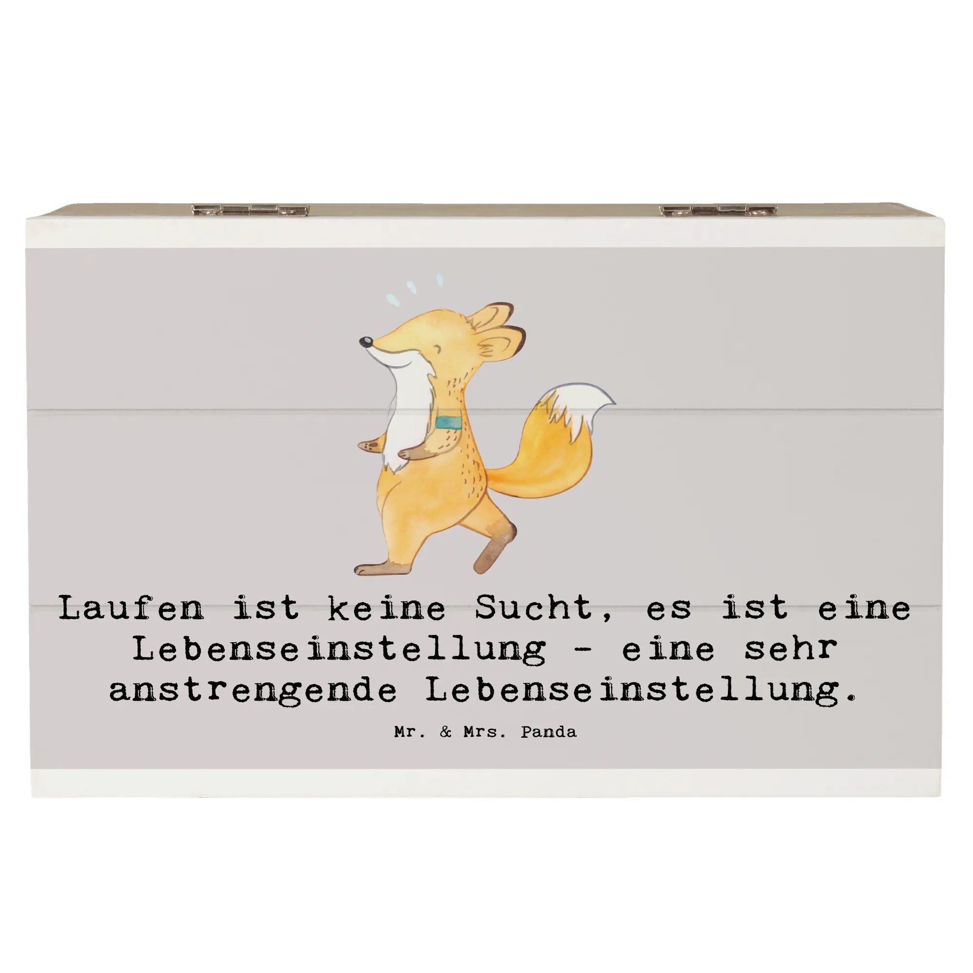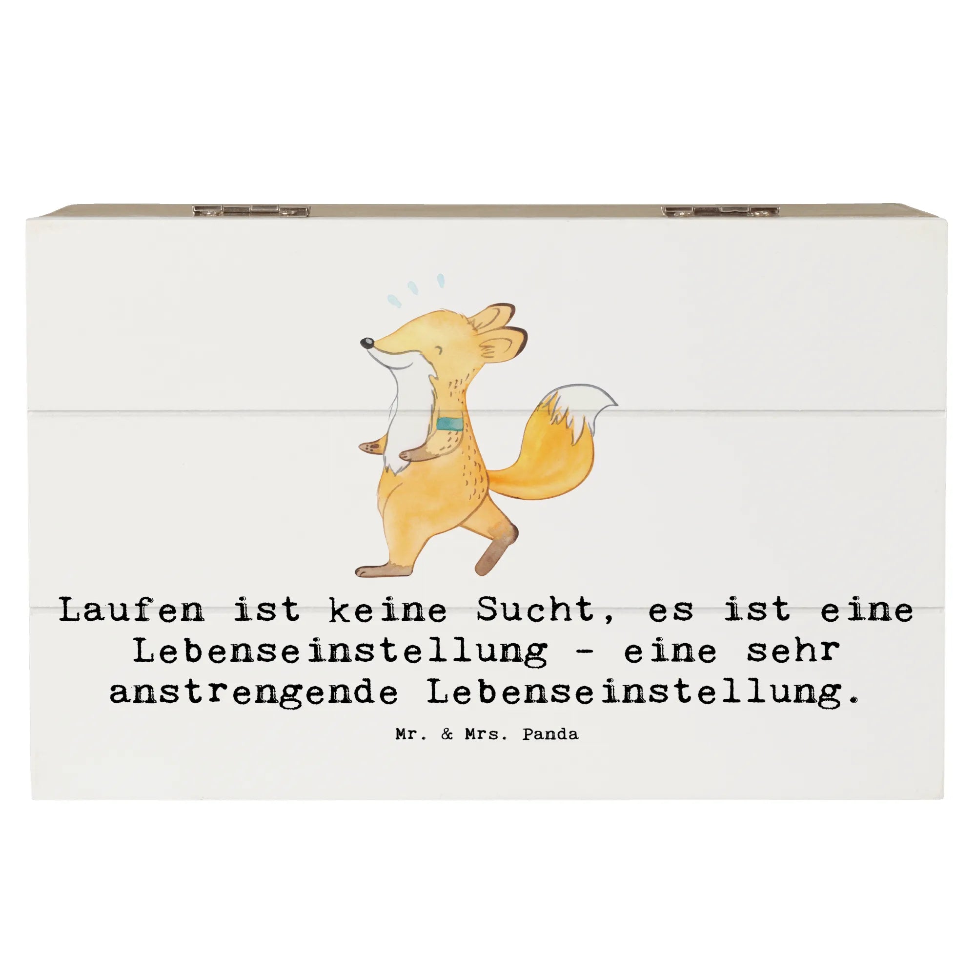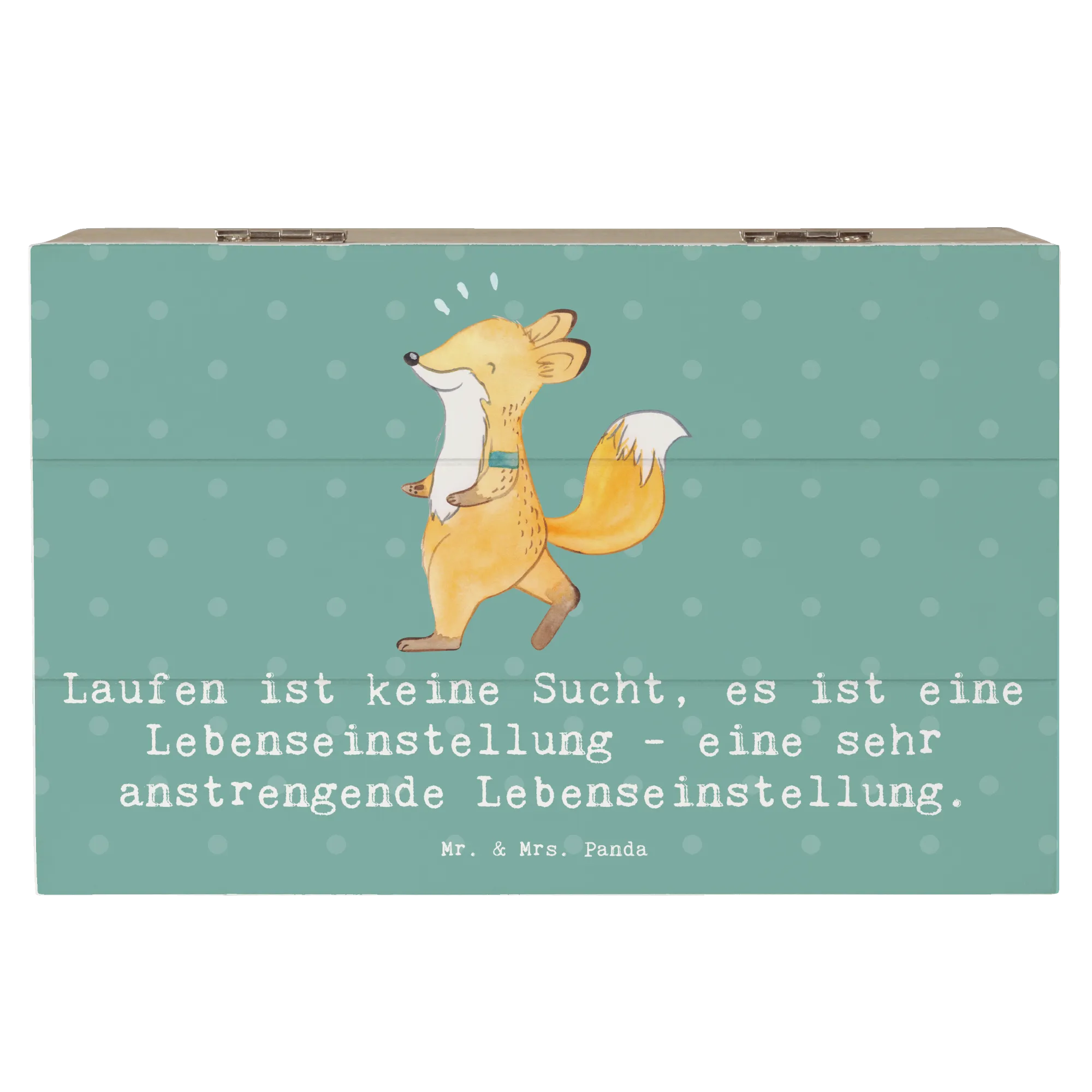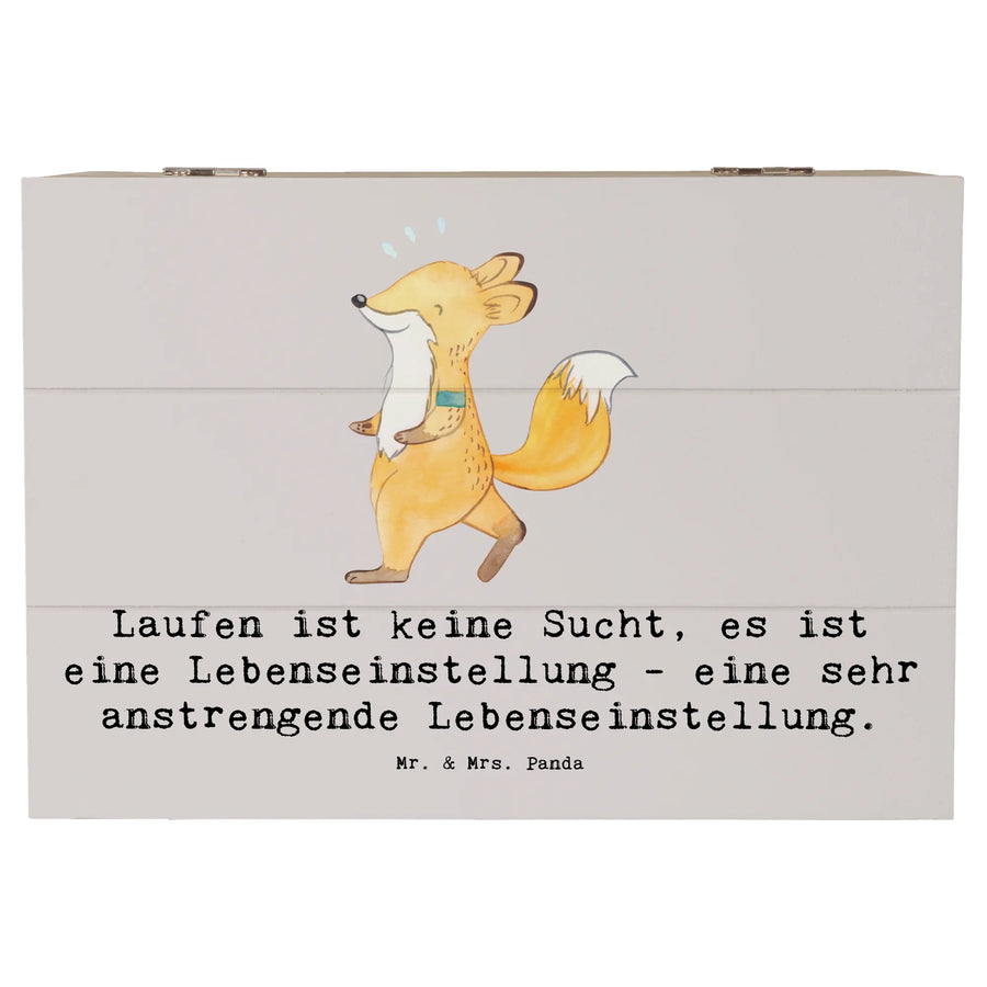 Das handgezeichnete Motiv "Laufen" mit dem Spruch "Laufen ist keine Sucht, es ist eine Lebenseinstellung – eine sehr anstrengende Lebenseinstellung." macht sie zu einem echten Hingucker. Diese Schatzkiste ist ideal als Aufbewahrungsort für Erinnerungen, Fotos oder besondere Andenken. Sie eignet sich auch hervorragend als nachhaltige und wiederverwendbare Geschenkbox, die du immer wieder nutzen kannst.