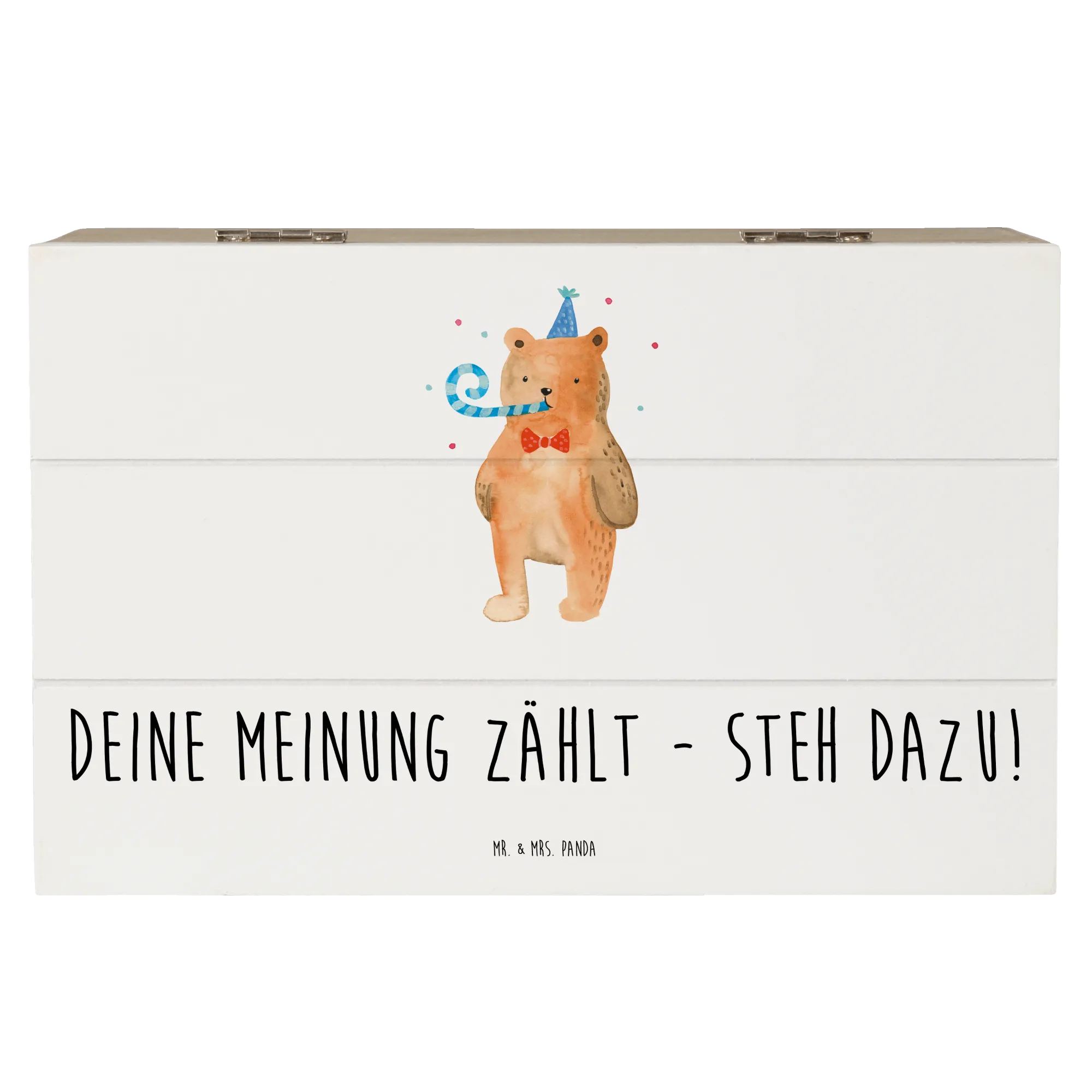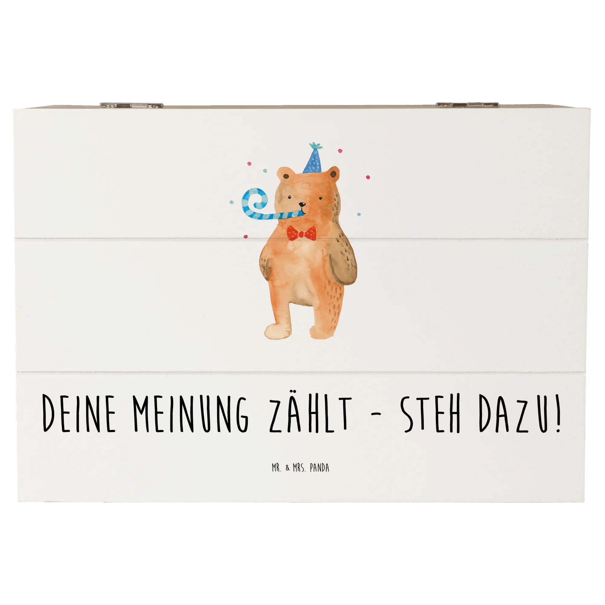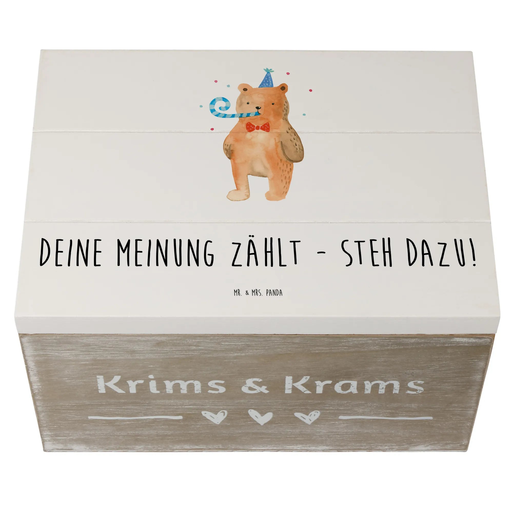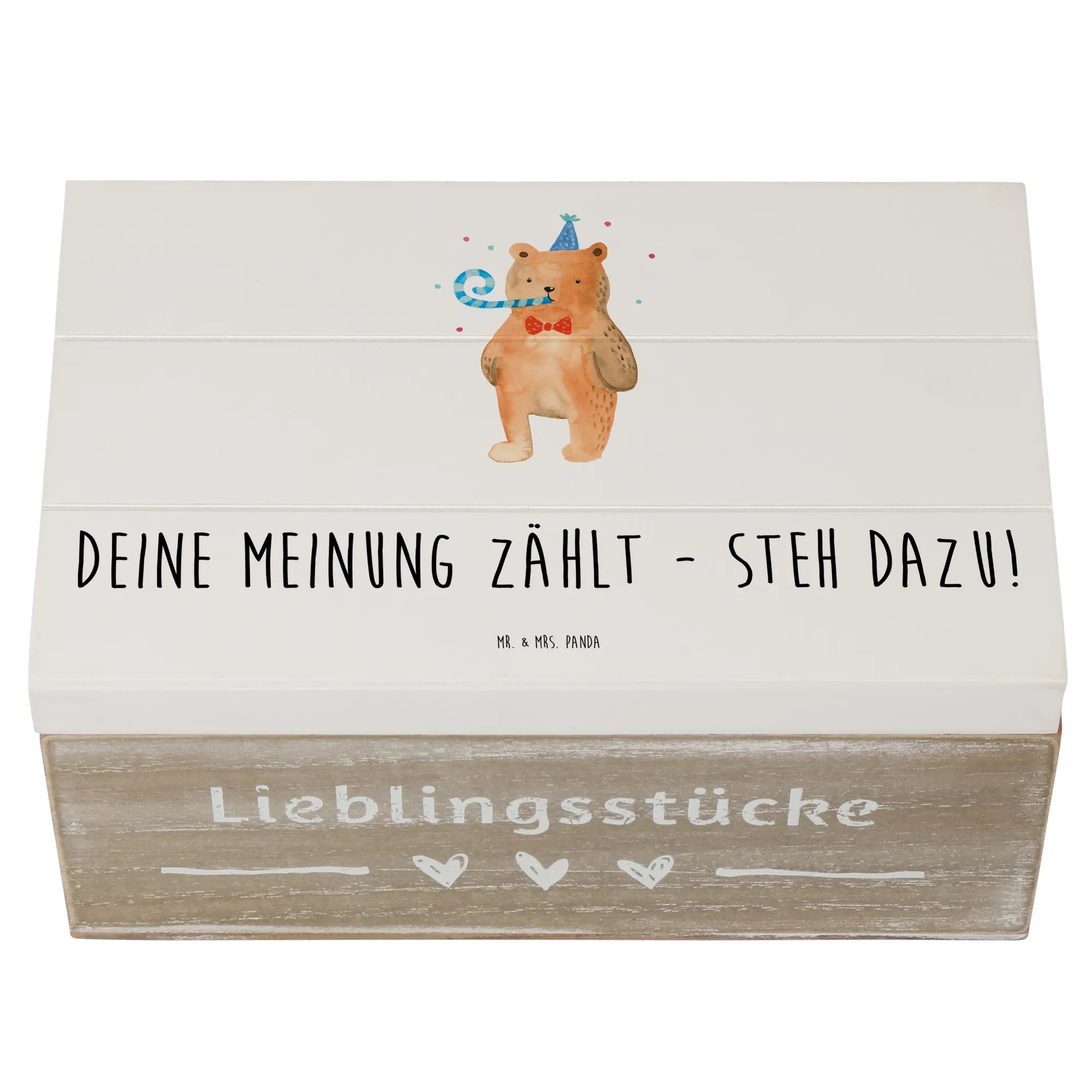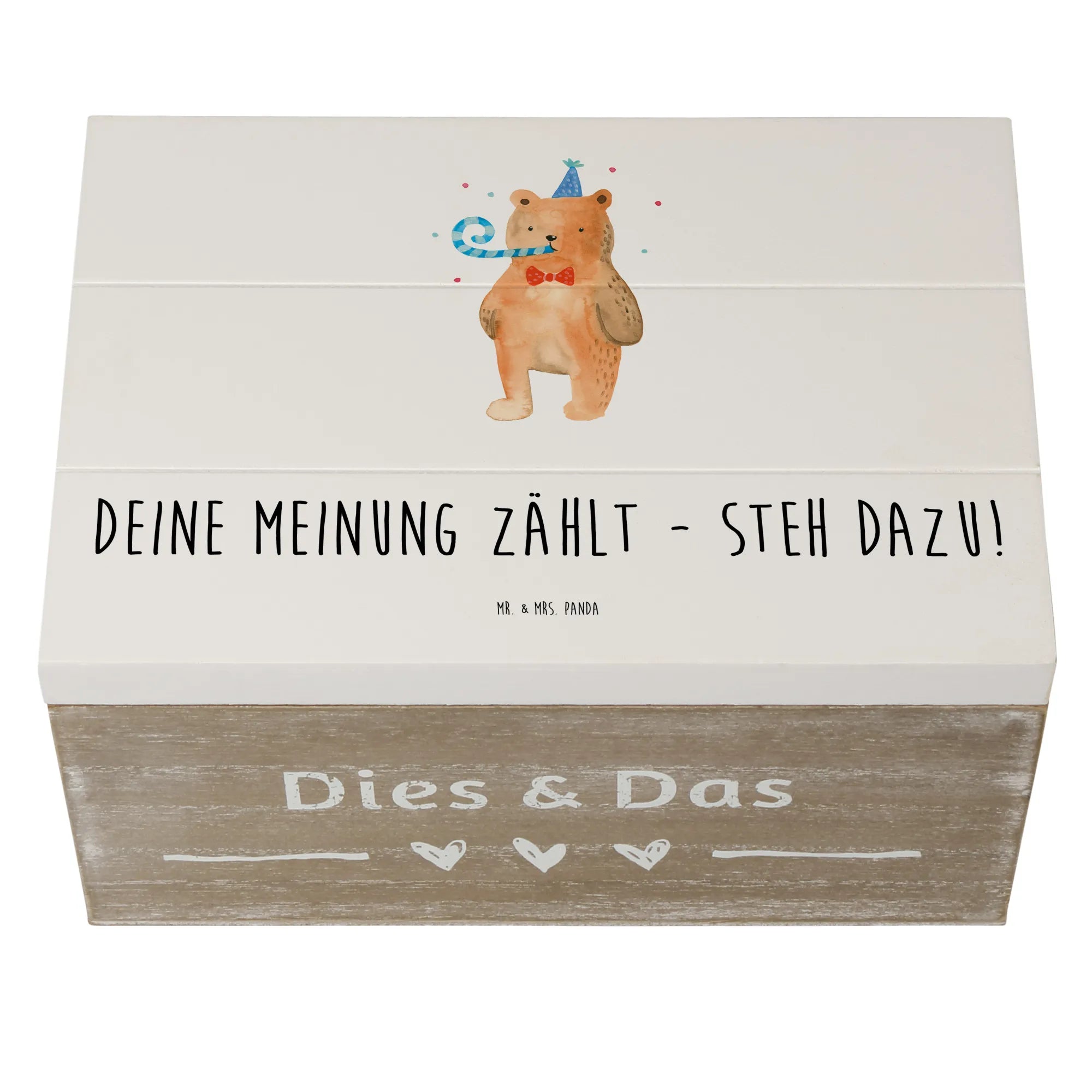 Die wunderschöne Holzkiste 'Mutig zu seinen Meinungen stehen' aus der 'Mutmacher' Kollektion von Mr. & Mrs. Panda ist das perfekte Geschenk für all jene, die ihren Mut und ihre Zuversicht stärken möchten. Diese Erinnerungskiste ist nicht nur ein praktischer Aufbewahrungsort für kostbare Schätze, sondern auch ein inspirierendes Symbol dafür, zu seinen Meinungen zu stehen.