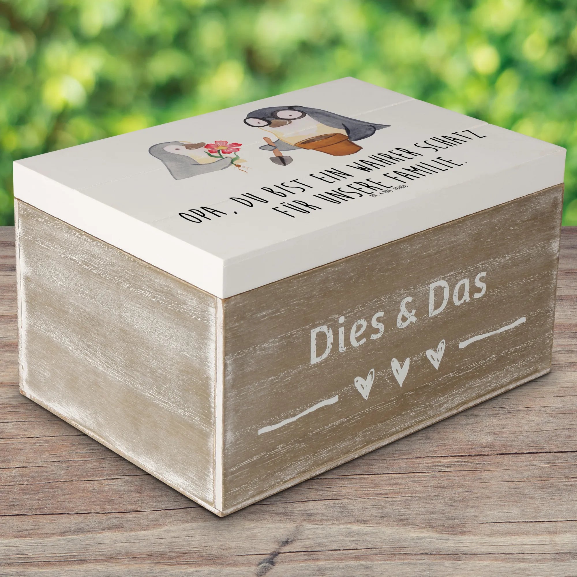 Du suchst nach dem perfekten Geschenk für deinen Opa? Dann haben wir von Mr. & Mrs. Panda die ideale Lösung für dich: die wunderschöne Holzkiste mit dem herzerwärmenden Spruch "Opa, du bist ein wahrer Schatz für unsere Familie." Diese Erinnerungskiste ist nicht nur ein Blickfang, sondern auch ein wertvoller Aufbewahrungsort für all die kleinen Schätze, die dein Opa im Laufe der Jahre gesammelt hat.