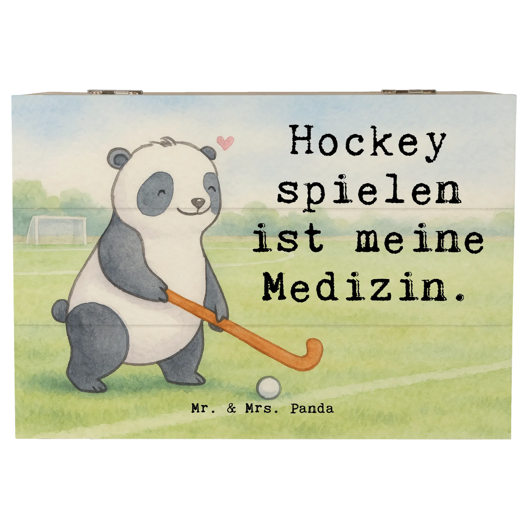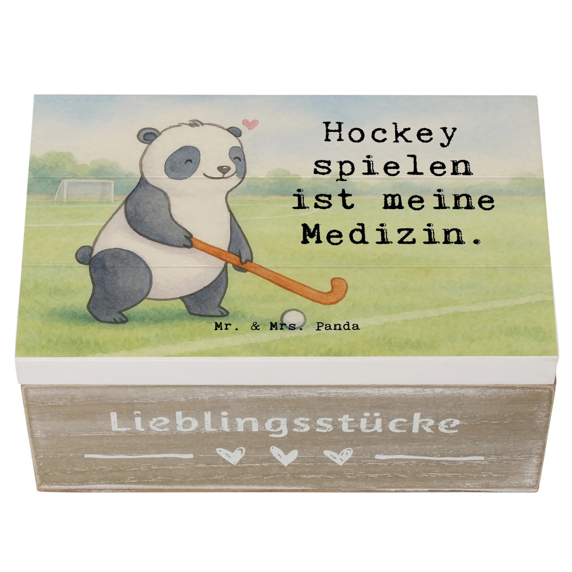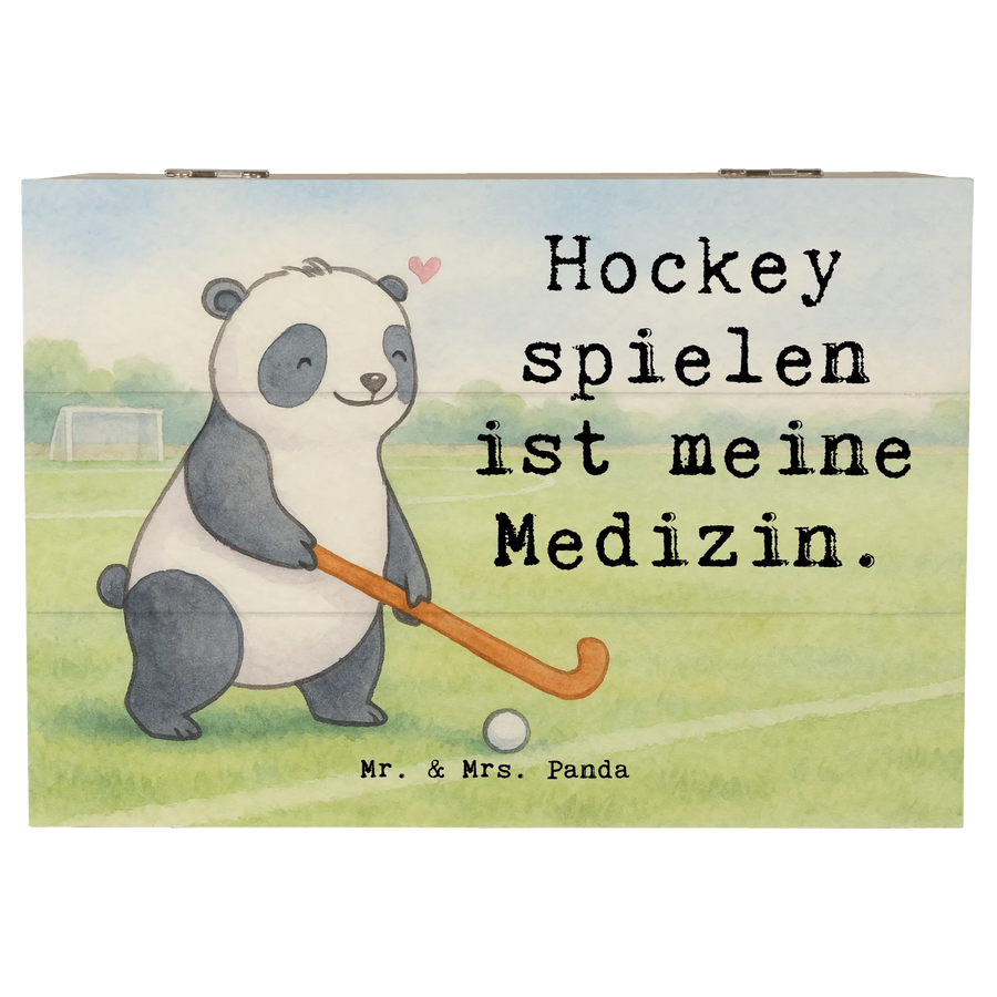 Holzkiste Panda Hockey spielen Design - 22 x 15 cm - mit Spruch