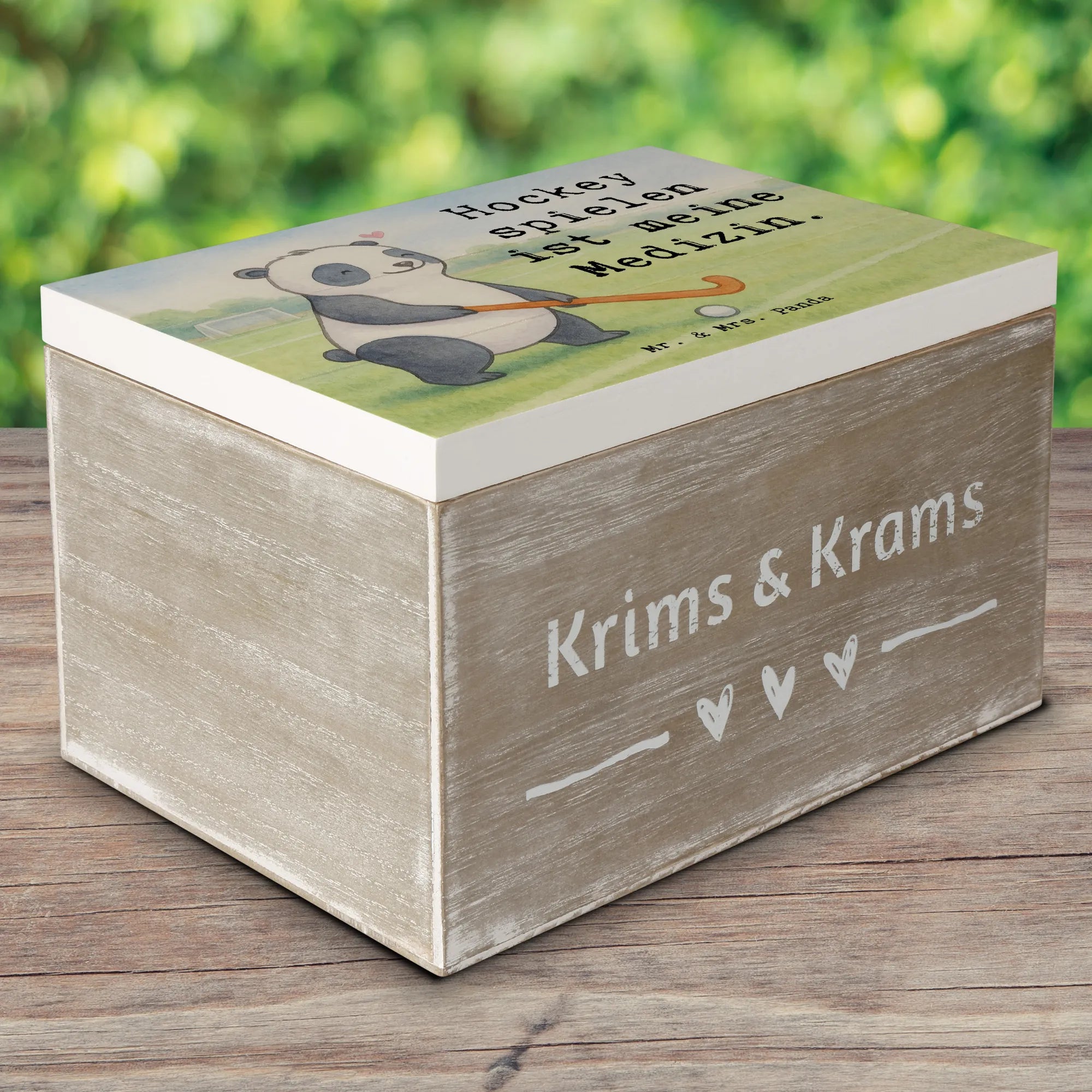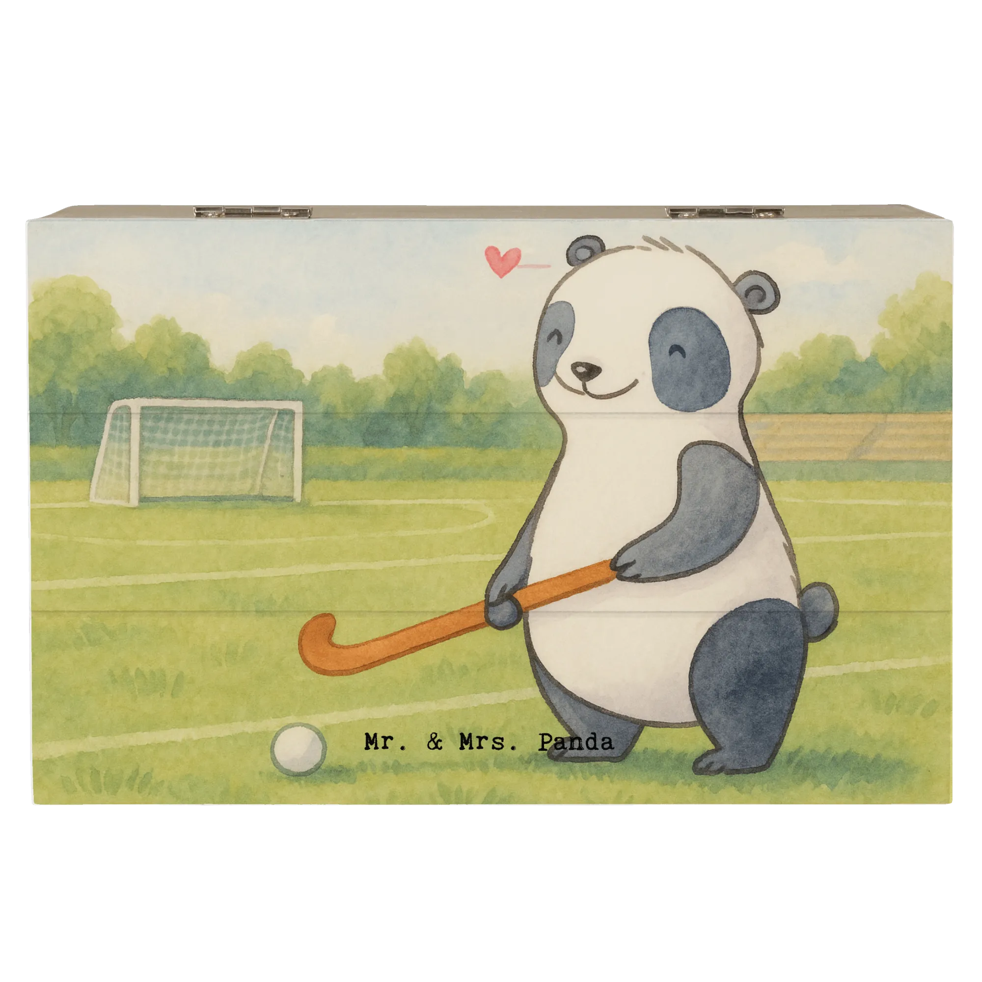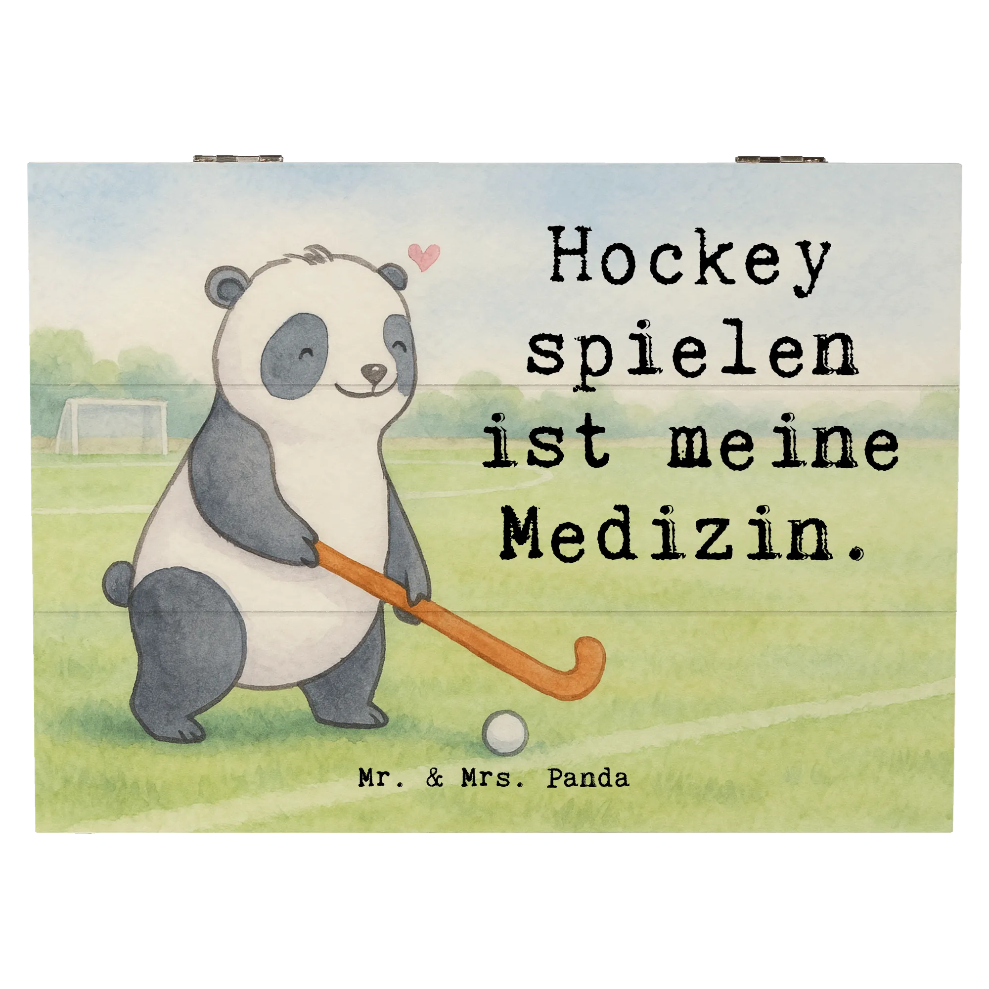 Holzkiste Panda Hockey spielen Design - 22 x 15 cm - mit Spruch