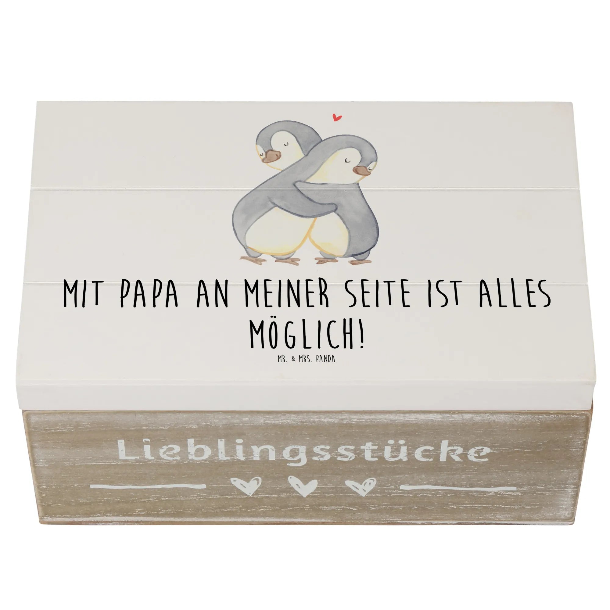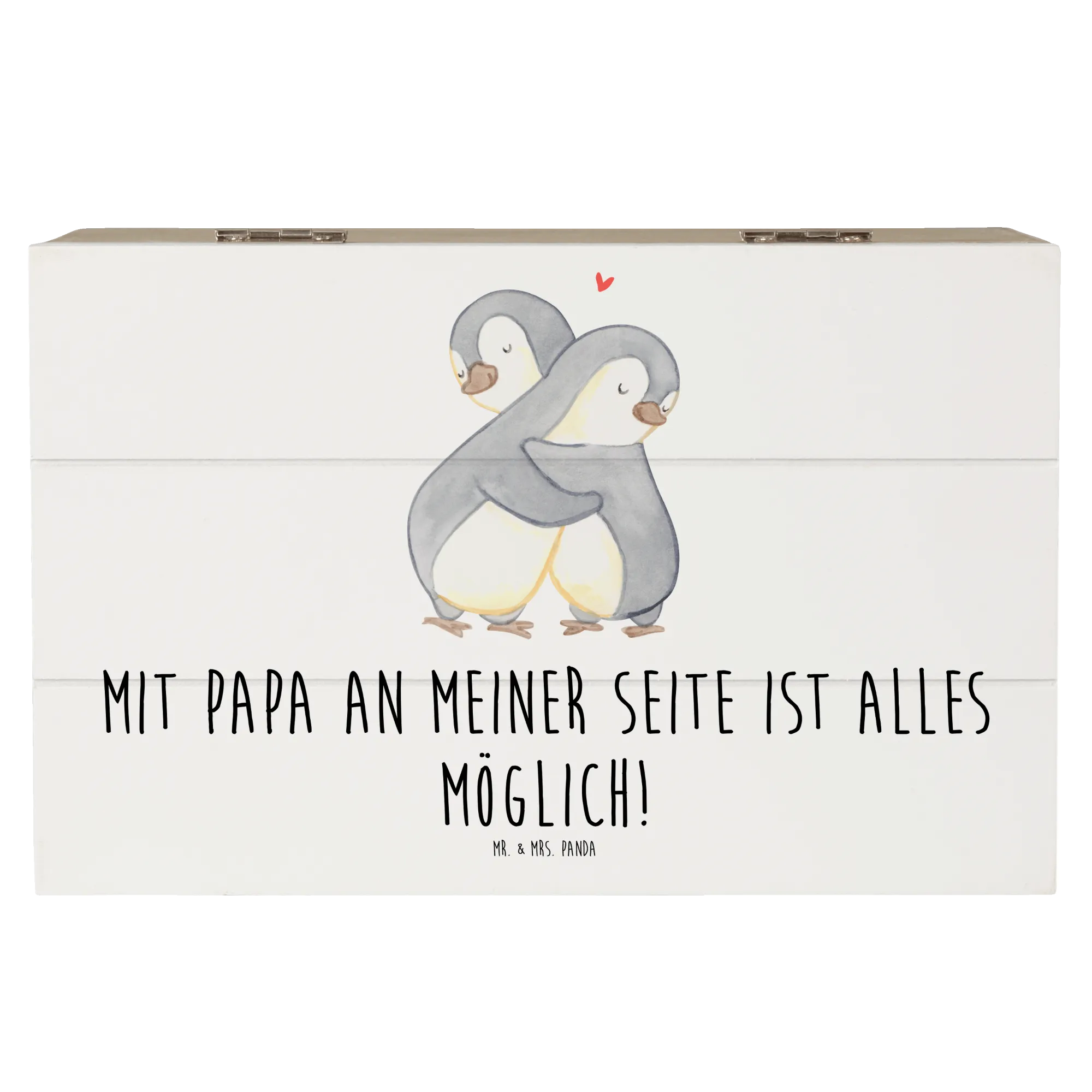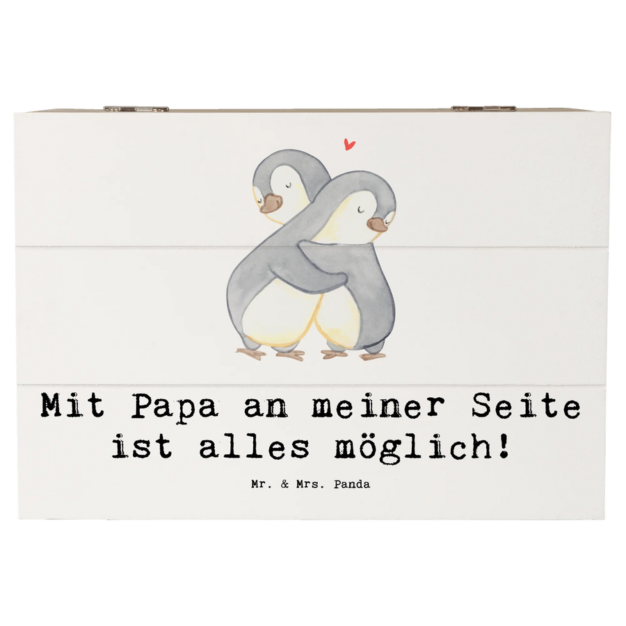Die bezaubernde Holzkiste von Mr. & Mrs. Panda mit dem Motiv "Papa" aus der Dankeschön-Kollektion ist das perfekte Geschenk für alle, die ihrem Vater auf eine besondere Weise Danke sagen möchten. Mit dem liebevollen Slogan "Mit Papa an meiner Seite ist alles möglich!" wird diese Kiste zu einem echten Erinnerungsstück, das jede herzliche Botschaft umso schöner macht. Ob zum Geburtstag, zu Weihnachten oder einfach nur so, diese Erinnerungskiste zaubert jedem Papa ein Lächeln ins Gesicht und zeigt, wie wichtig er ist.
