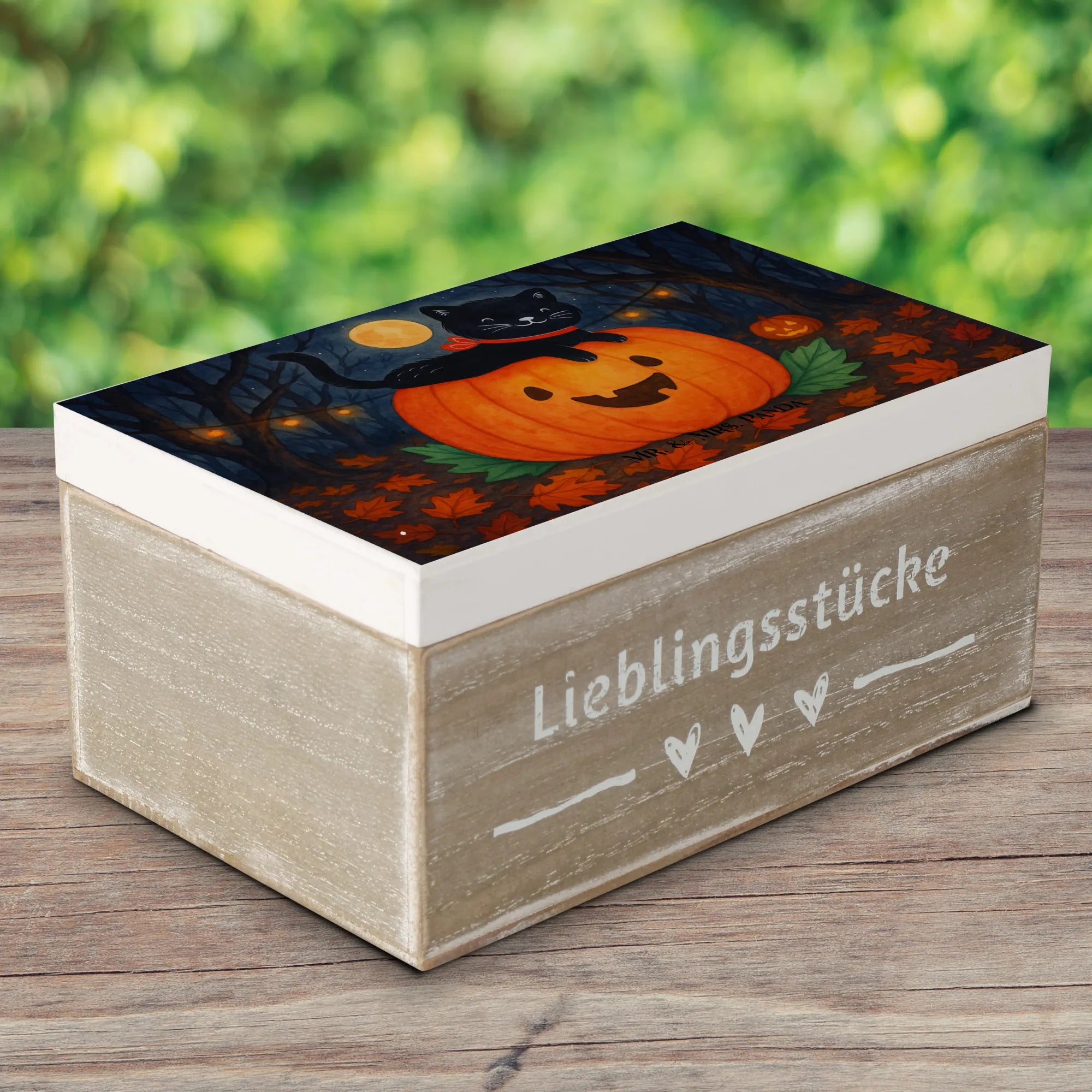 Holzkiste Schwarze Katze Design - 22 x 15 cm