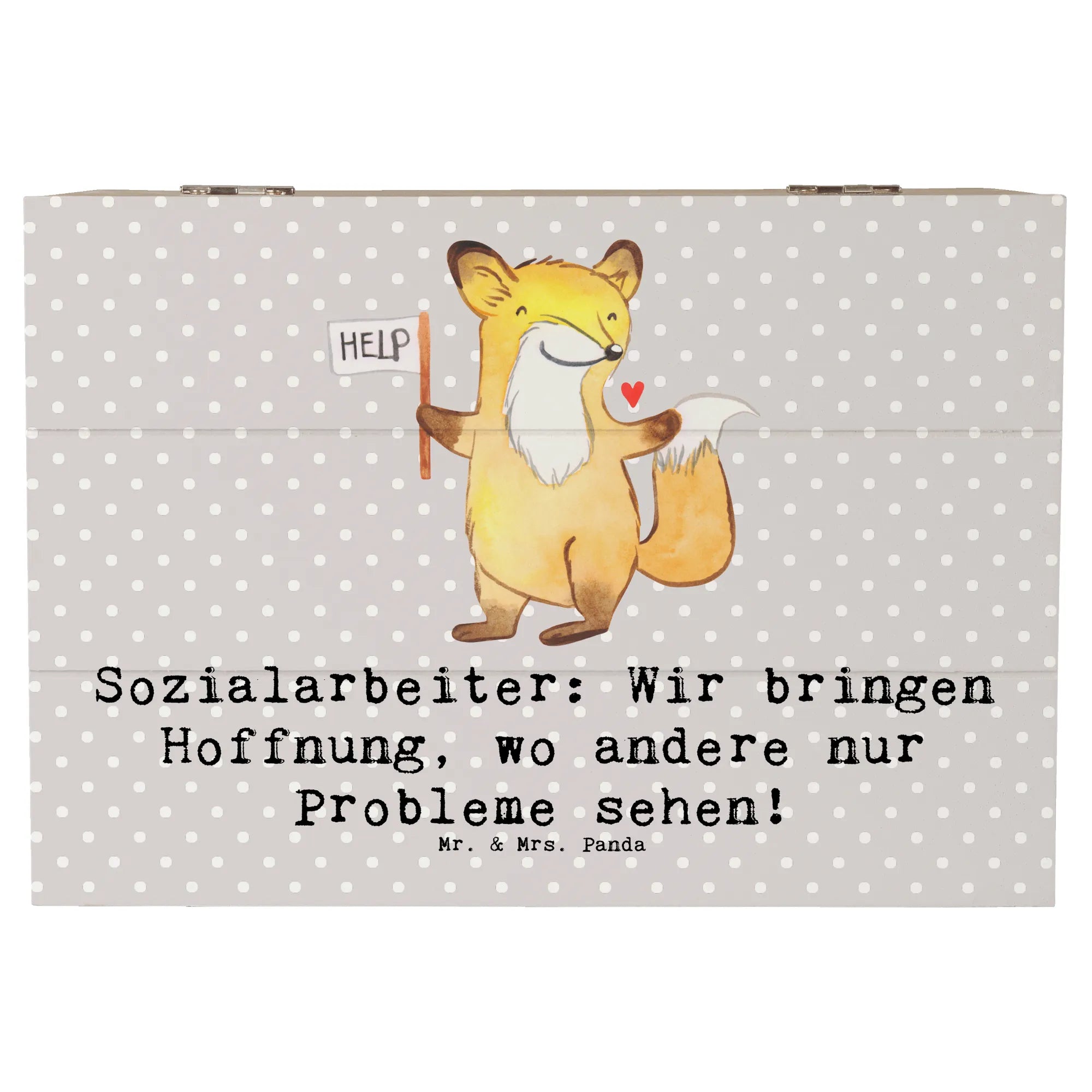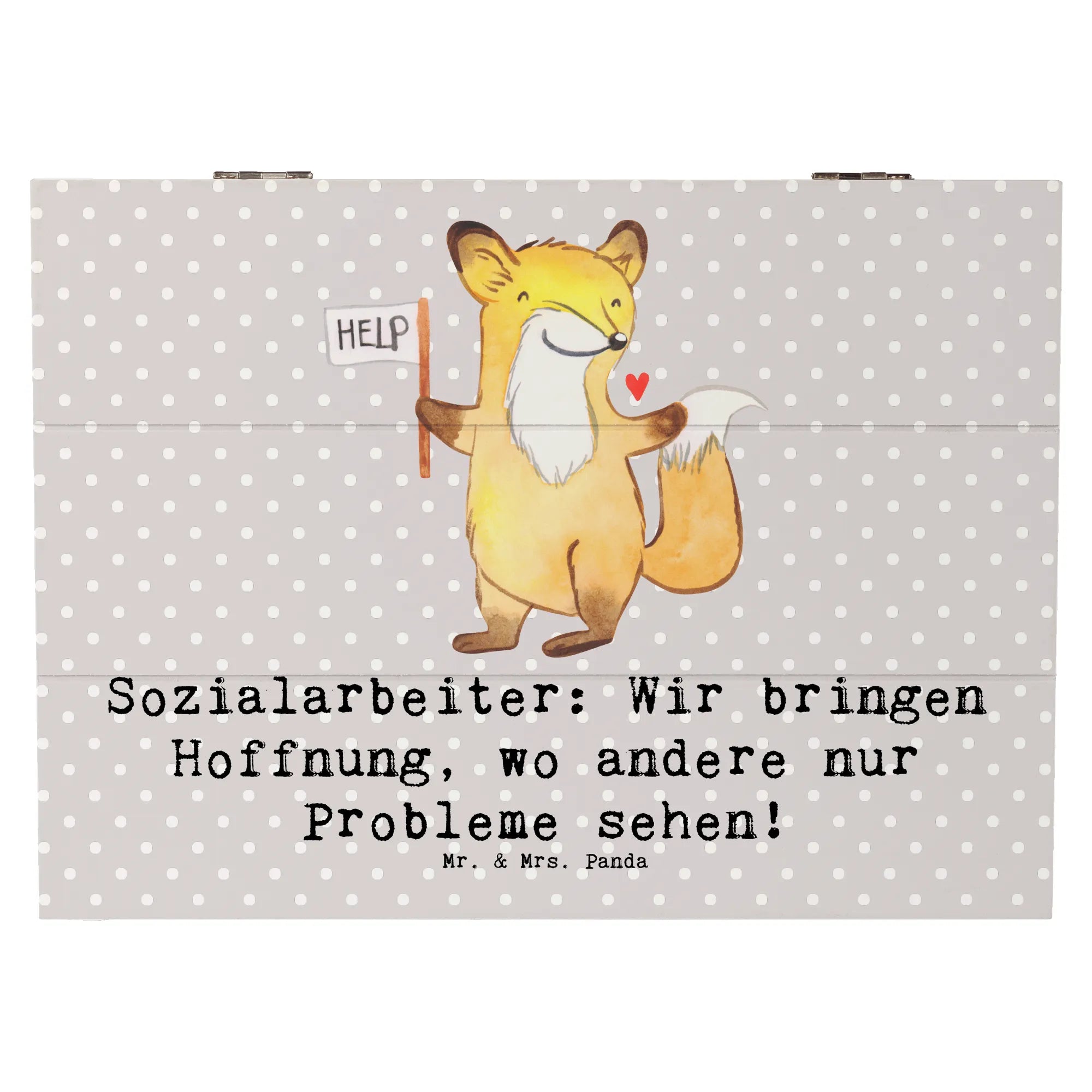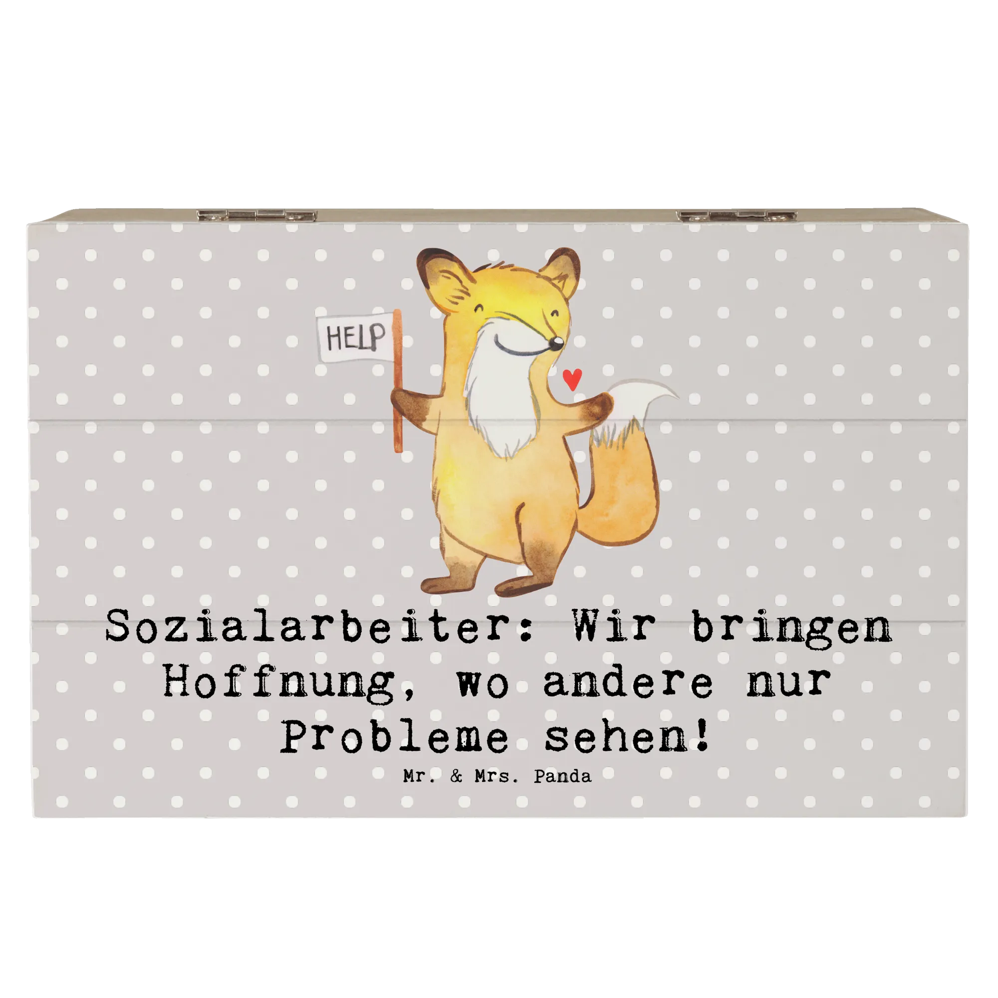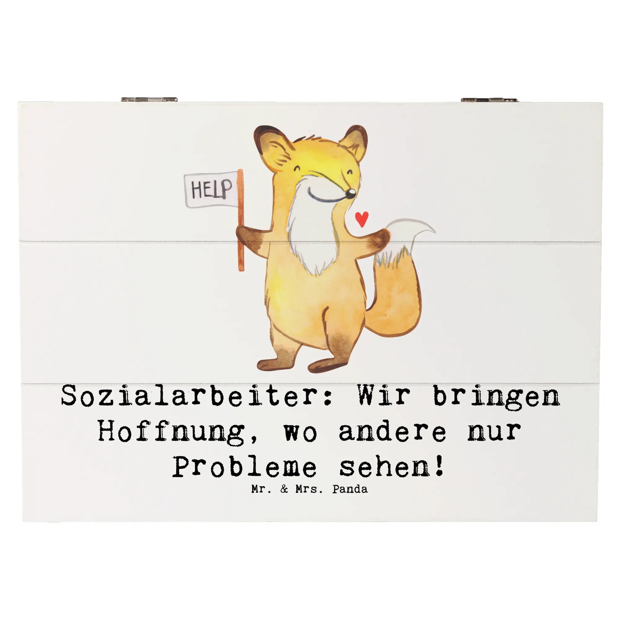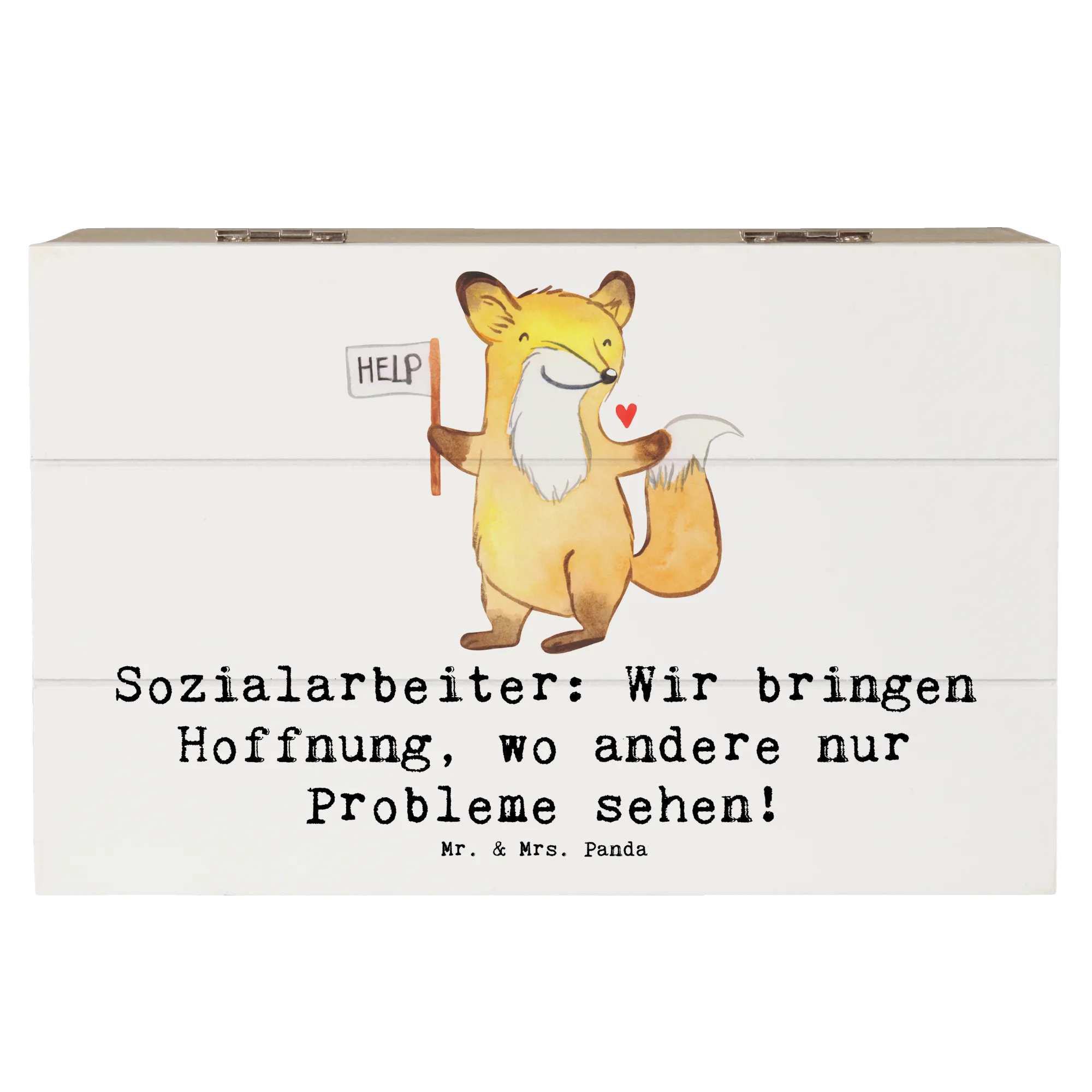 Diese zauberhafte Holzkiste von Mr. & Mrs. Panda trägt das liebevoll gezeichnete Motiv „Sozialarbeiterin“ und den inspirierenden Spruch „Sozialarbeiter: Wir bringen Hoffnung, wo andere nur Probleme sehen!“. Sie ist die perfekte Geschenkidee für Sozialarbeiterinnen und Sozialarbeiter, die täglich mit Empathie, Engagement und Herzblut bei der Sache sind. 🎁
