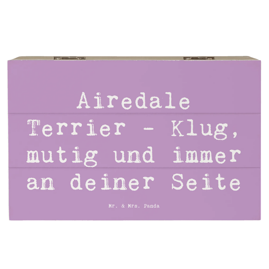 Die wunderschöne Holzkiste mit dem Motiv des Airedale Terriers von Mr. & Mrs. Panda ist der perfekte Begleiter für alle Hundefans! Diese sorgfältig gestaltete Erinnerungskiste aus robuster Holzfaser bietet ausreichend Platz für all deine wertvollen Erinnerungen und Schätze.