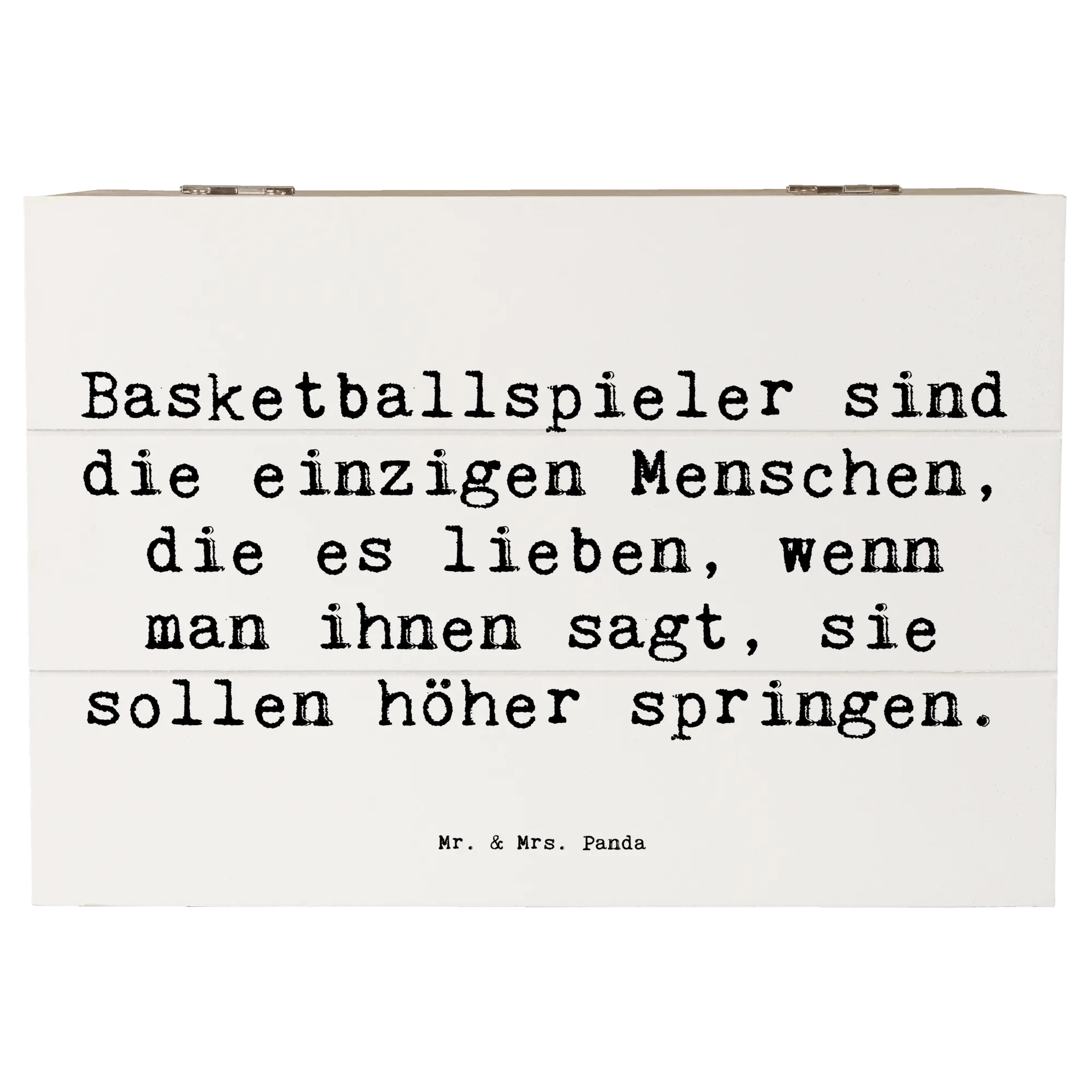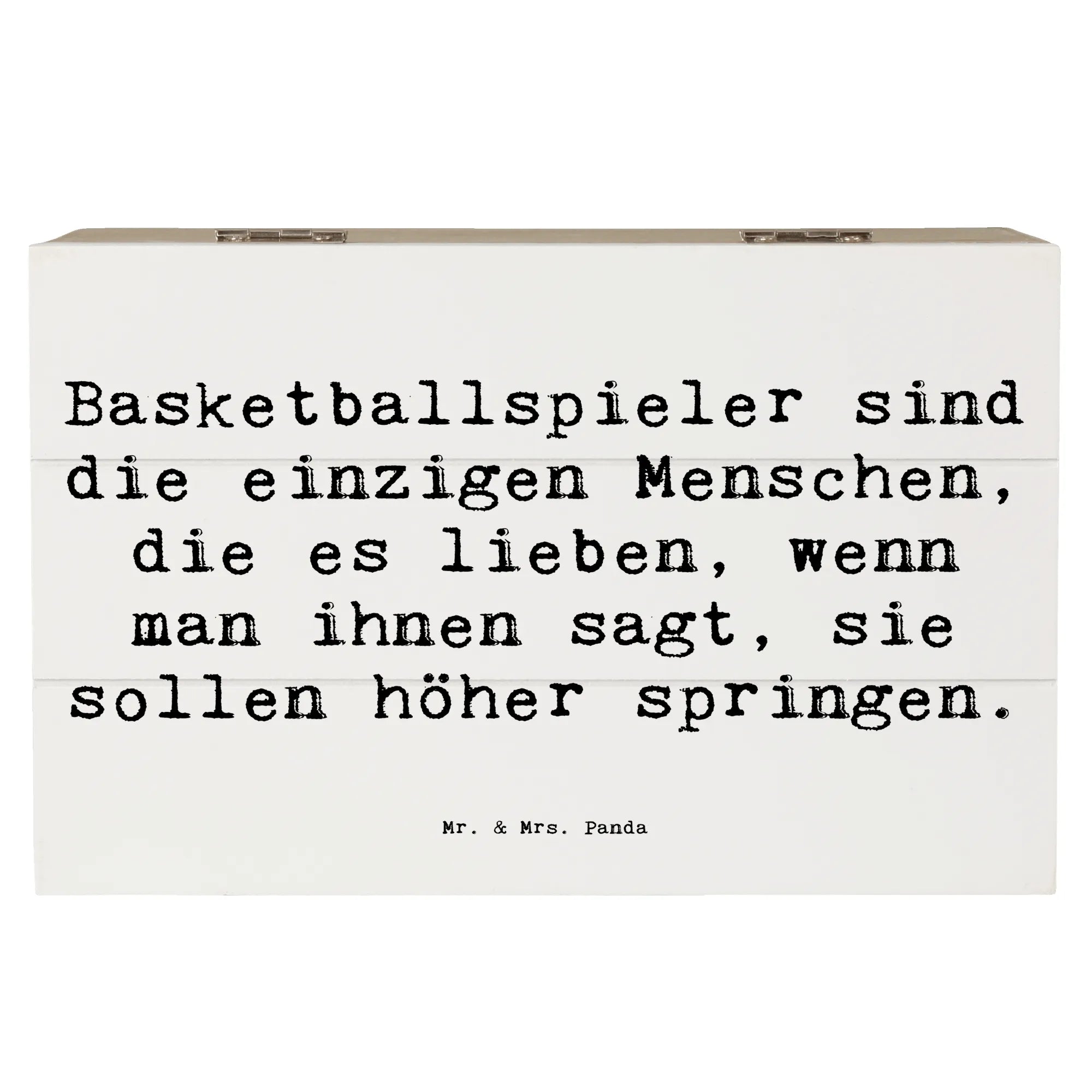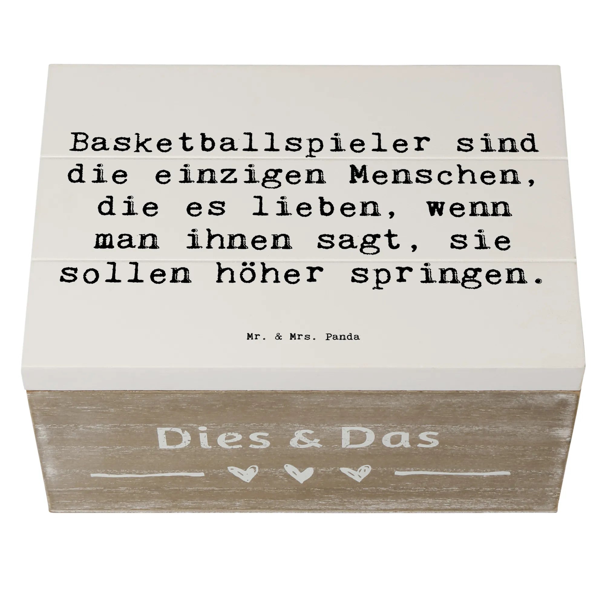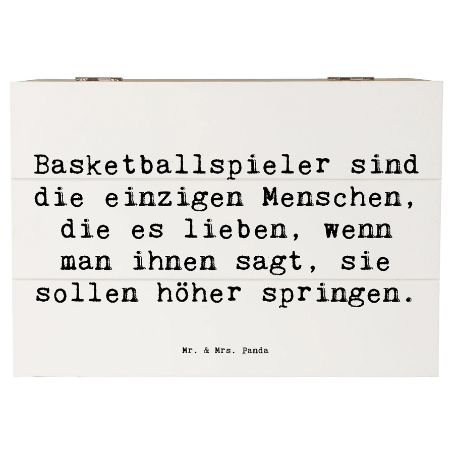 Die wunderschöne Holzkiste von Mr. & Mrs. Panda ist das perfekte Geschenk für Sportler und Basketball-Enthusiasten. Mit einem tollen Motiv, das den Basketball und den Lebensspruch "Basketballspieler sind die einzigen Menschen, die es lieben, wenn man ihnen sagt, sie sollen höher springen." vereint, begeistert diese Kiste jeden Fan des Sports.