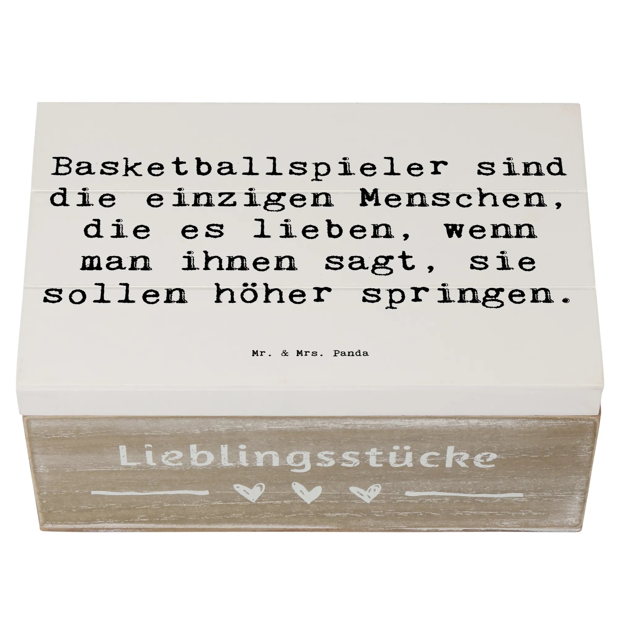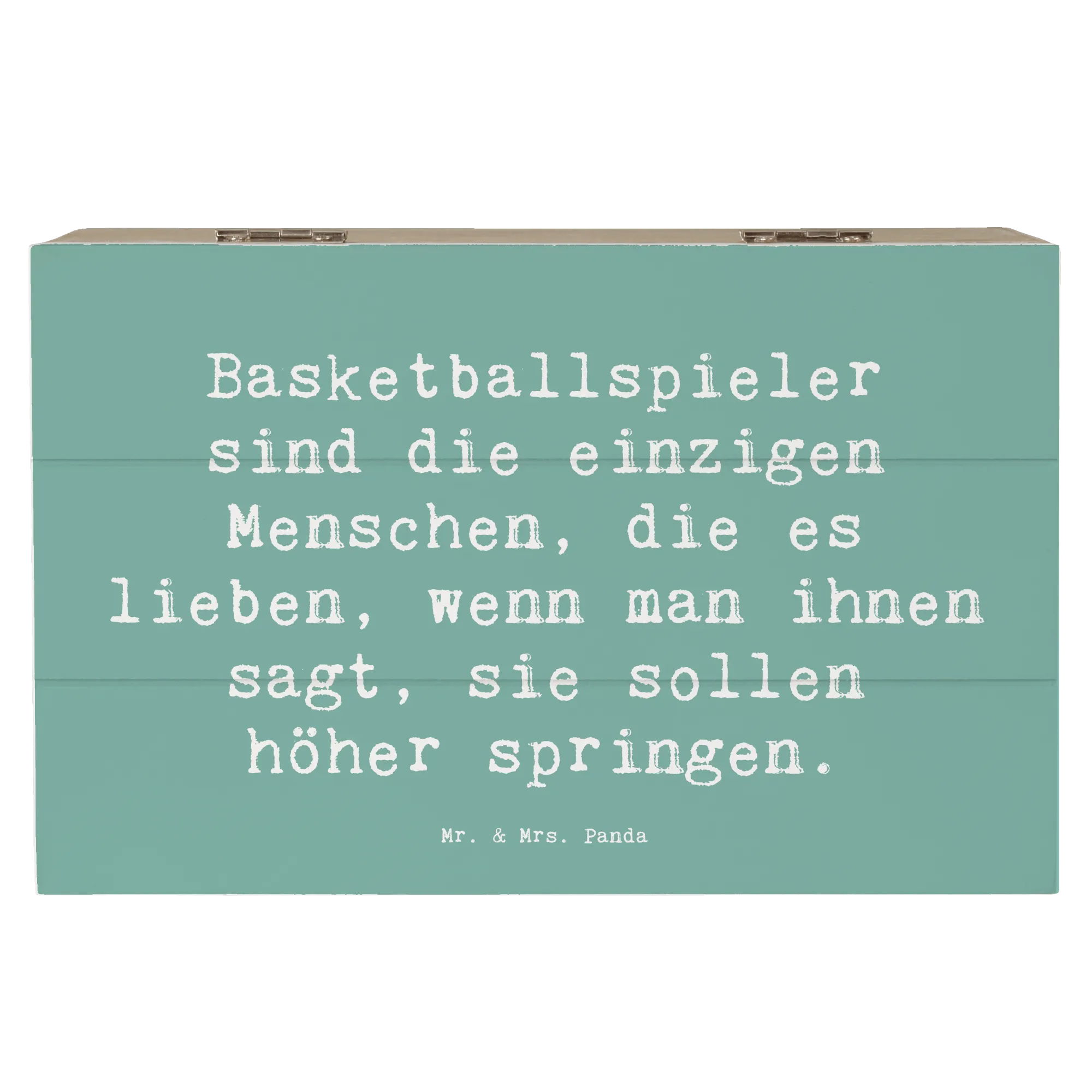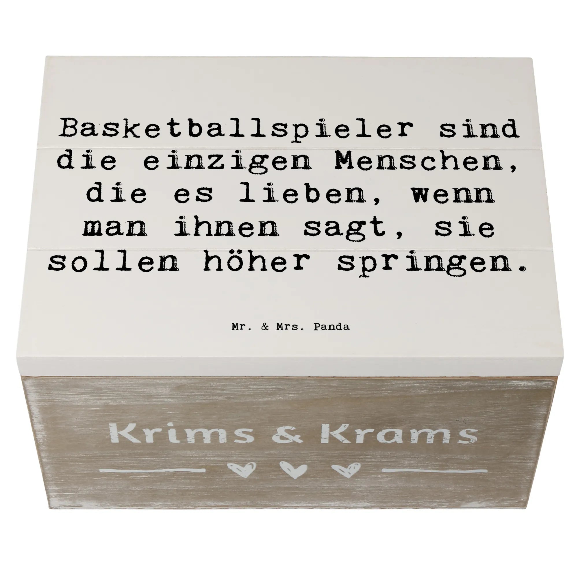 Die wunderschöne Holzkiste von Mr. & Mrs. Panda ist das perfekte Geschenk für Sportler und Basketball-Enthusiasten. Mit einem tollen Motiv, das den Basketball und den Lebensspruch "Basketballspieler sind die einzigen Menschen, die es lieben, wenn man ihnen sagt, sie sollen höher springen." vereint, begeistert diese Kiste jeden Fan des Sports.