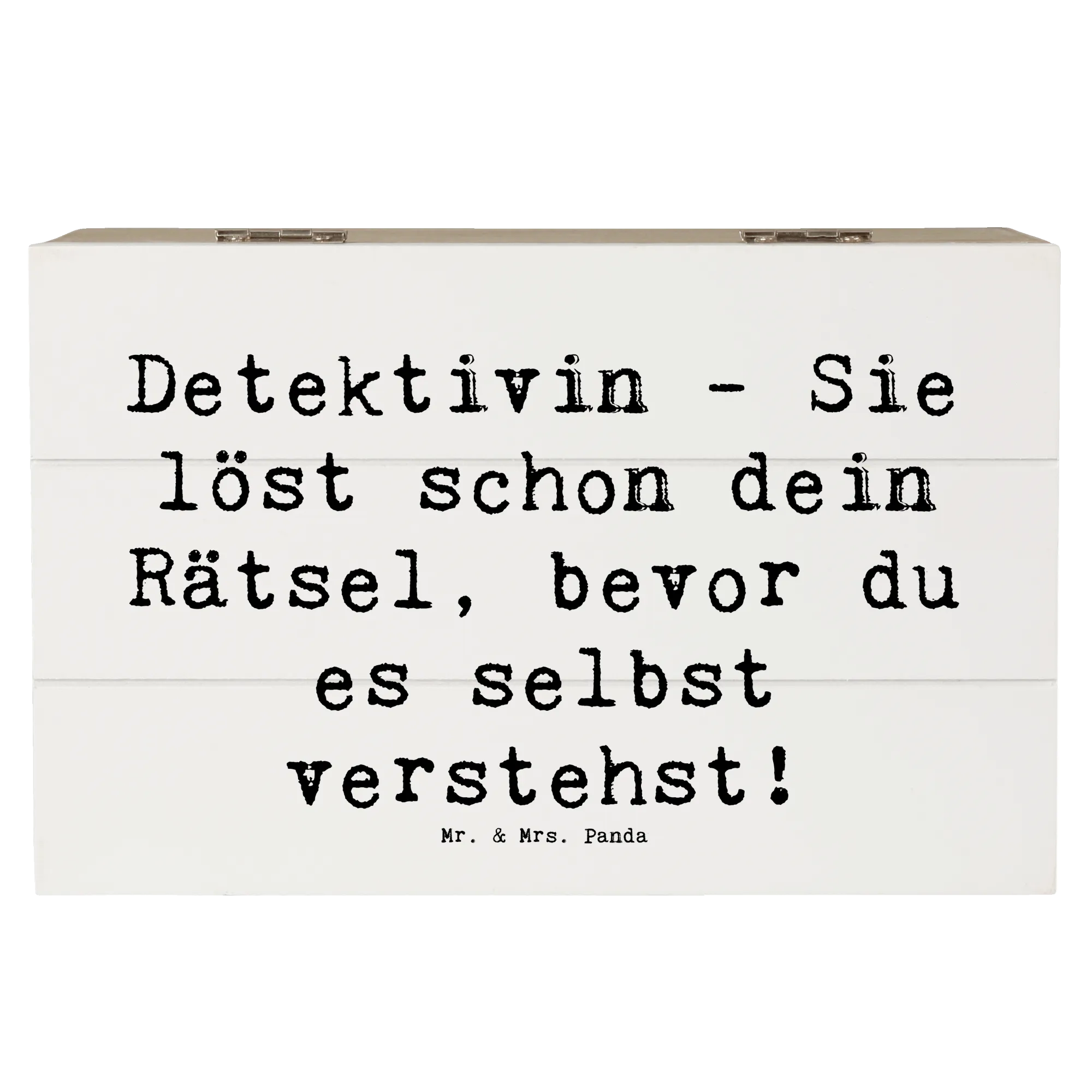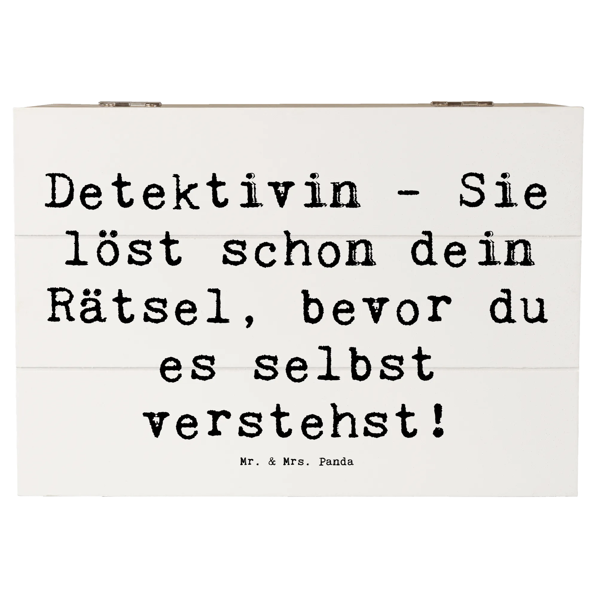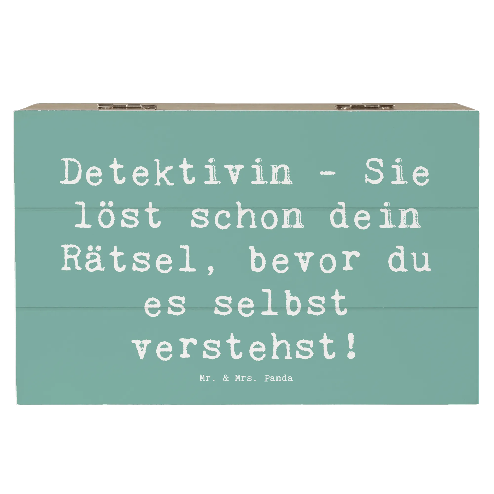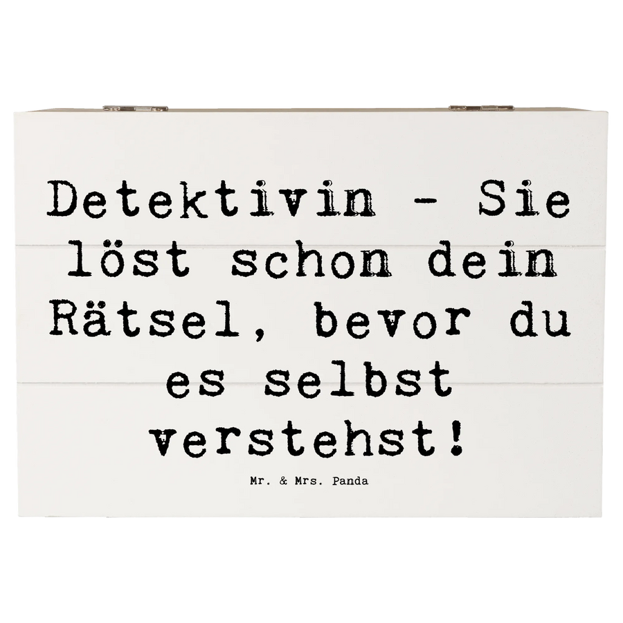 Der Spruch "Detektivin - Sie löst schon dein Rätsel, bevor du es selbst verstehst!" verleiht der Kiste einen charmanten Charakter und macht sie zum idealen Geschenk für alle, die Geheimnisse lieben und gerne rätseln.