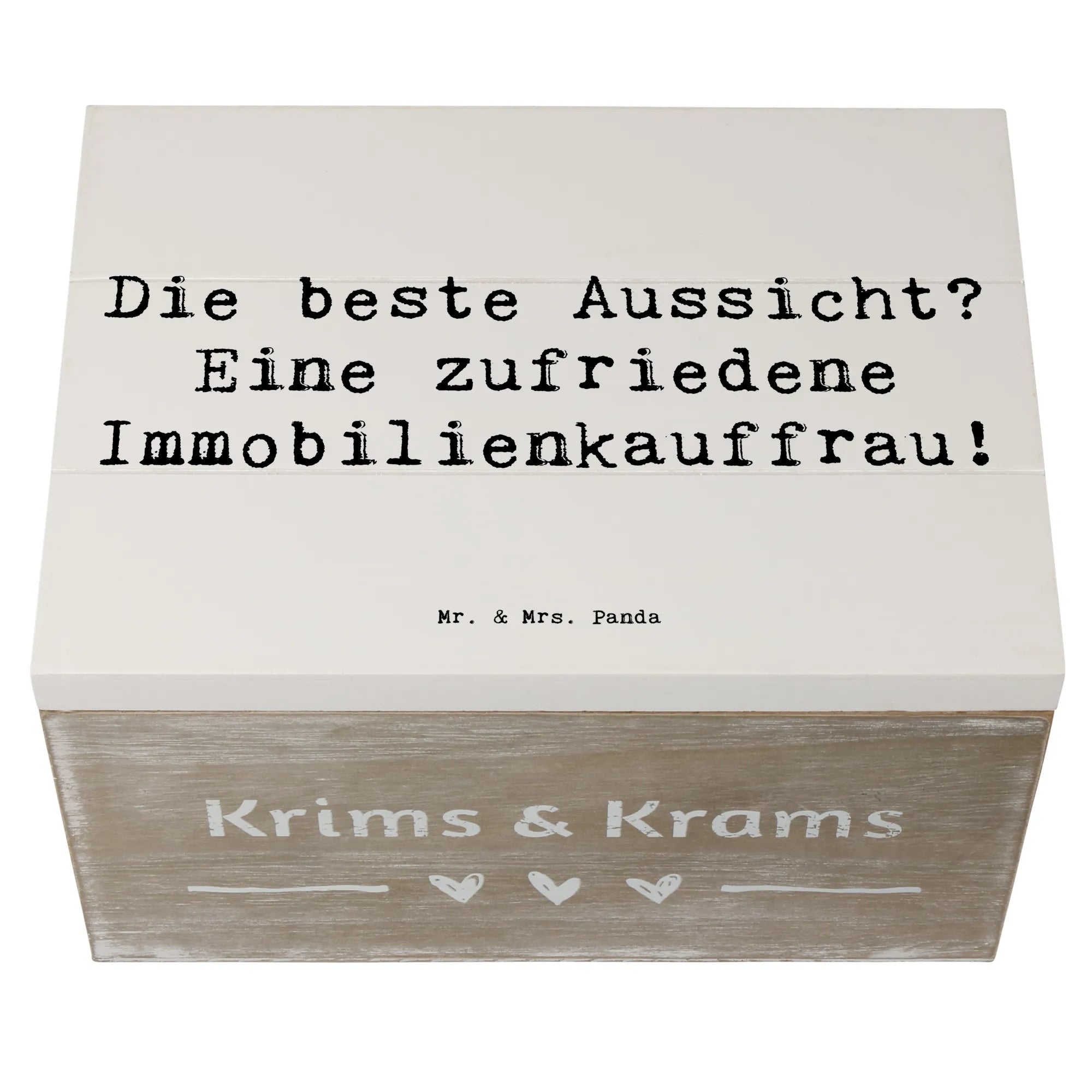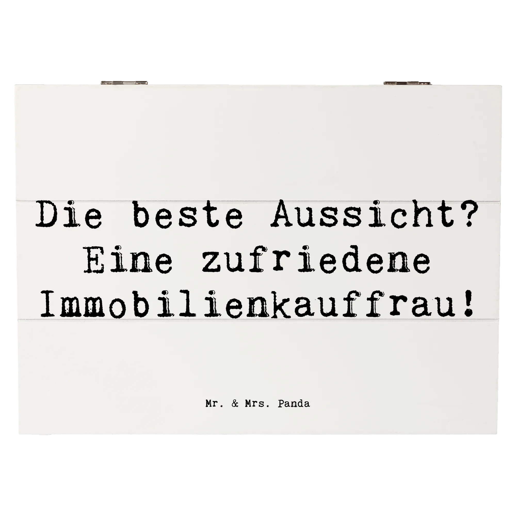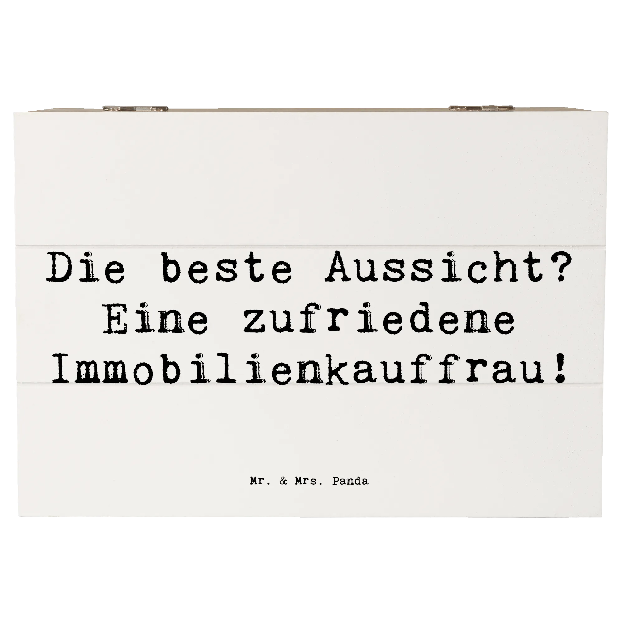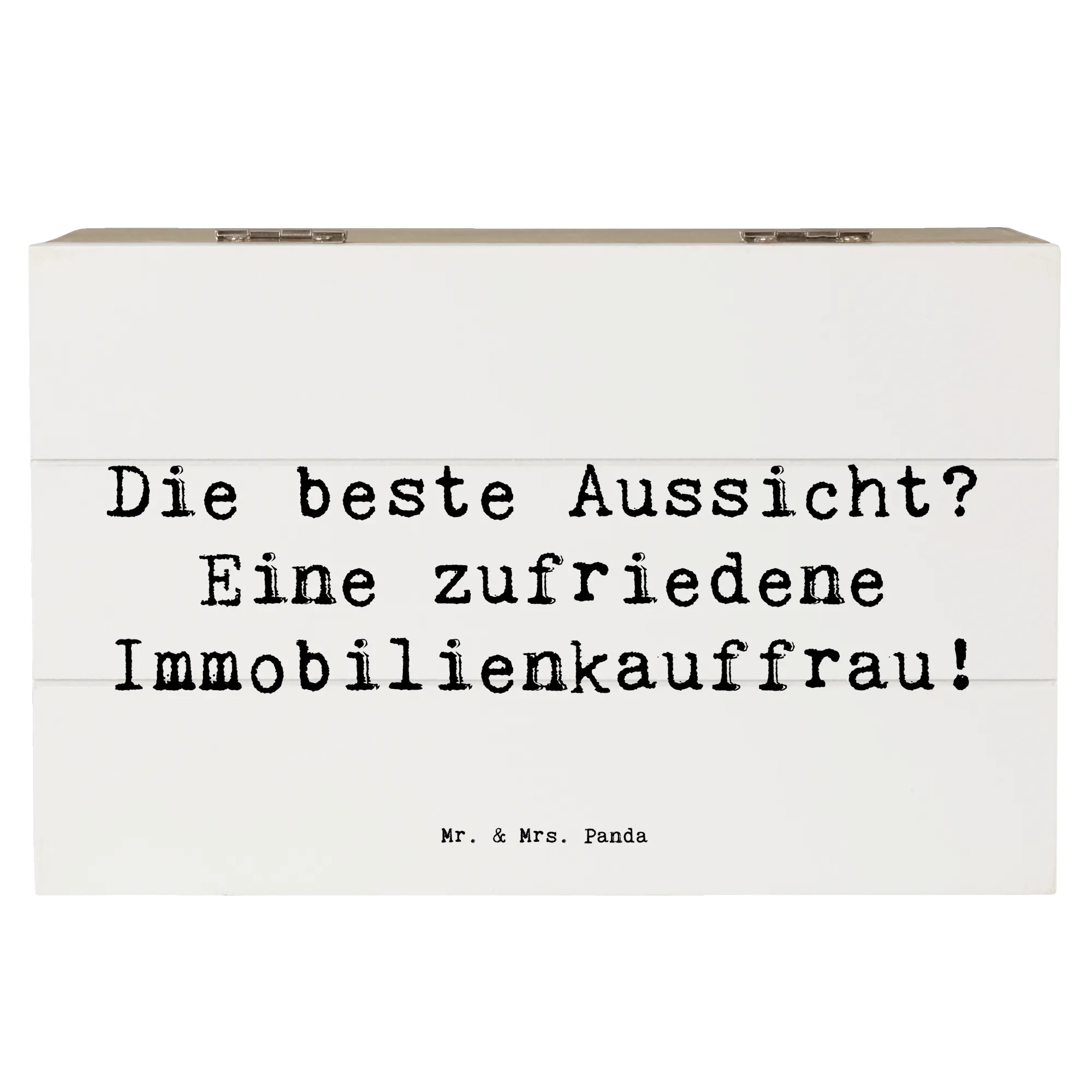 Holzkiste Spruch Die beste Aussicht? Eine zufriedene Immobilienkauffrau! - 22 x 15 cm - Weiß