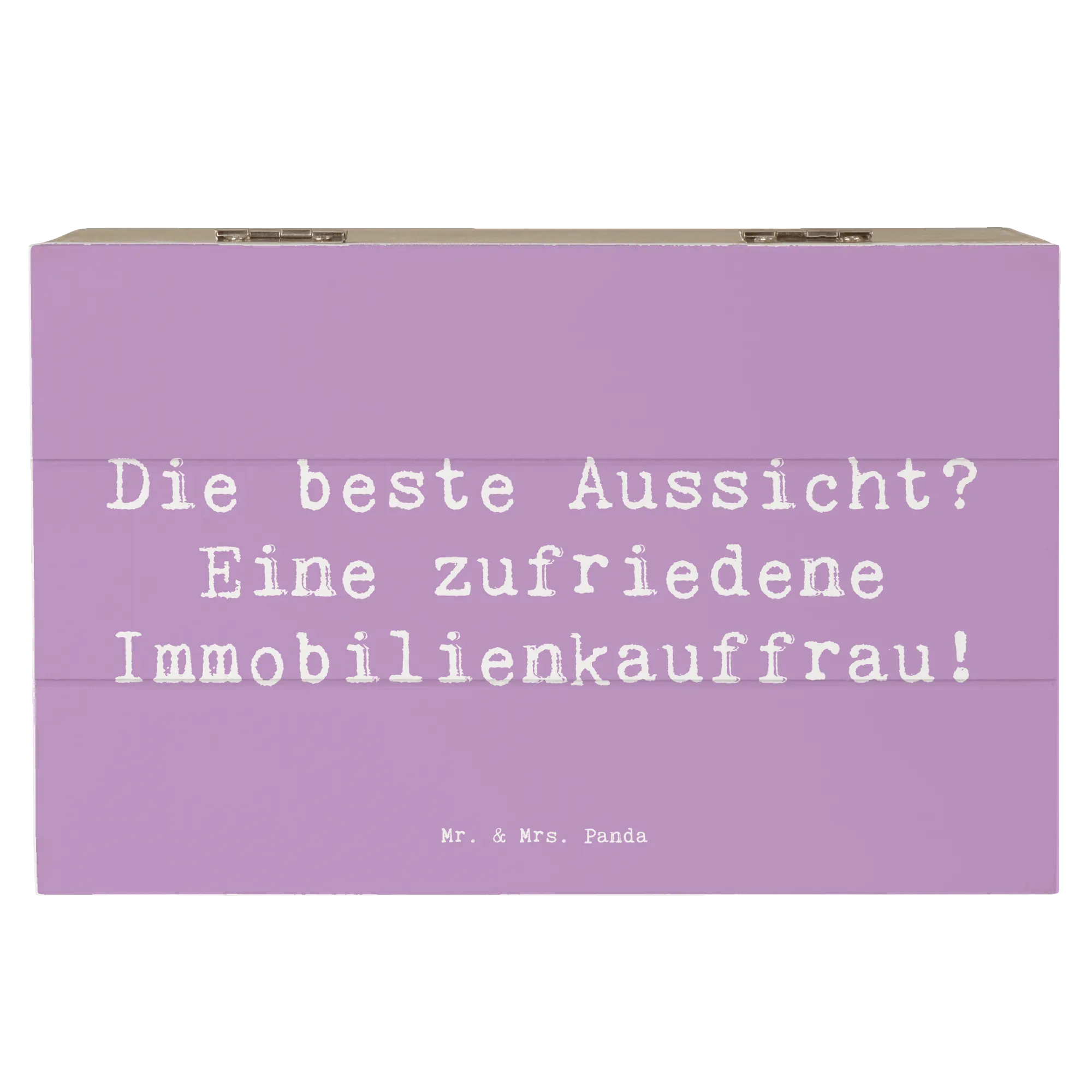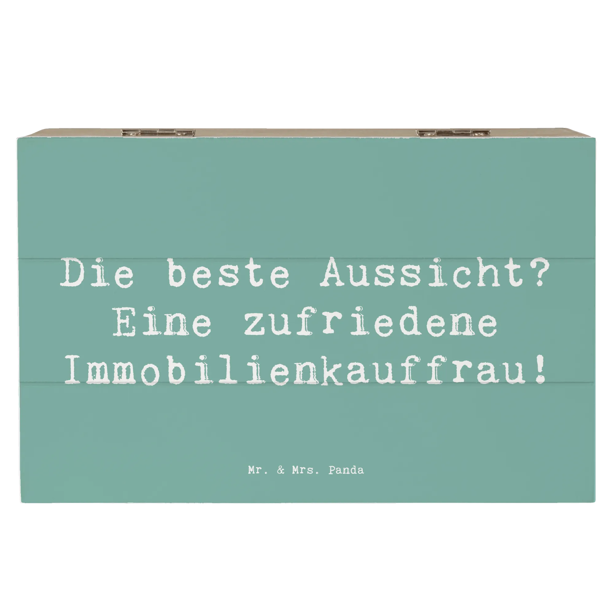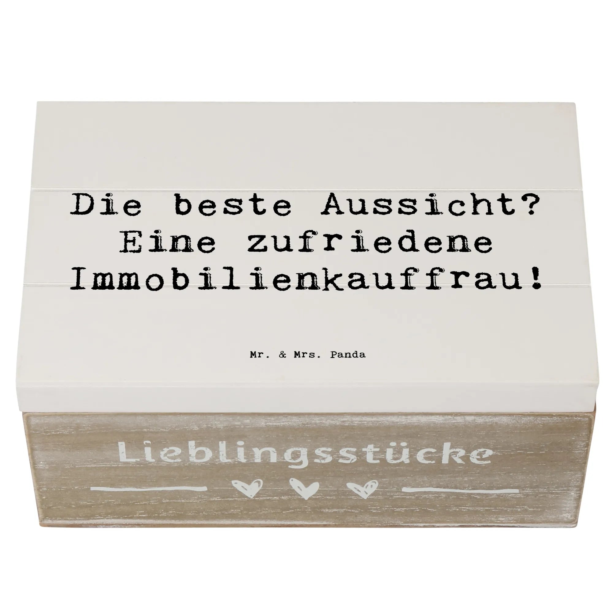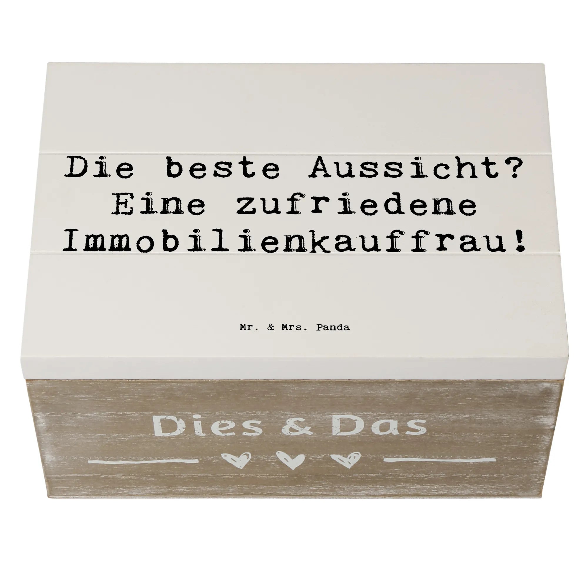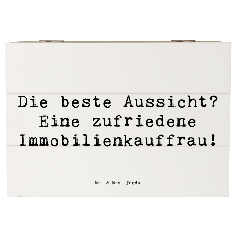 Die wunderschöne Holzkiste von Mr. & Mrs. Panda ist das perfekte Geschenk für Immobilienkauffrauen und alle, die diese kreative Profession schätzen. Mit dem liebevoll gestalteten Motiv "Die beste Aussicht? Eine zufriedene Immobilienkauffrau!" ist diese Holzkiste mehr als nur ein Aufbewahrungsort – sie ist ein Statement deiner Leidenschaft und Professionalität im Immobiliengeschäft.