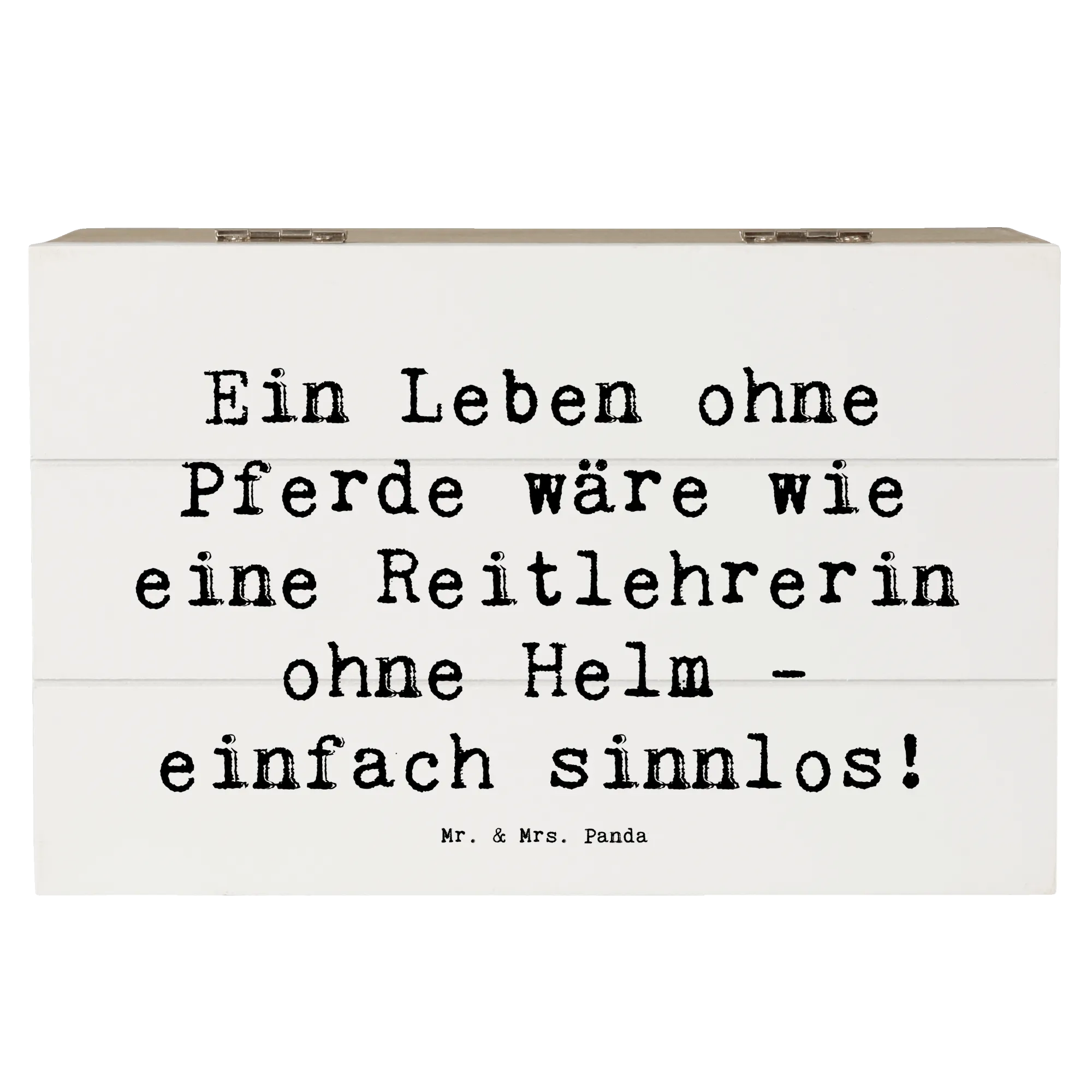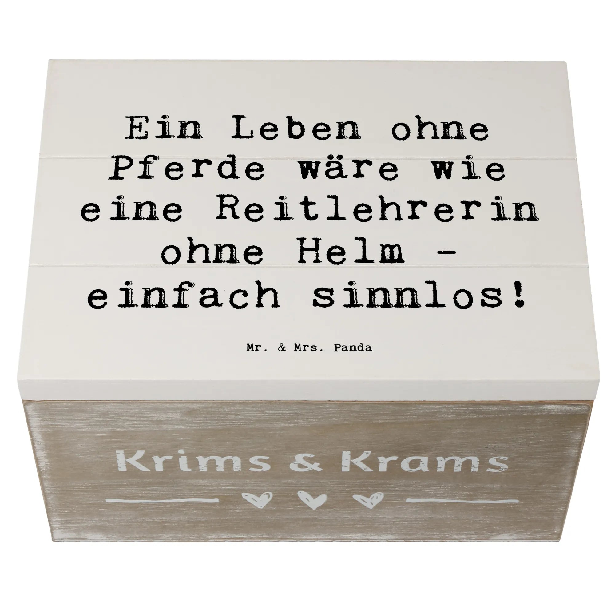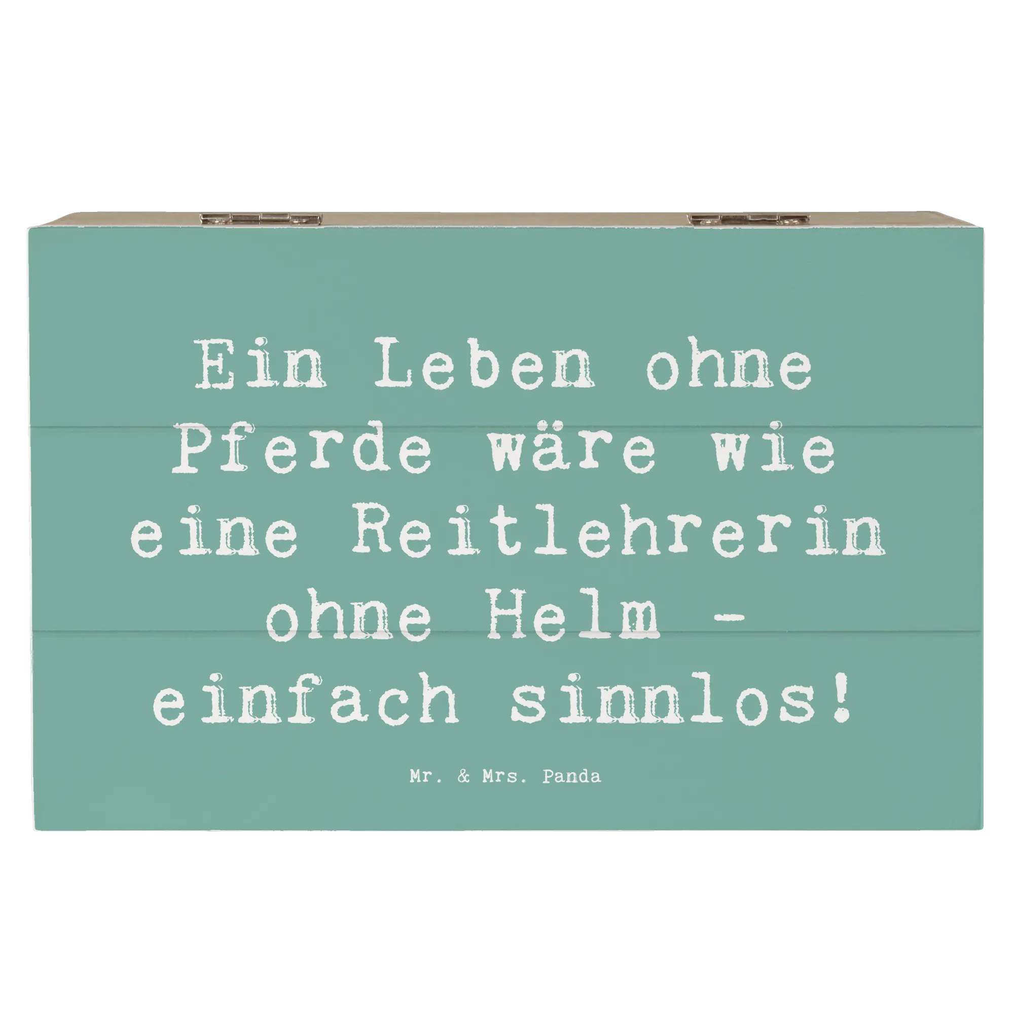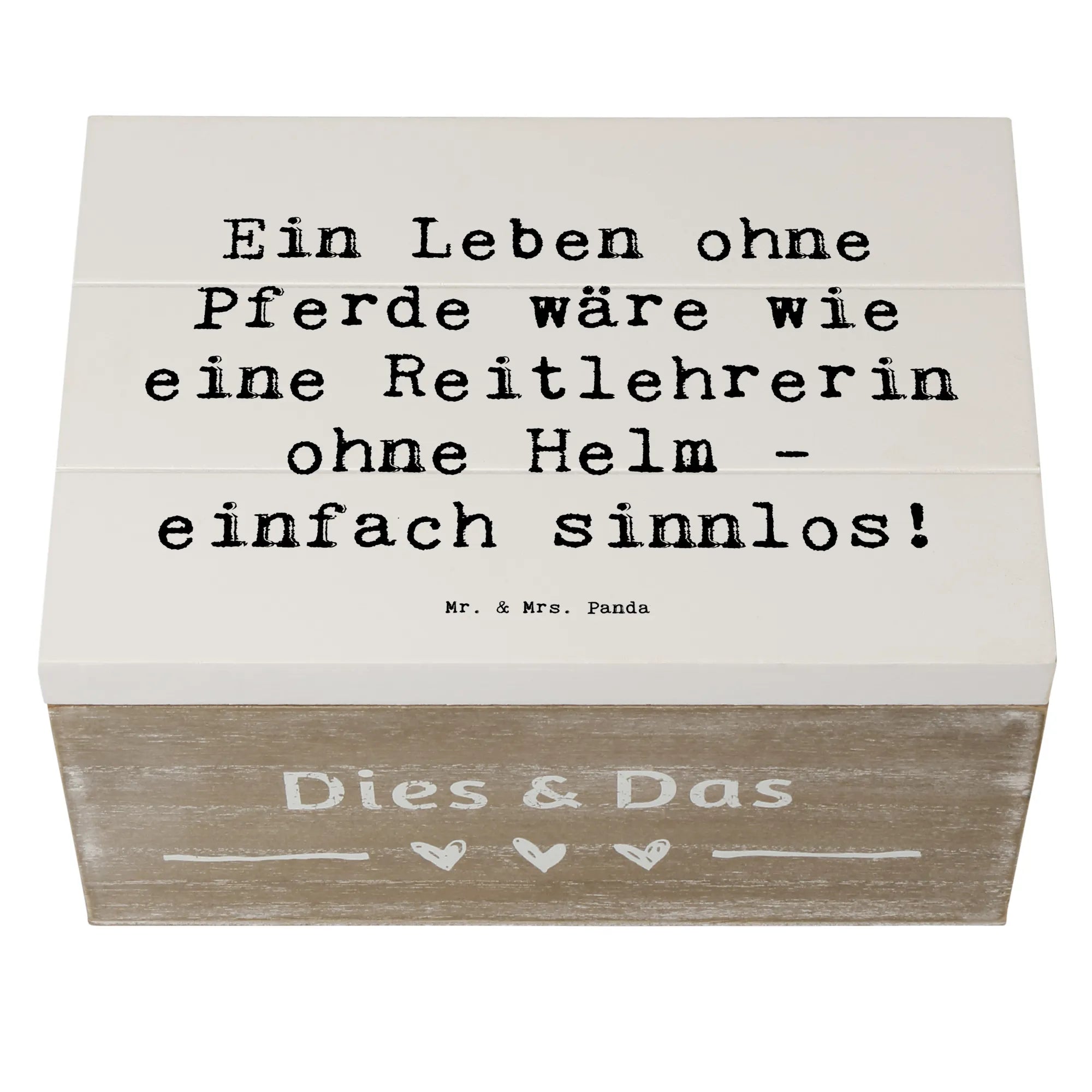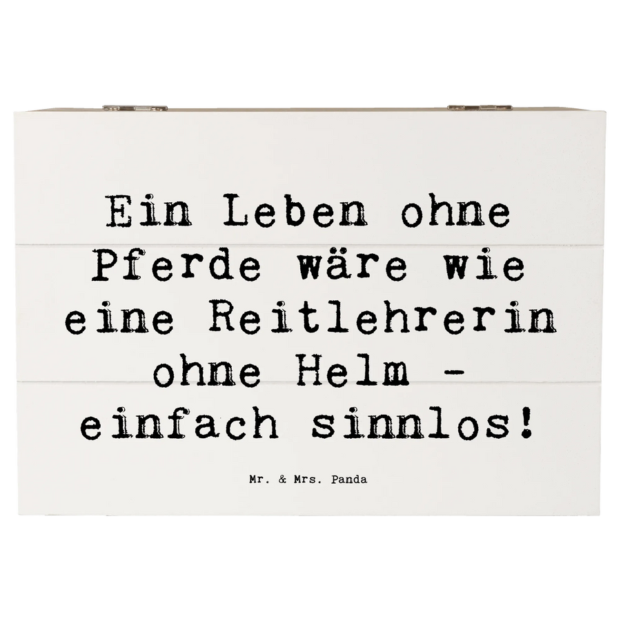 Die wunderschöne Holzkiste von Mr. & Mrs. Panda ist das perfekte Geschenk für alle Reitlehrerinnen da draußen. Mit dem liebevoll gestalteten Spruch "Ein Leben ohne Pferde wäre wie eine Reitlehrerin ohne Helm - einfach sinnlos!" ist diese Kiste nicht nur funktional, sondern auch ein echter Hingucker.