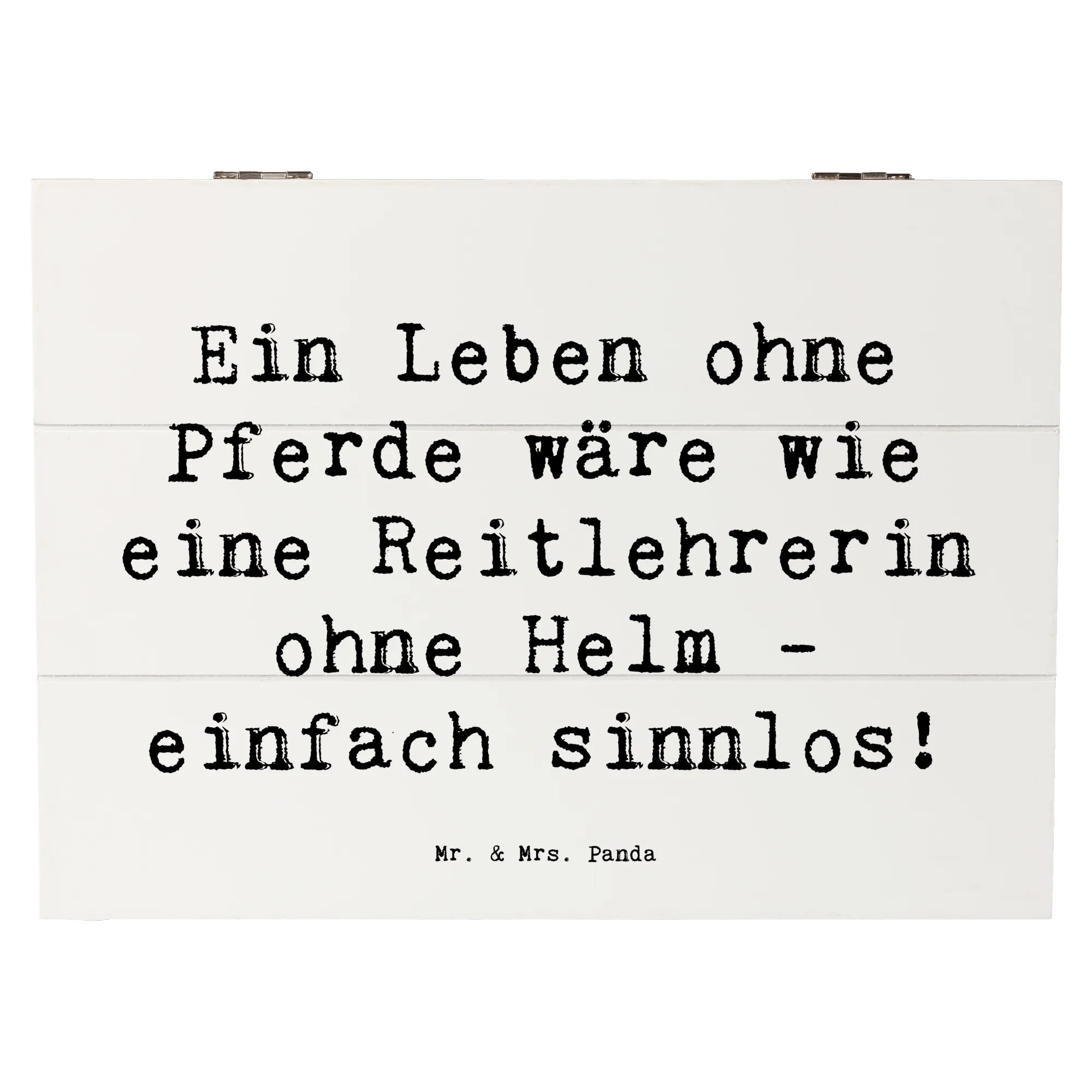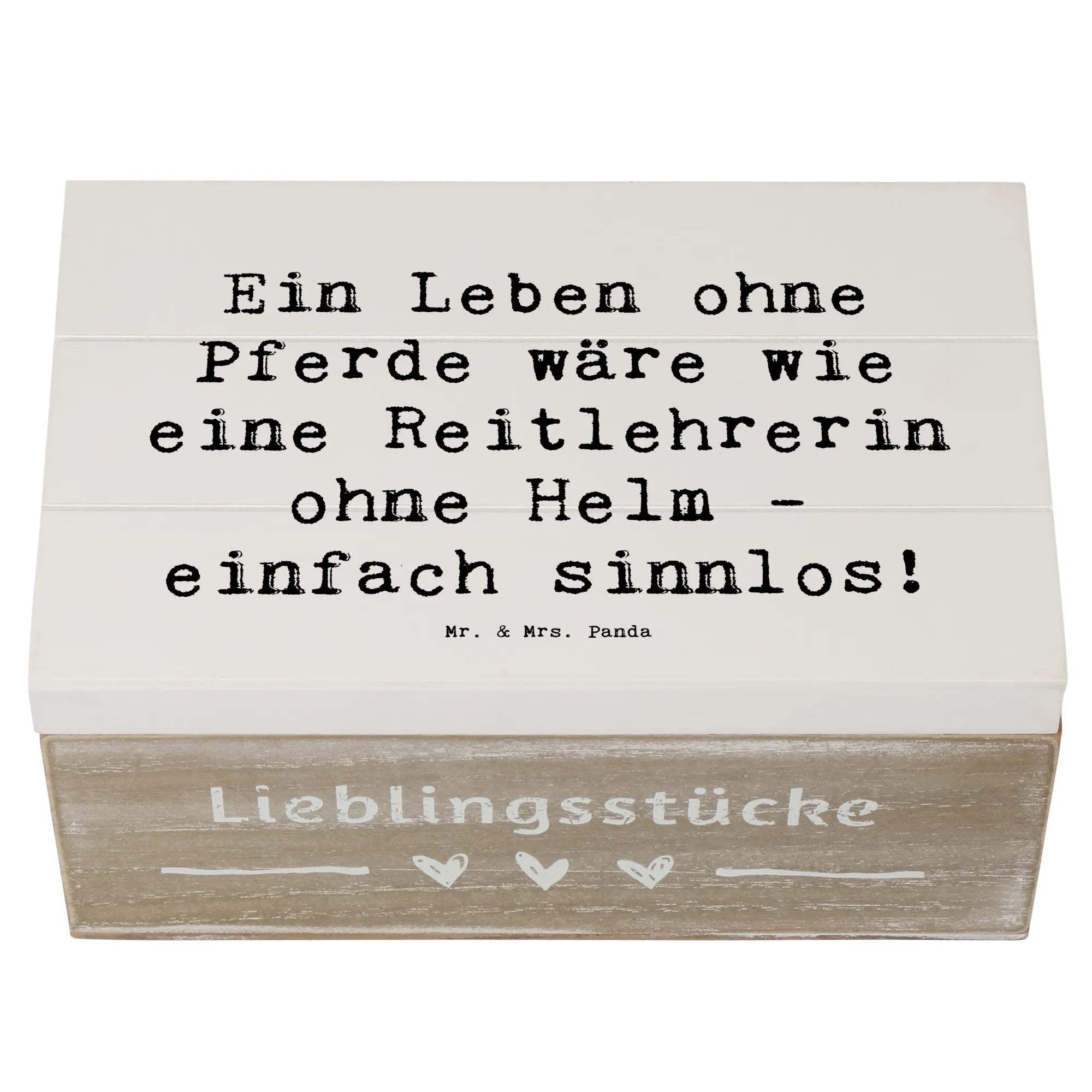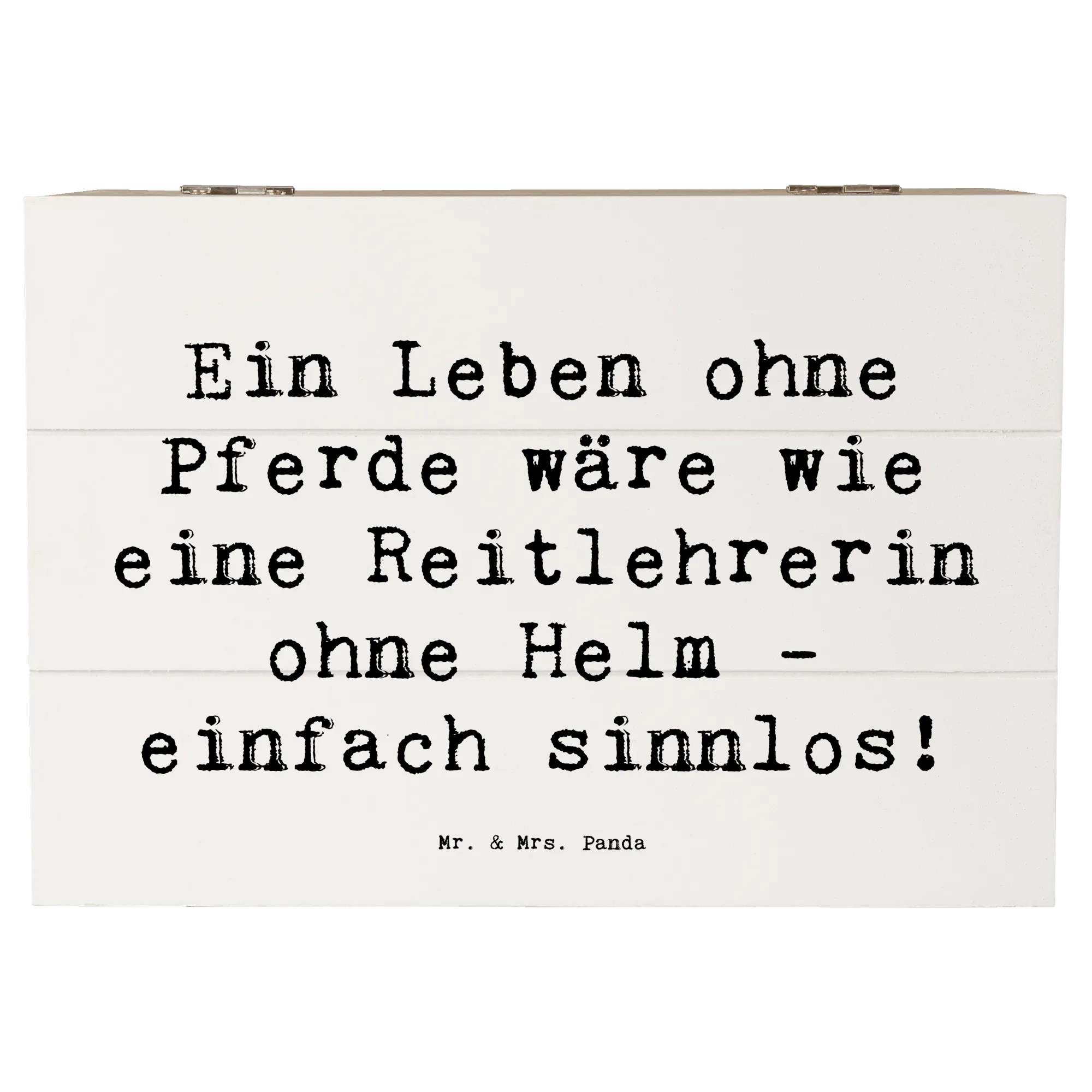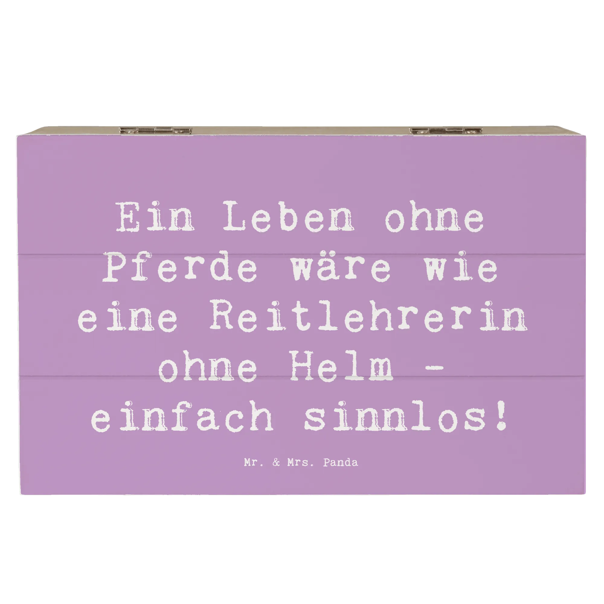 Die wunderschöne Holzkiste von Mr. & Mrs. Panda ist das perfekte Geschenk für alle Reitlehrerinnen da draußen. Mit dem liebevoll gestalteten Spruch "Ein Leben ohne Pferde wäre wie eine Reitlehrerin ohne Helm - einfach sinnlos!" ist diese Kiste nicht nur funktional, sondern auch ein echter Hingucker.