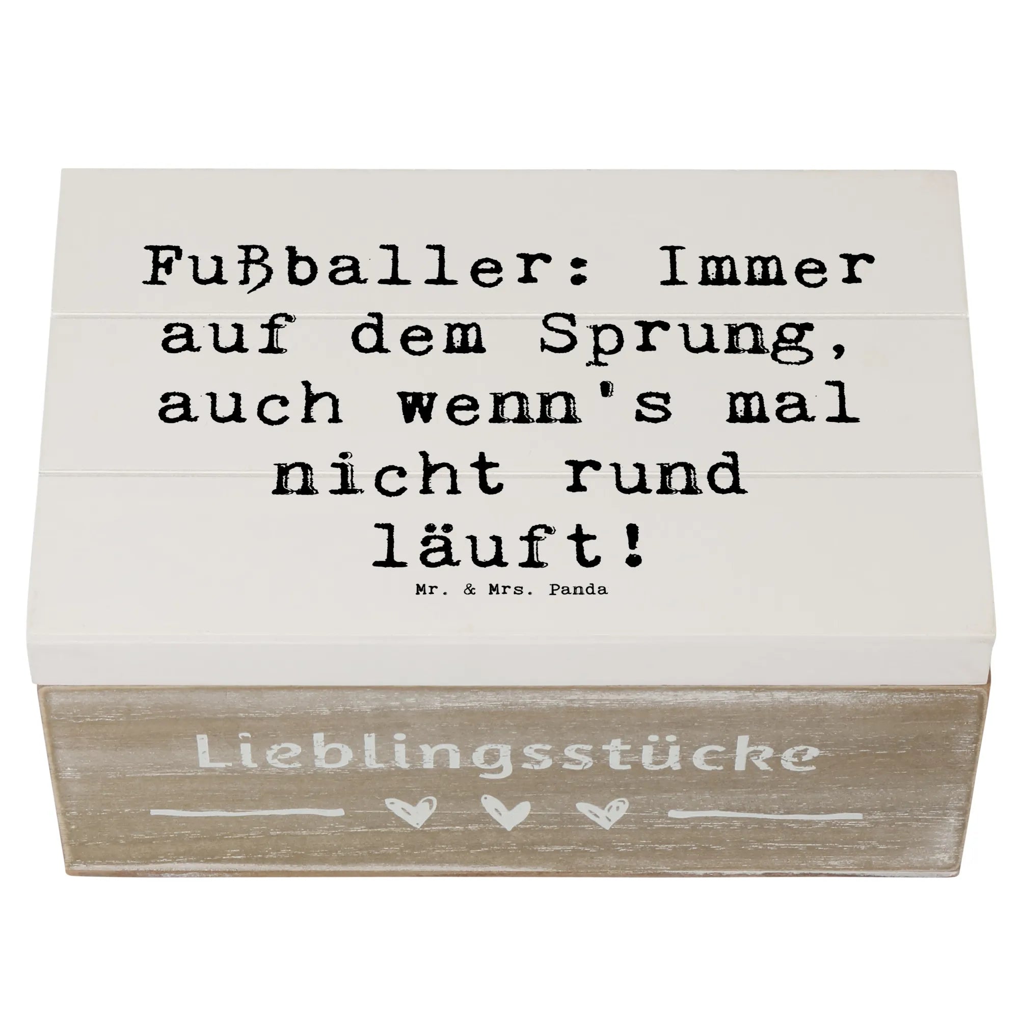 Die wunderschöne Holzkiste von Mr. & Mrs. Panda mit dem liebevollen Motiv "Fußballer: Immer auf dem Sprung, auch wenn's mal nicht rund läuft!" ist das perfekte Geschenk für alle Fußballbegeisterten!