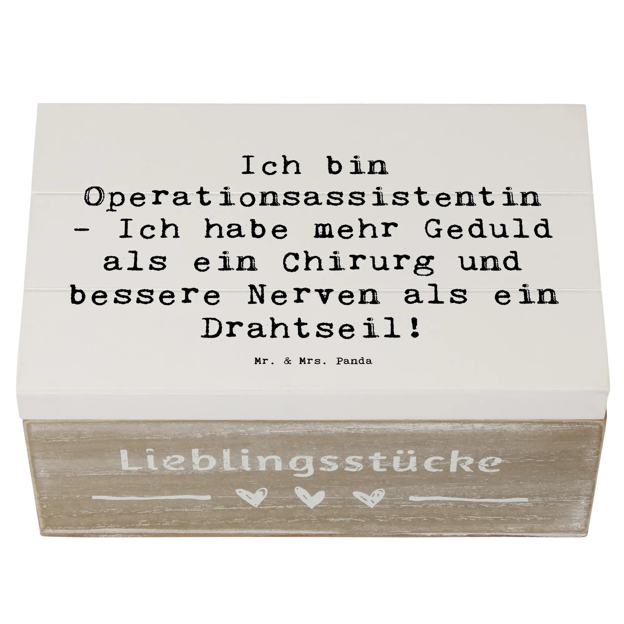 Entdecke die wunderschöne Holzkiste "Operationsassistentin" von Mr. & Mrs. Panda! Diese liebevoll gestaltete Schatzkiste bietet nicht nur einen stilvollen Aufbewahrungsort für all Deine Lieblingssachen, sondern bringt auch ein Lächeln in den Alltag. Mit einem einzigartigen Spruch, der besagt: "Ich bin Operationsassistentin - Ich habe mehr Geduld als ein Chirurg und bessere Nerven als ein Drahtseil!", wird diese Kiste zum perfekten Geschenk für alle, die im Gesundheitswesen arbeiten oder einfach nur Spaß an ihrem Beruf haben.