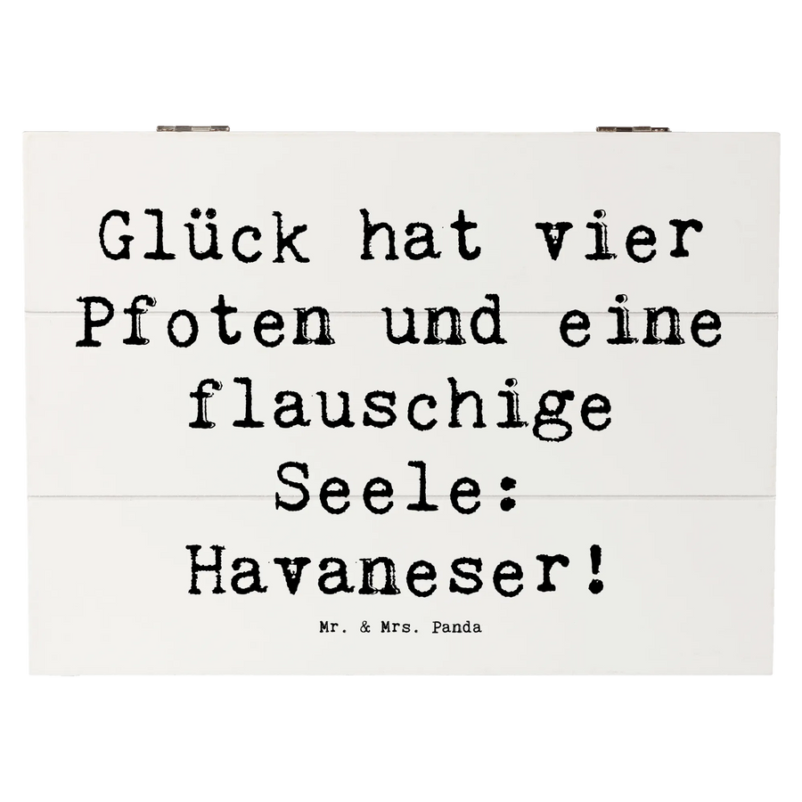 Entdecke die bezaubernde Holzkiste von Mr. & Mrs. Panda, die perfekt für alle Hundefans und besonders für Liebhaber der Hunderasse Havaneser ist! Diese liebevoll gestaltete Kiste mit dem Motto "Glück hat vier Pfoten und eine flauschige Seele: Havaneser!" bietet nicht nur Platz für die schönsten Erinnerungen, sondern ist auch eine herrlich dekorative Aufbewahrungslösung für alle Schätze, die Du sammeln möchtest.