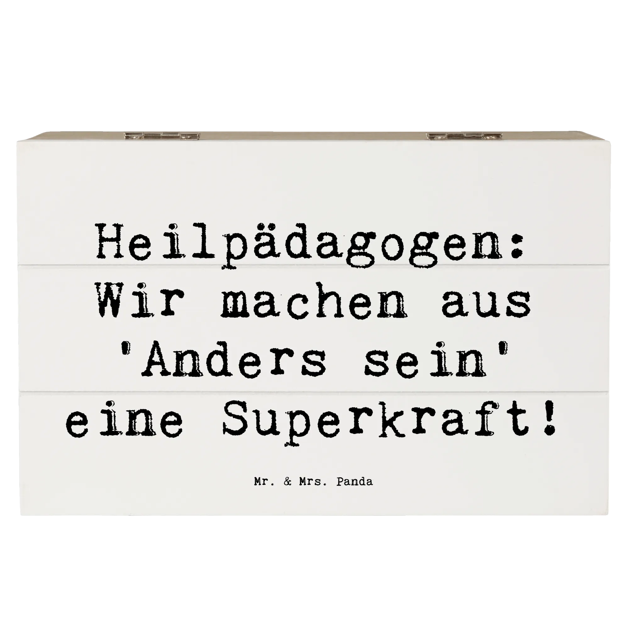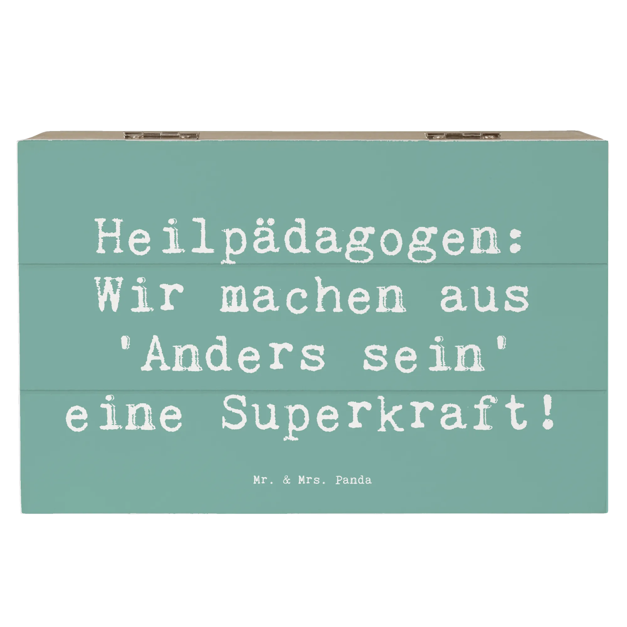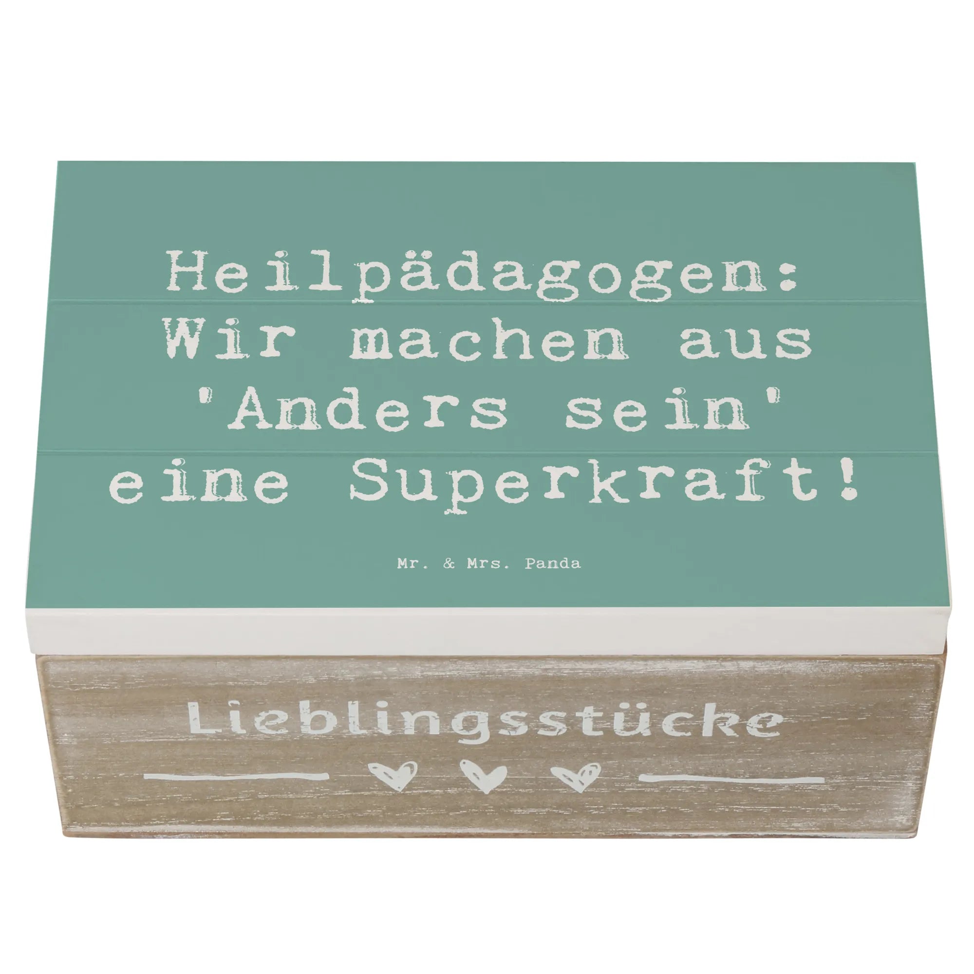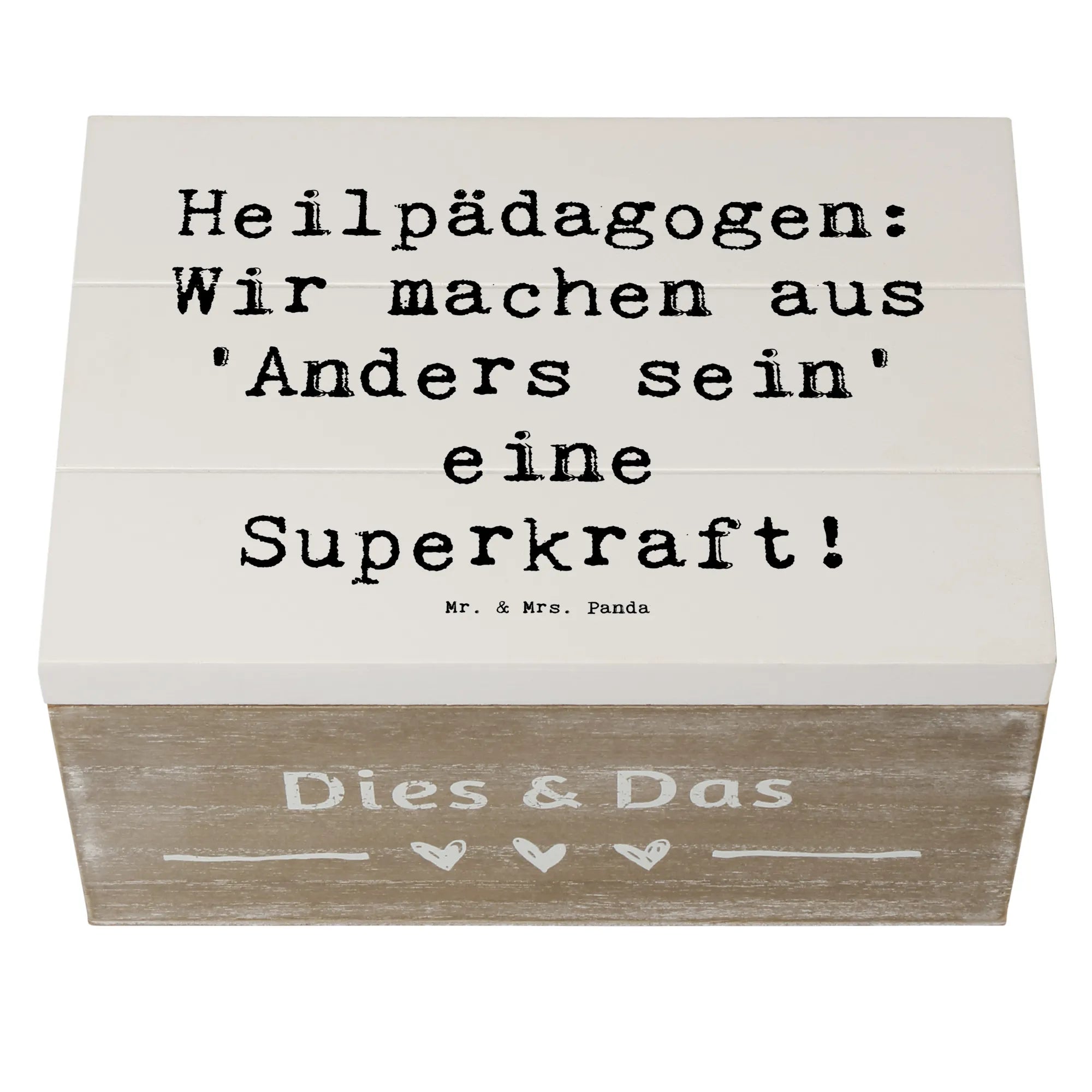 Die wunderschöne Holzkiste für Heilpädagoginnen von Mr. & Mrs. Panda ist das perfekte Geschenk für jede Gelegenheit! Diese liebevoll gestaltete Schatzkiste zeigt nicht nur das einladende Motiv einer Heilpädagogin, sondern trägt auch den motivierenden Slogan: "Heilpädagogen: Wir machen aus 'Anders sein' eine Superkraft!"