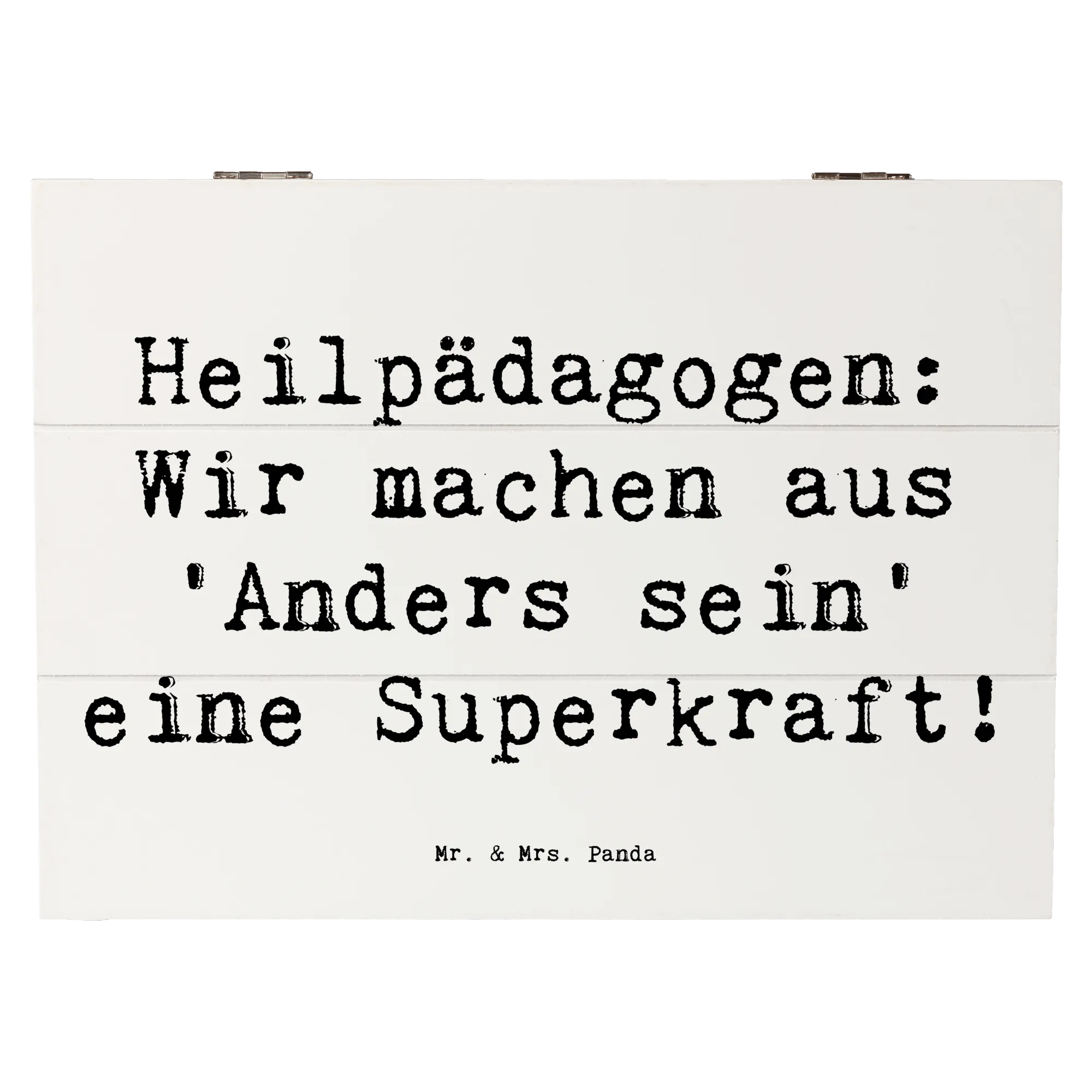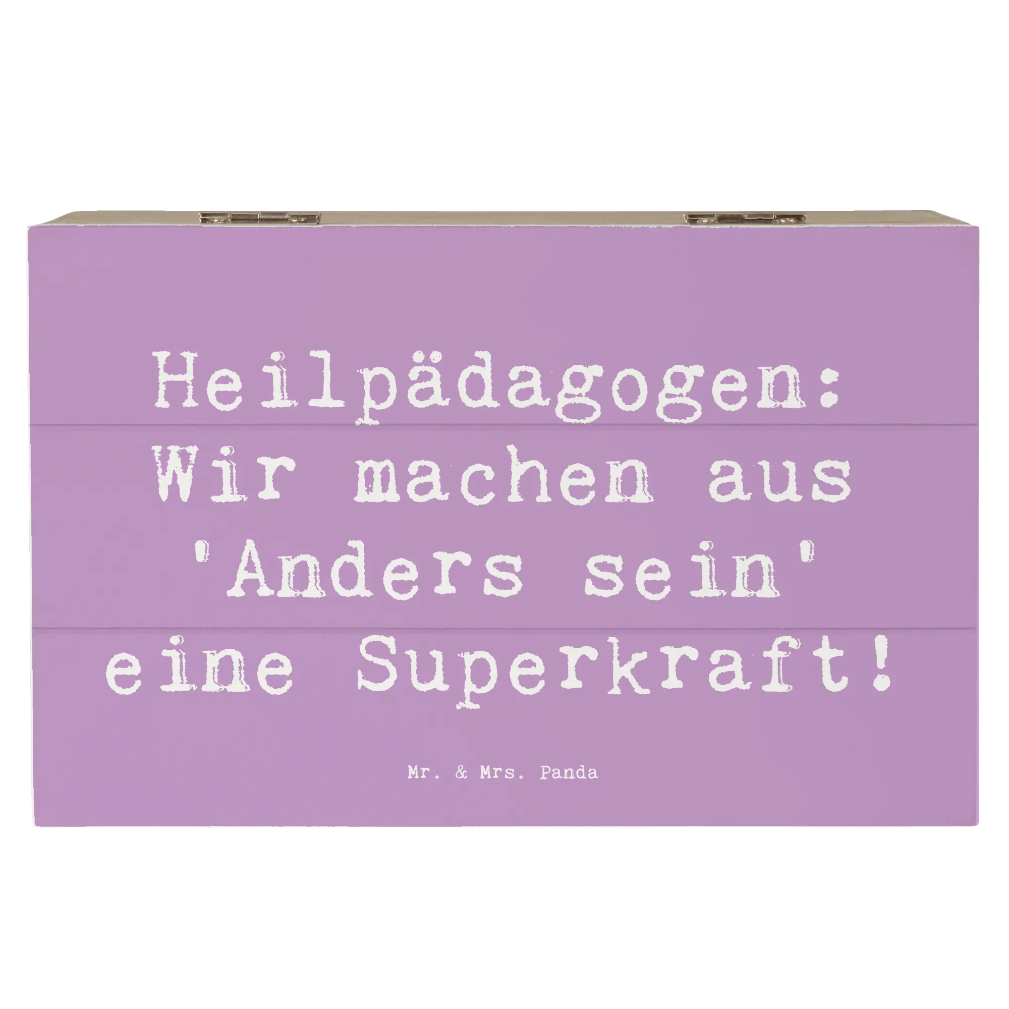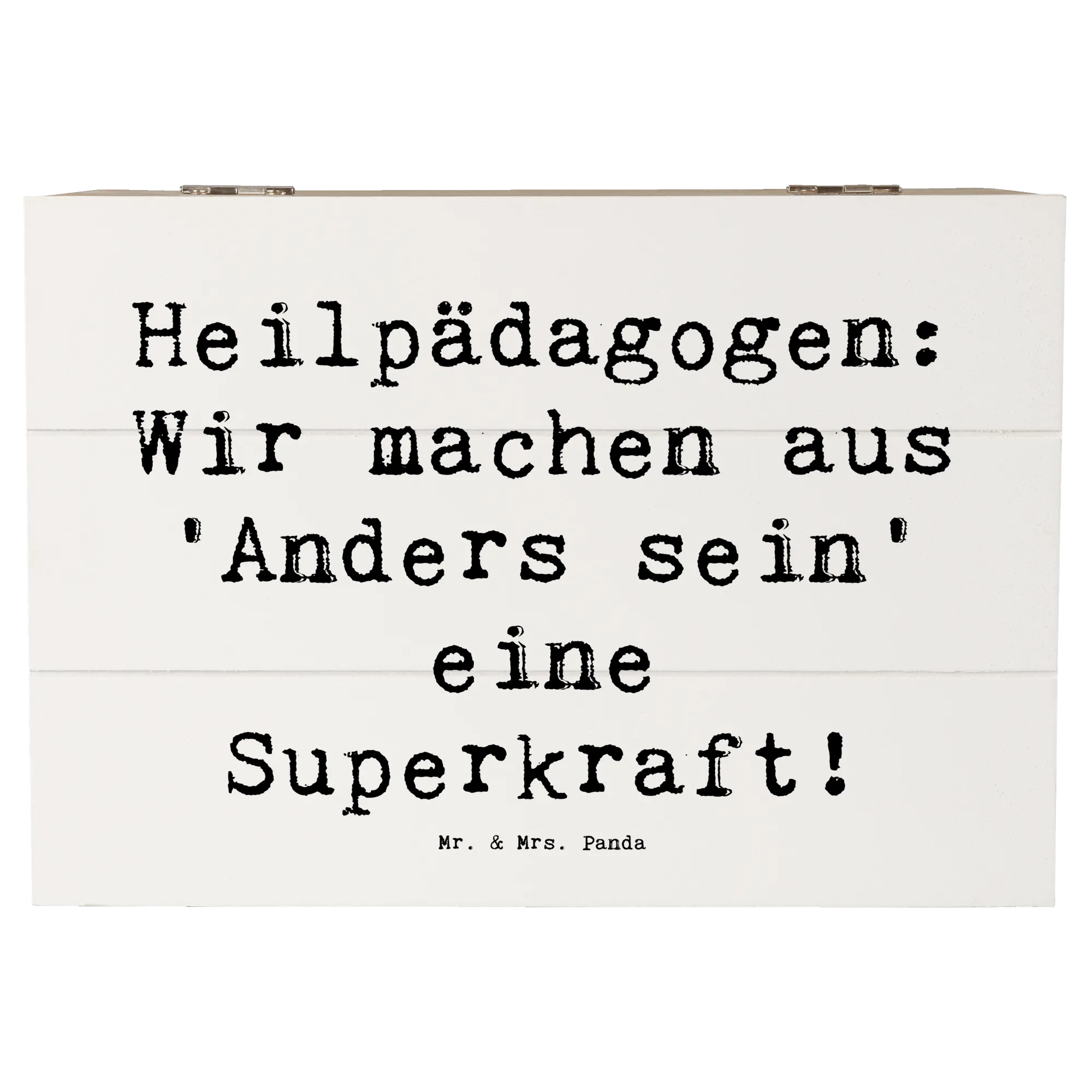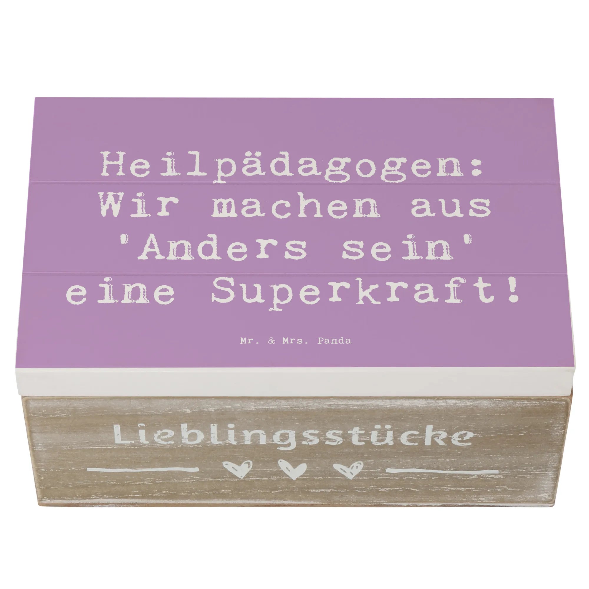 Die wunderschöne Holzkiste für Heilpädagoginnen von Mr. & Mrs. Panda ist das perfekte Geschenk für jede Gelegenheit! Diese liebevoll gestaltete Schatzkiste zeigt nicht nur das einladende Motiv einer Heilpädagogin, sondern trägt auch den motivierenden Slogan: "Heilpädagogen: Wir machen aus 'Anders sein' eine Superkraft!"