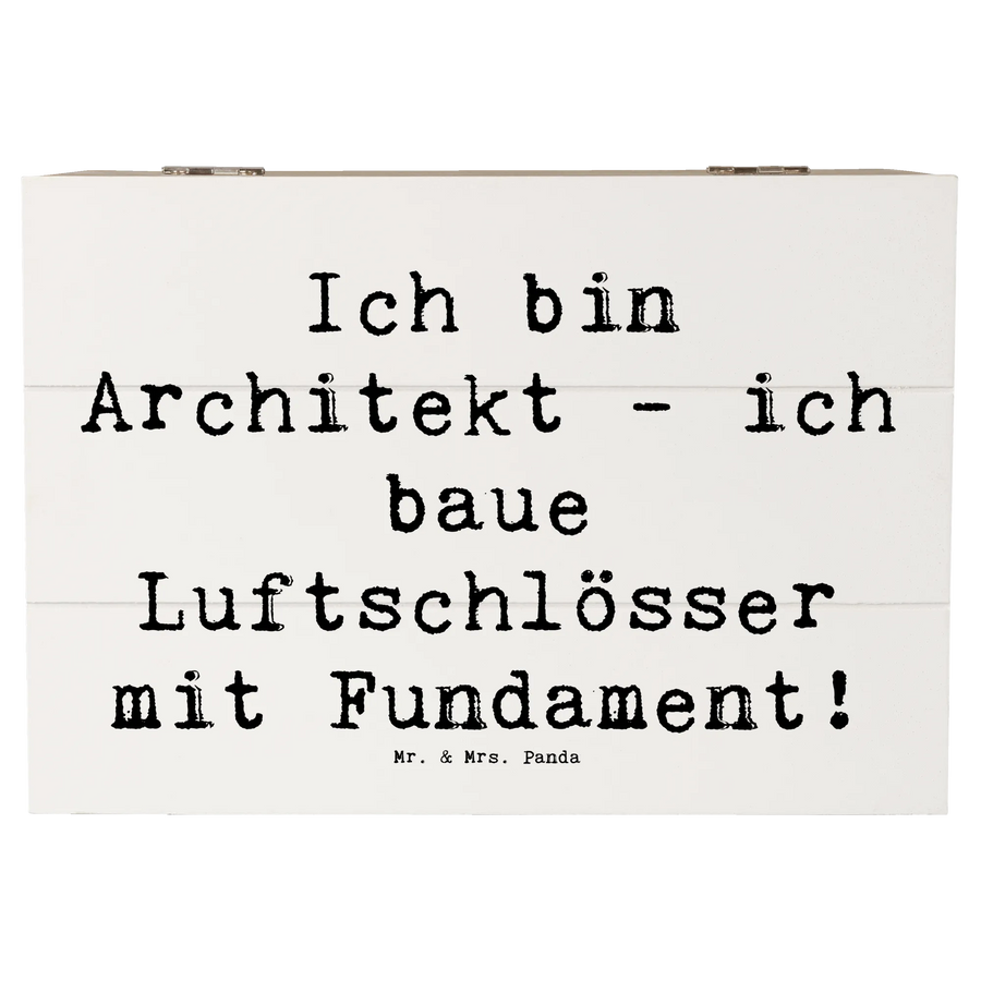 Die wunderschöne Holzkiste von Mr. & Mrs. Panda ist der perfekte Begleiter für alle Architekten und Architektur-Liebhaber. Mit ihrem herzlichen Slogan "Ich bin Architekt - ich baue Luftschlösser mit Fundament!" ist sie nicht nur ein traumhaftes Deko-Element, sondern auch eine praktische Aufbewahrungsbox für all die wertvollen Erinnerungen, die du sammeln möchtest.