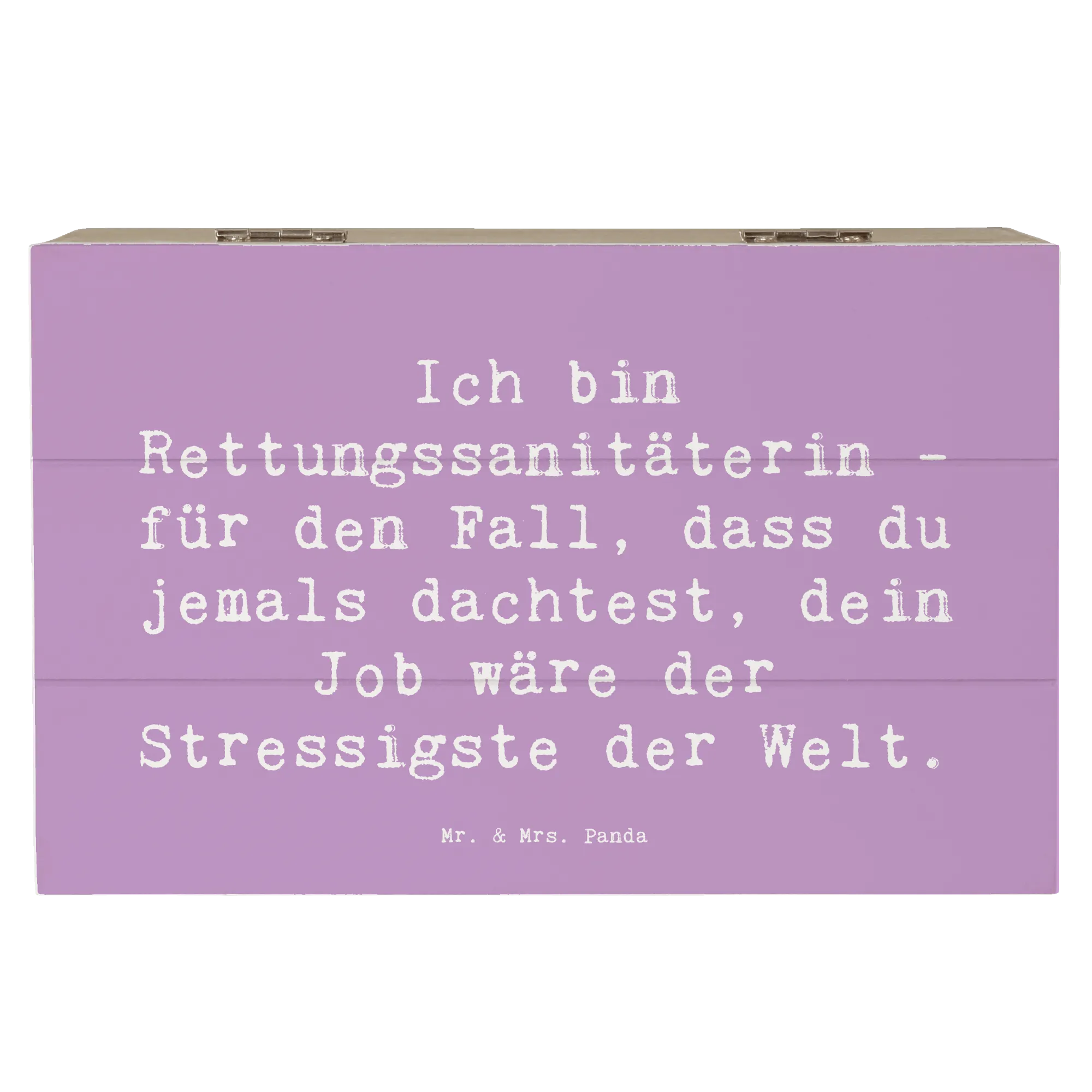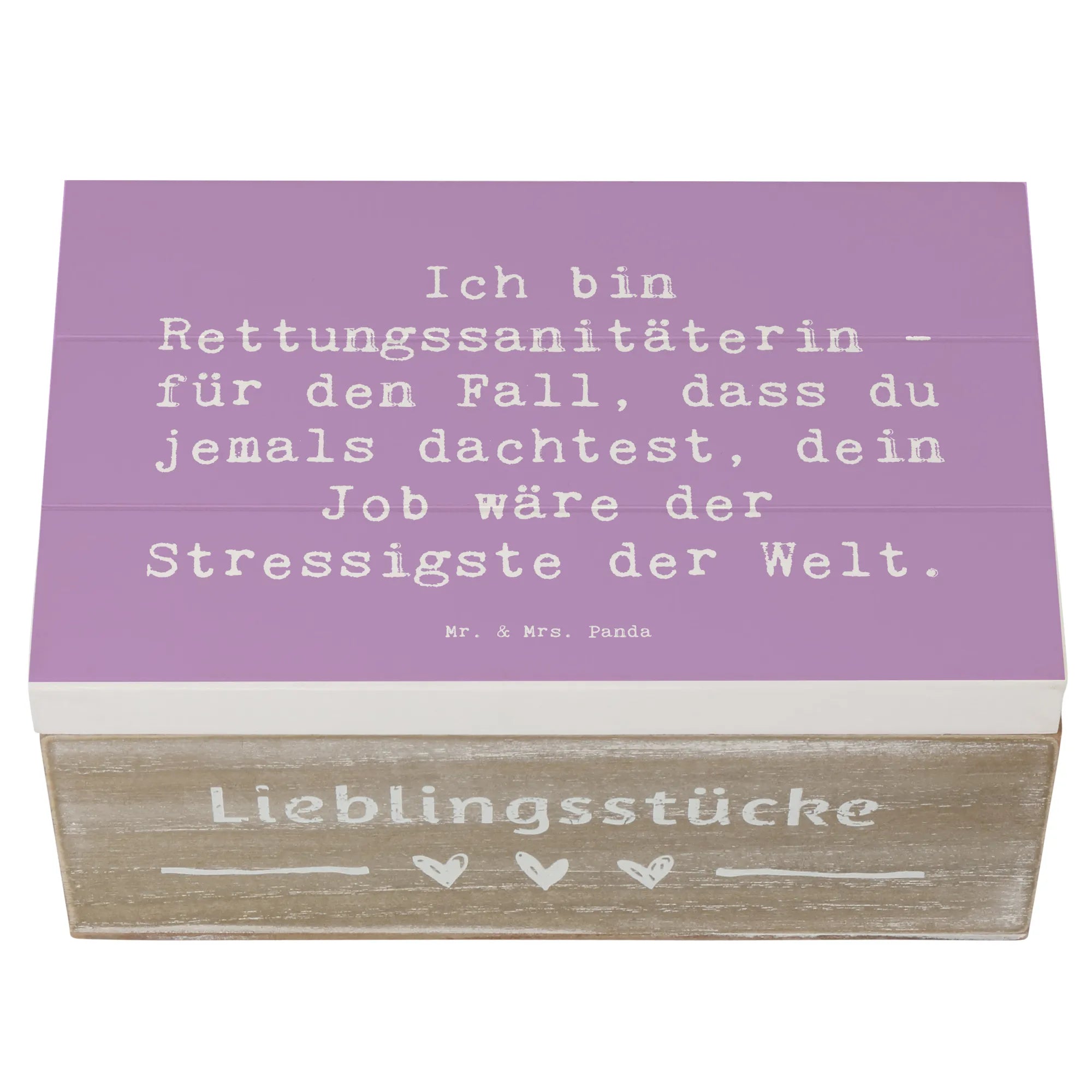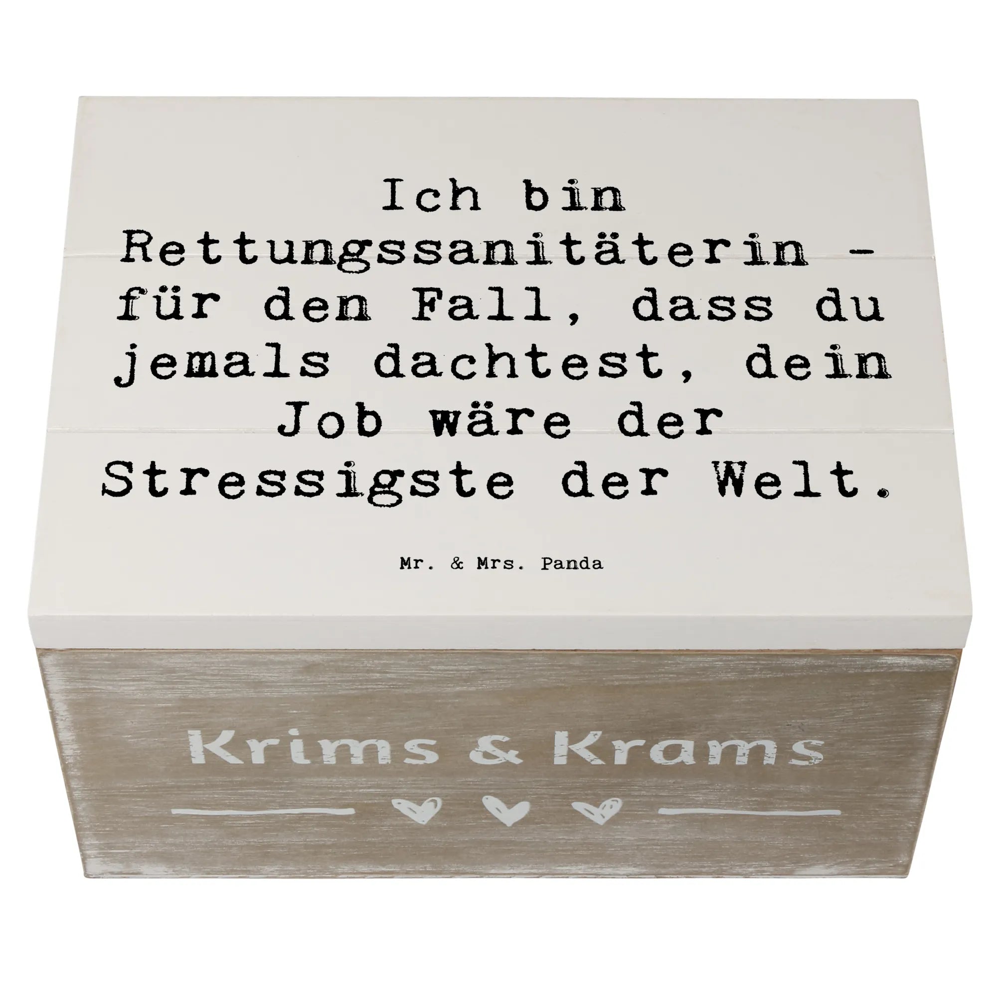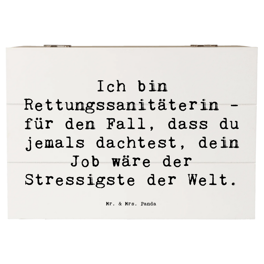 Entdecke die wundervolle Holzkiste "Ich bin Rettungssanitäterin – für den Fall, dass du jemals dachtest, dein Job wäre der Stressigste der Welt" von Mr. & Mrs. Panda! Diese einzigartige Kiste ist nicht nur eine praktische Aufbewahrungslösung, sondern auch ein liebevolles Geschenk für all die Heldinnen und Helden, die im Rettungsdienst tätig sind.