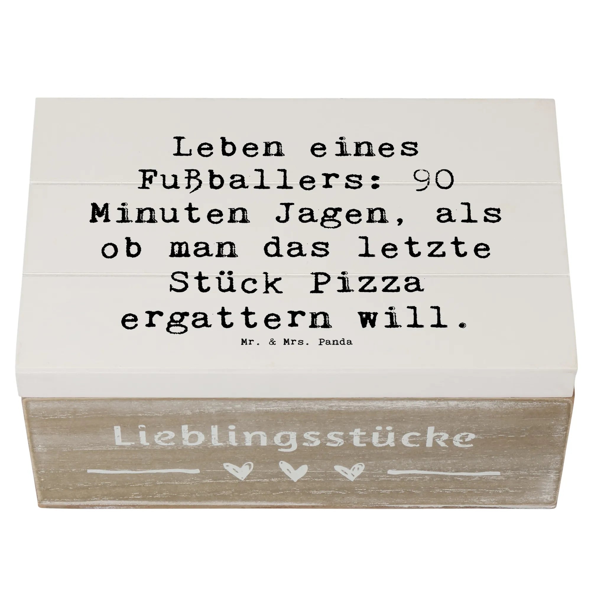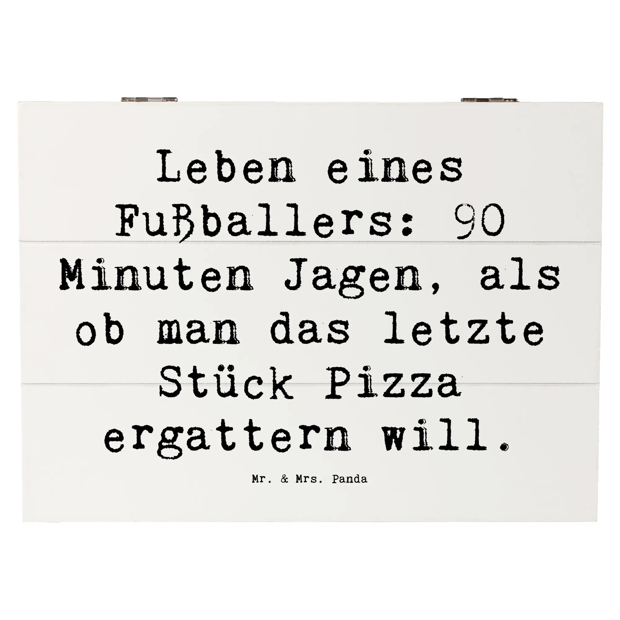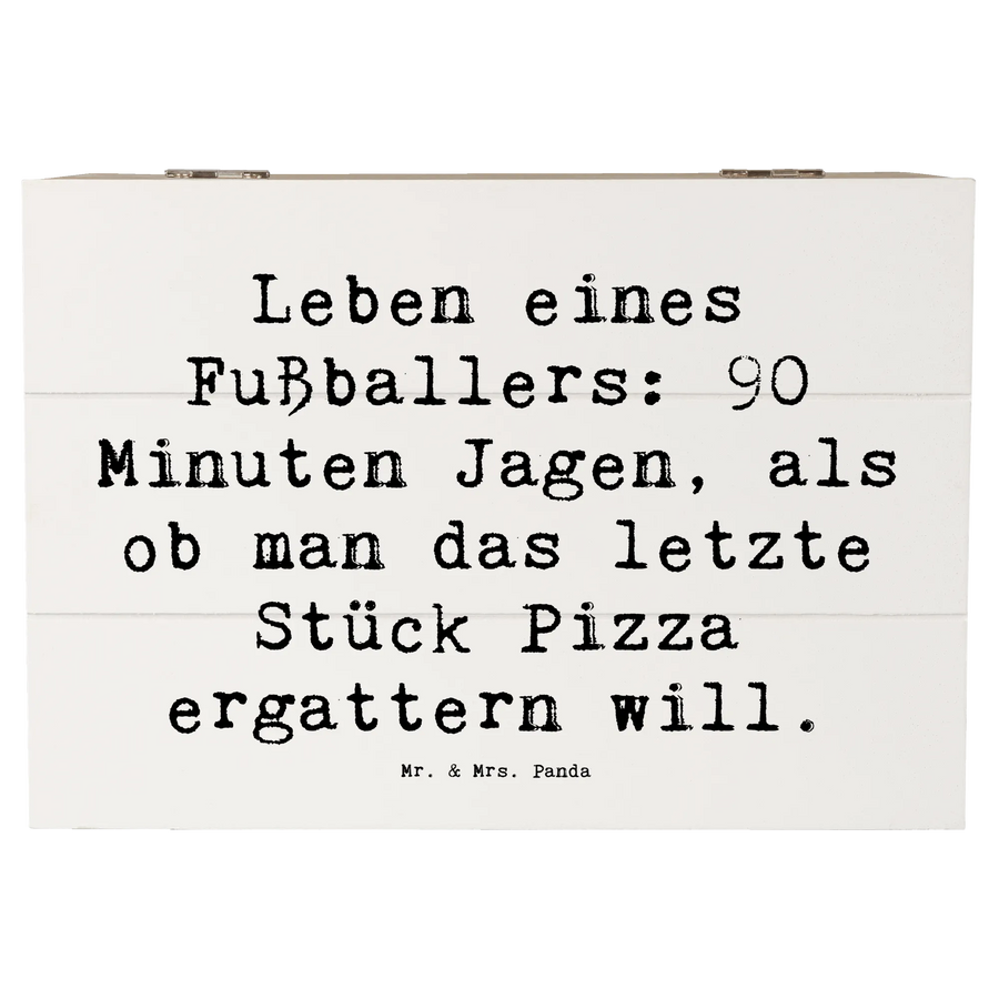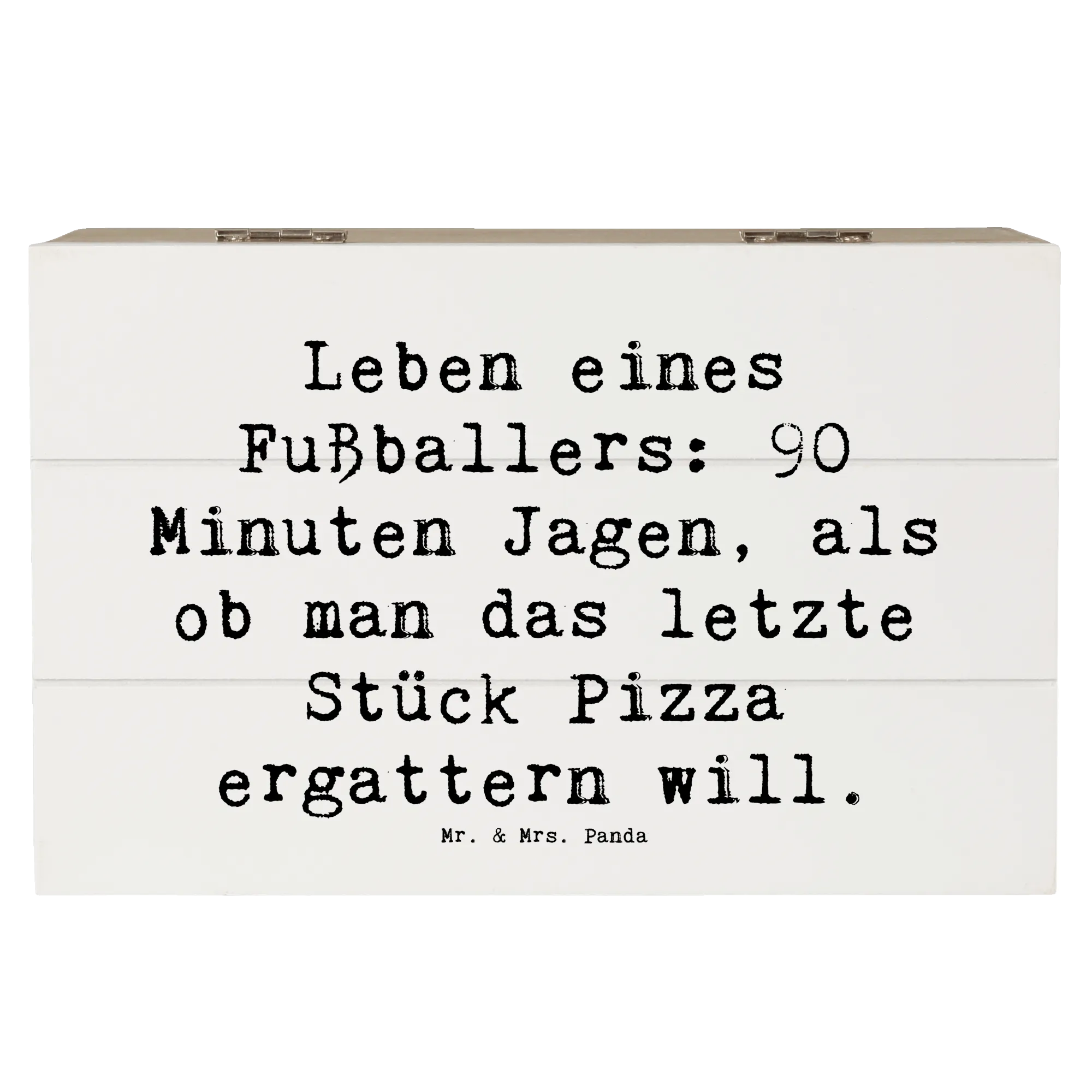 Holzkiste Spruch Leben eines Fußballers: 90 Minuten Jagen, als ob man das letzte Stück Pizza ergattern will. - 22 x 15 cm - Weiß