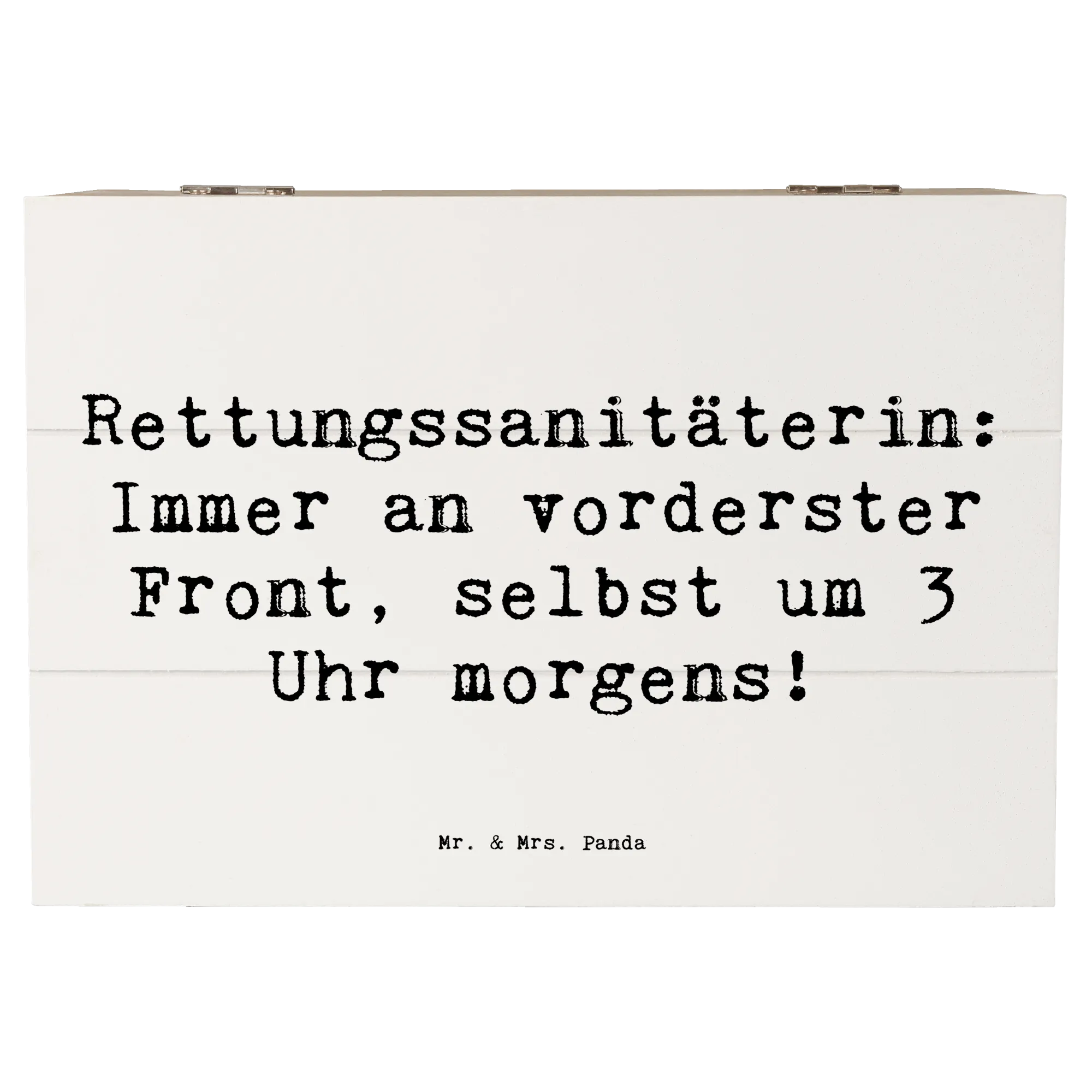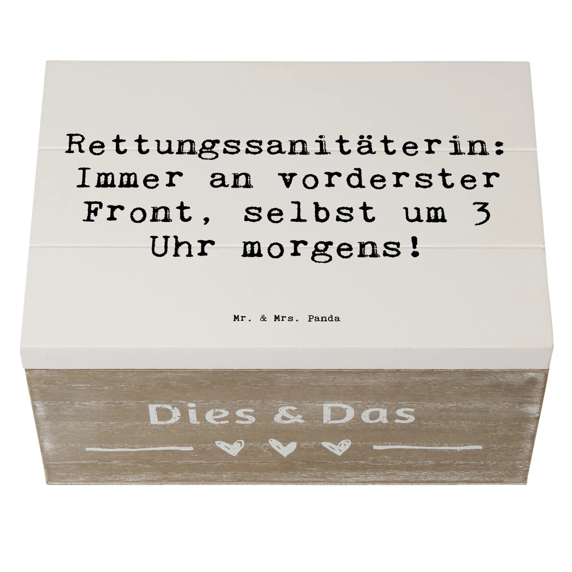 Die wunderschöne Holzkiste von Mr. & Mrs. Panda mit dem Motiv "Rettungssanitäterin: Immer an vorderster Front, selbst um 3 Uhr morgens!" ist das perfekte Geschenk für all jene, die sich in diesem wichtigen Beruf engagieren.