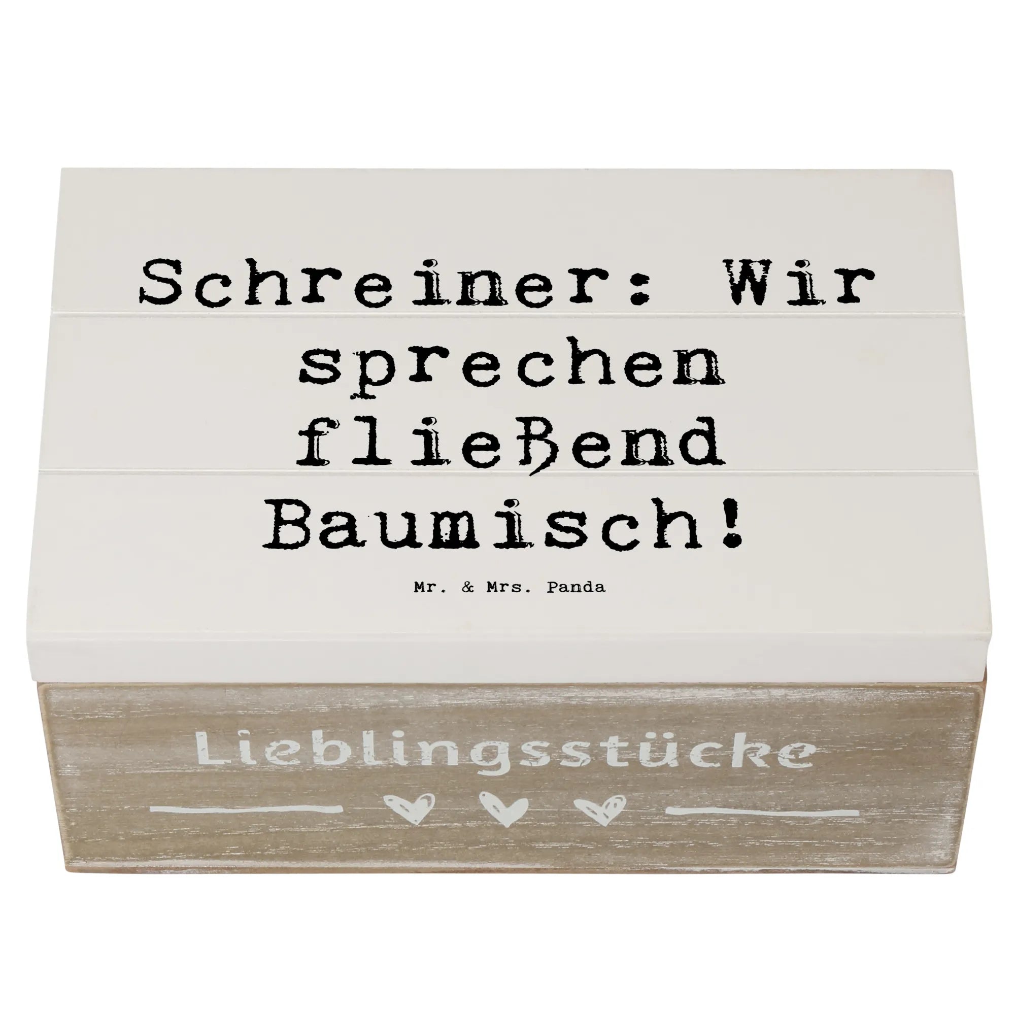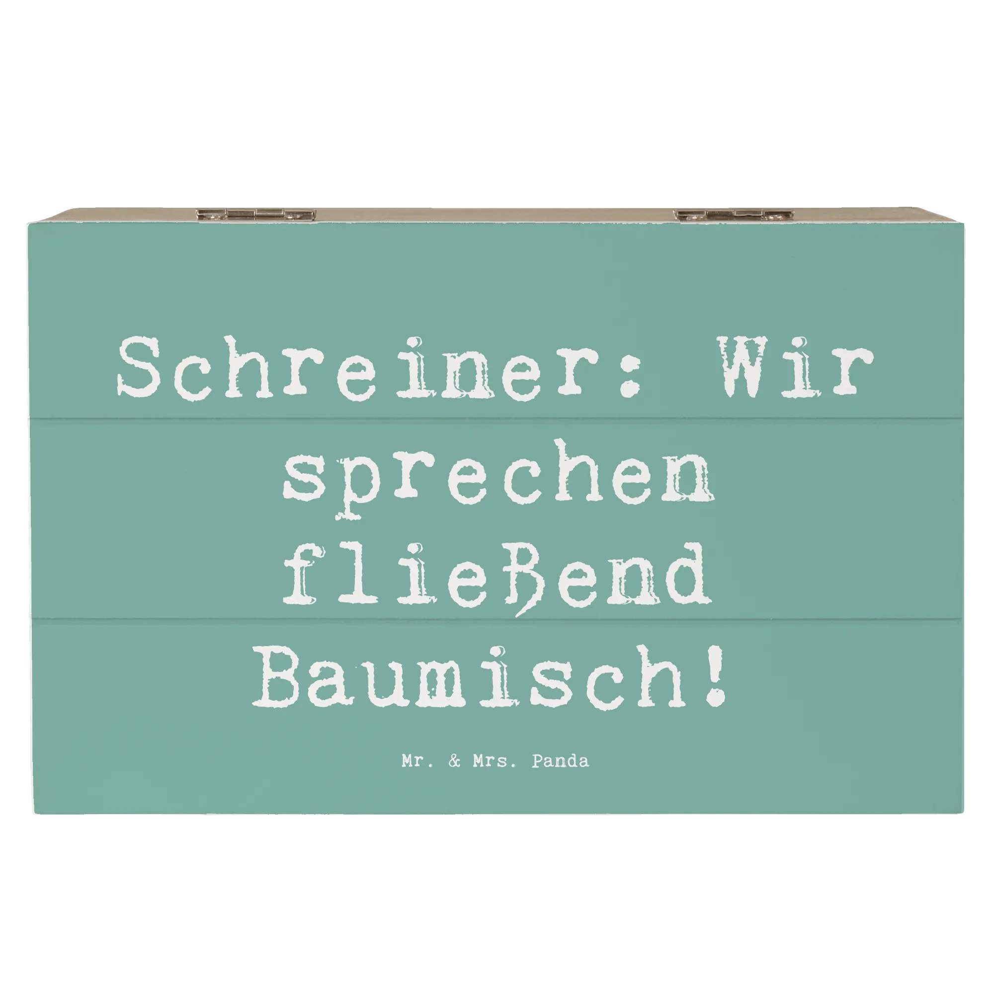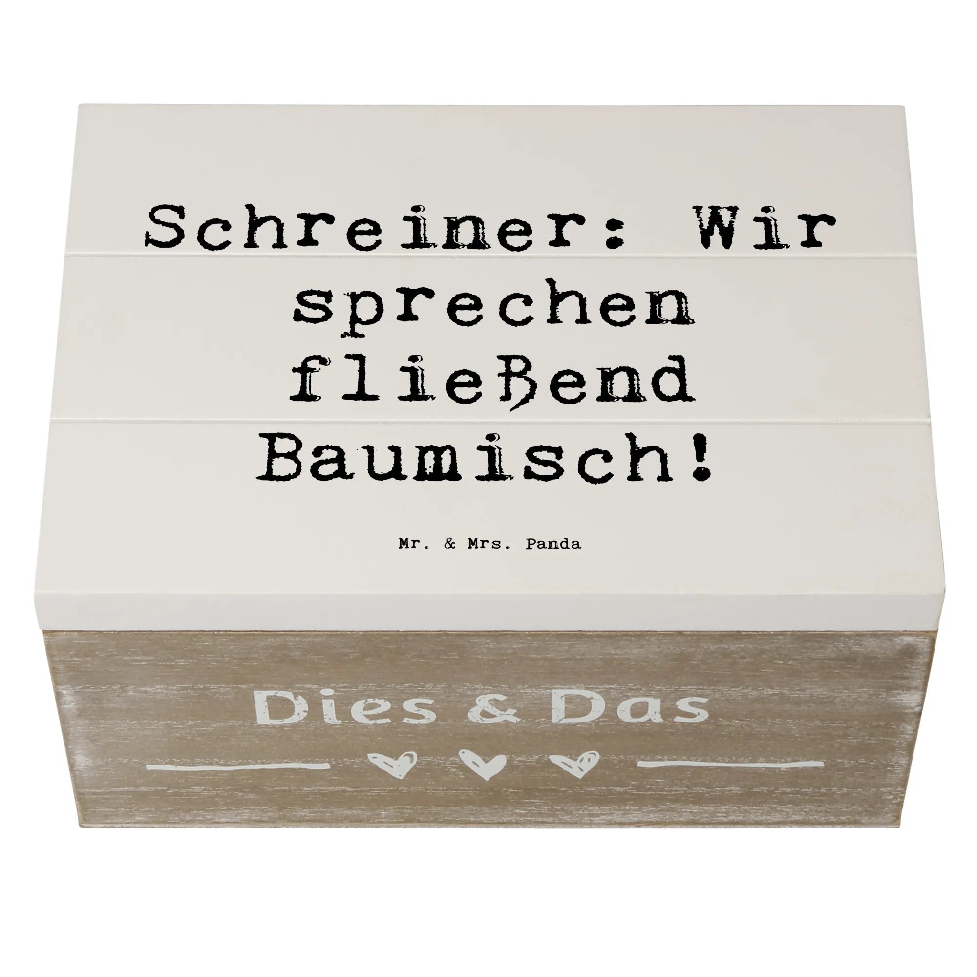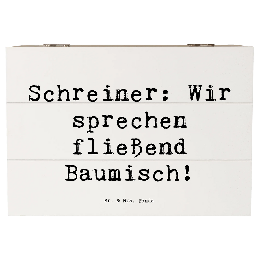 Die wunderschöne Holzkiste von Mr. & Mrs. Panda ist der perfekte Ort, um all deine besonderen Schätze aufzubewahren! Mit dem liebevollen Motiv des Schreiners, das den Slogan "Schreiner: Wir sprechen fließend Baumisch!" trägt, spricht dieses Stück die Herzen all derjenigen an, die die Holzarbeit und die Liebe zum Handwerk schätzen.