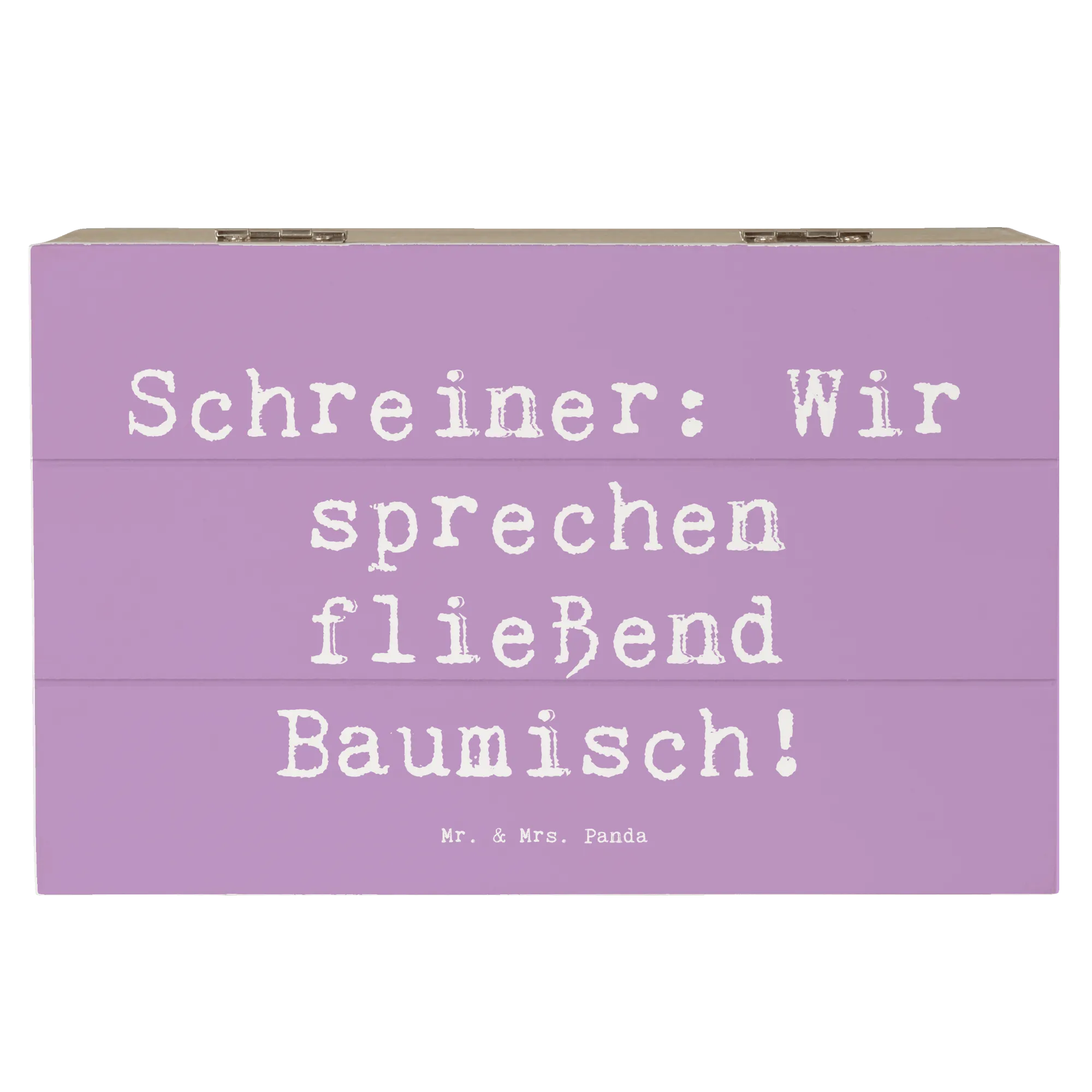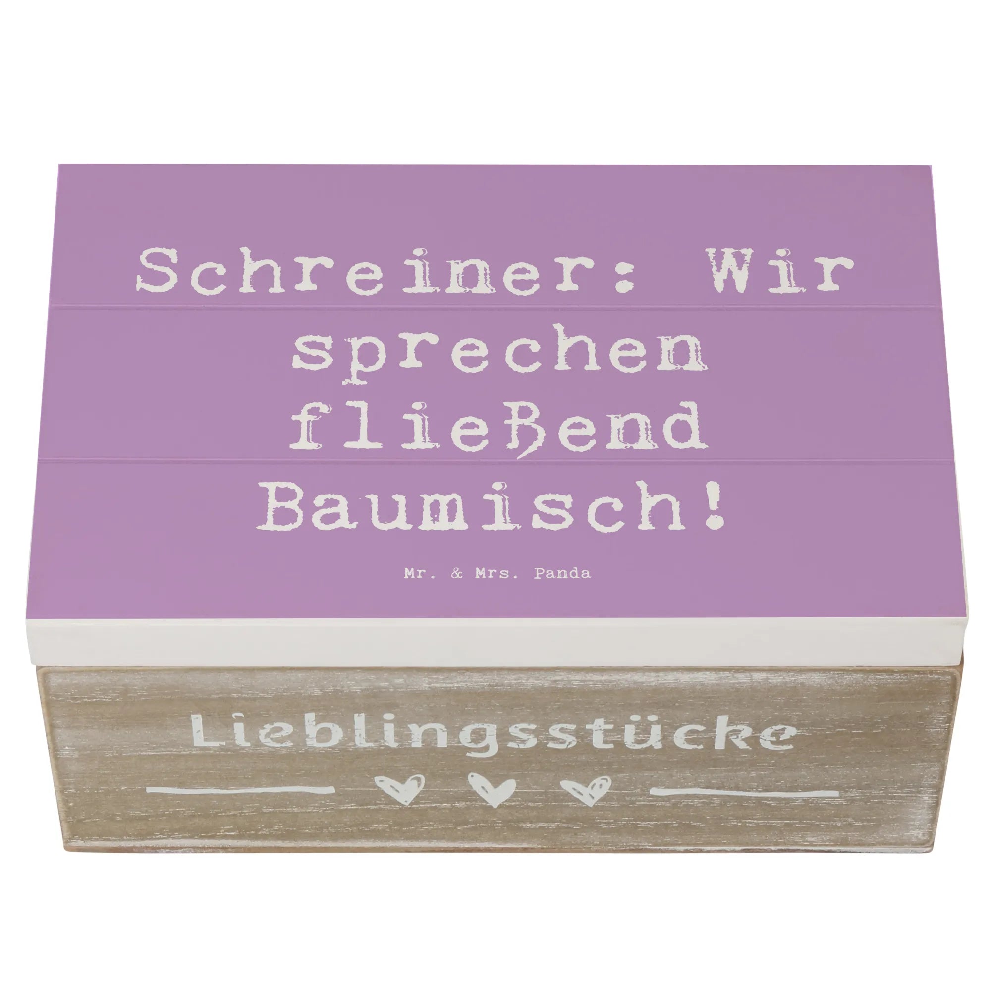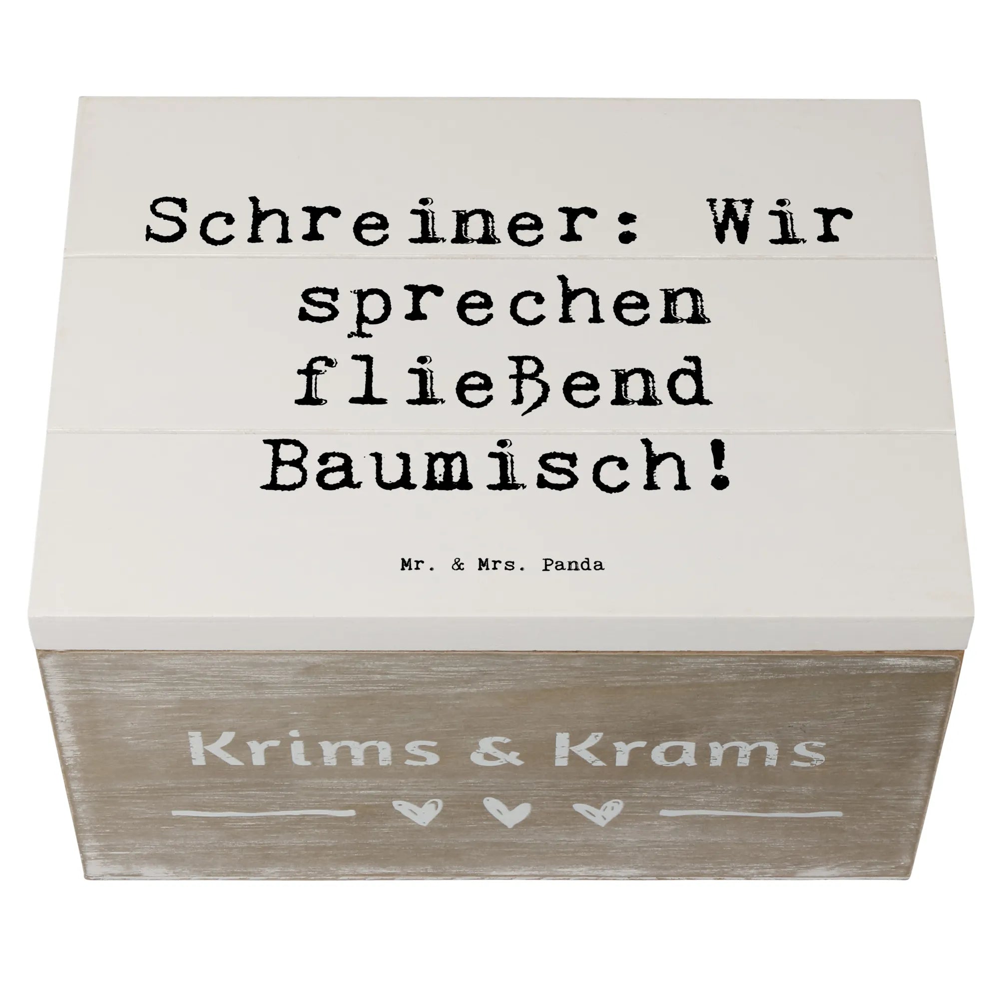 Die wunderschöne Holzkiste von Mr. & Mrs. Panda ist der perfekte Ort, um all deine besonderen Schätze aufzubewahren! Mit dem liebevollen Motiv des Schreiners, das den Slogan "Schreiner: Wir sprechen fließend Baumisch!" trägt, spricht dieses Stück die Herzen all derjenigen an, die die Holzarbeit und die Liebe zum Handwerk schätzen.