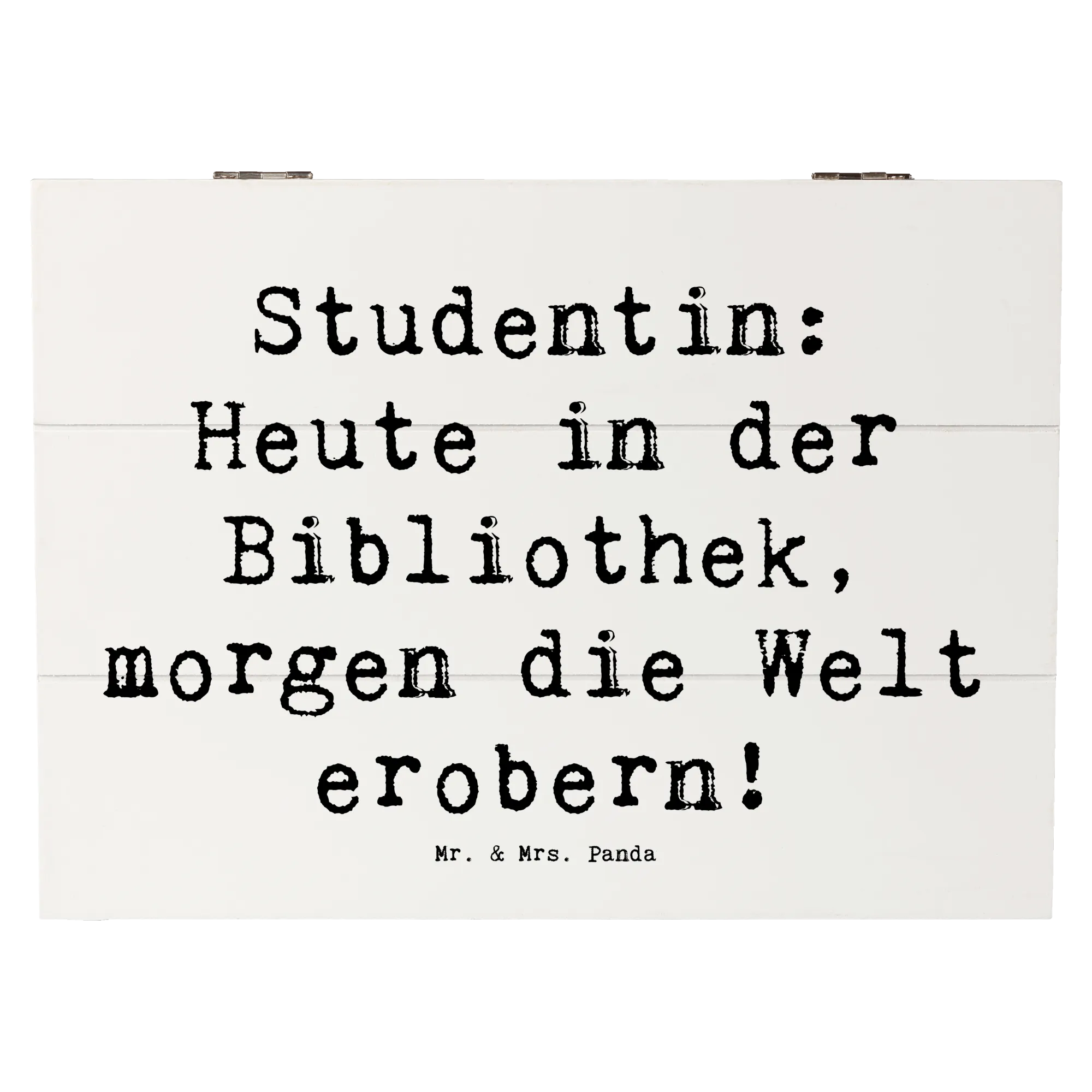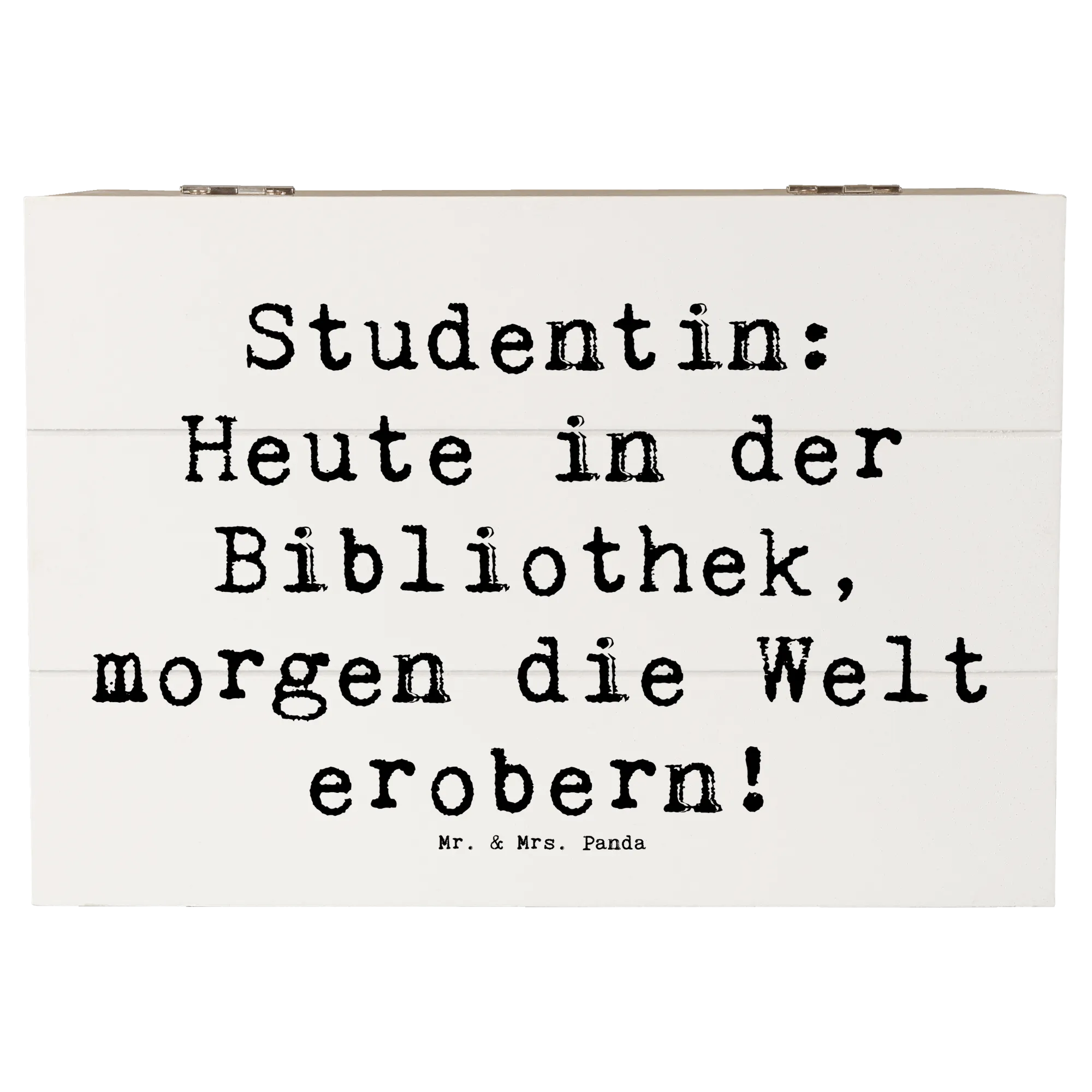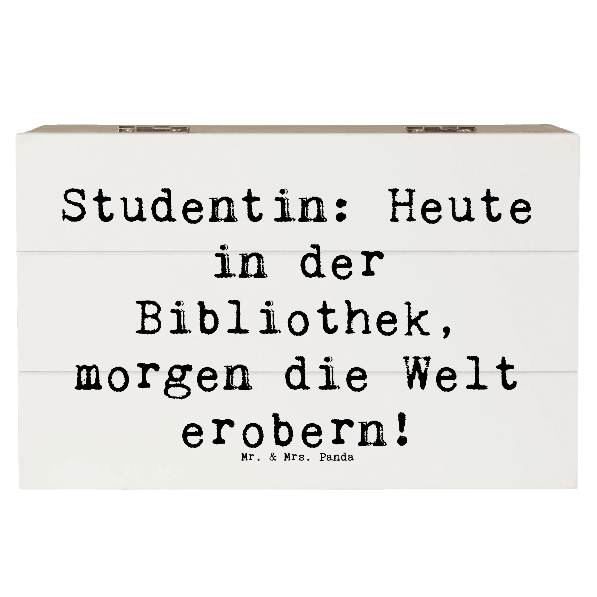Holzkiste Spruch Studentin: Heute in der Bibliothek, morgen die Welt erobern! - 22 x 15 cm - Weiß