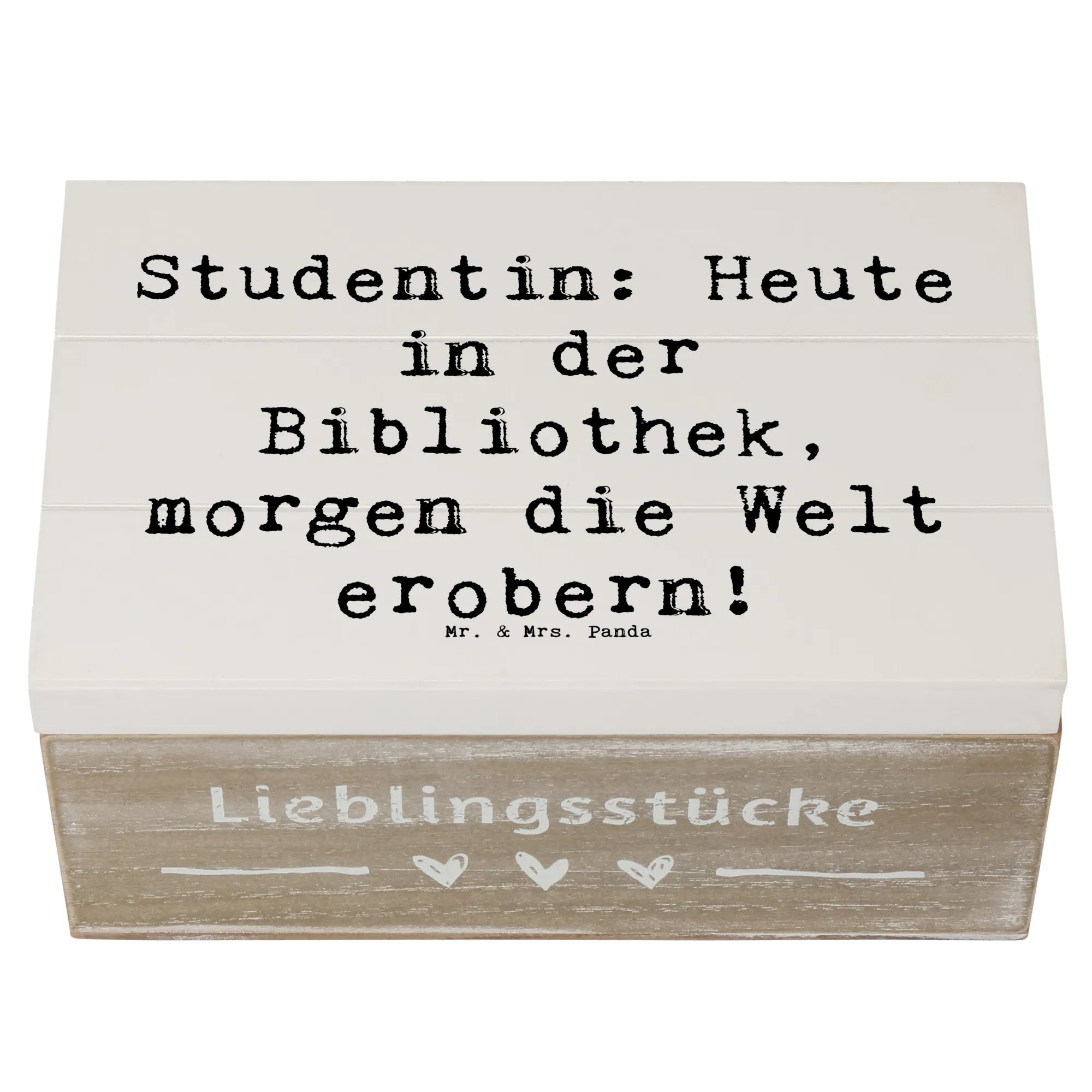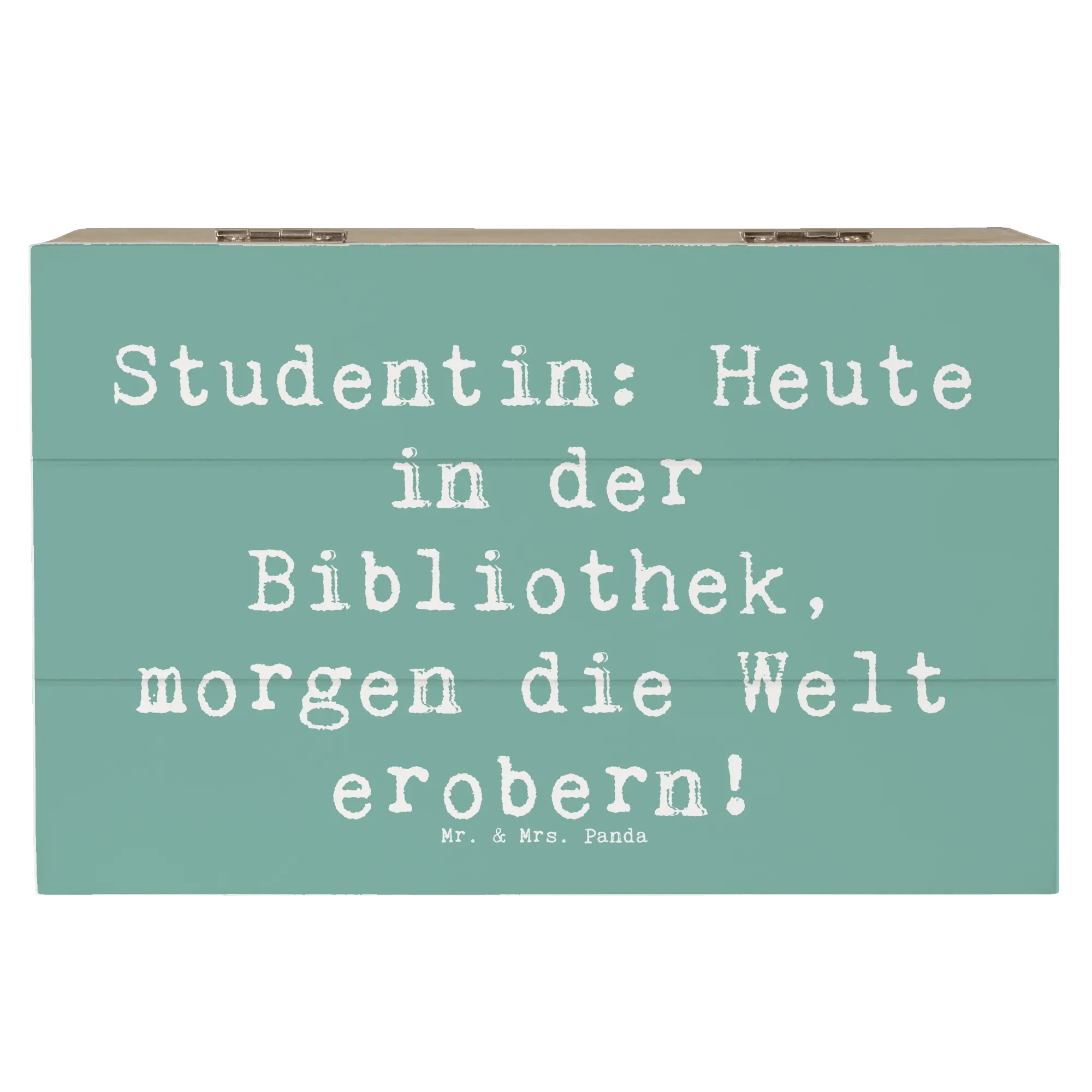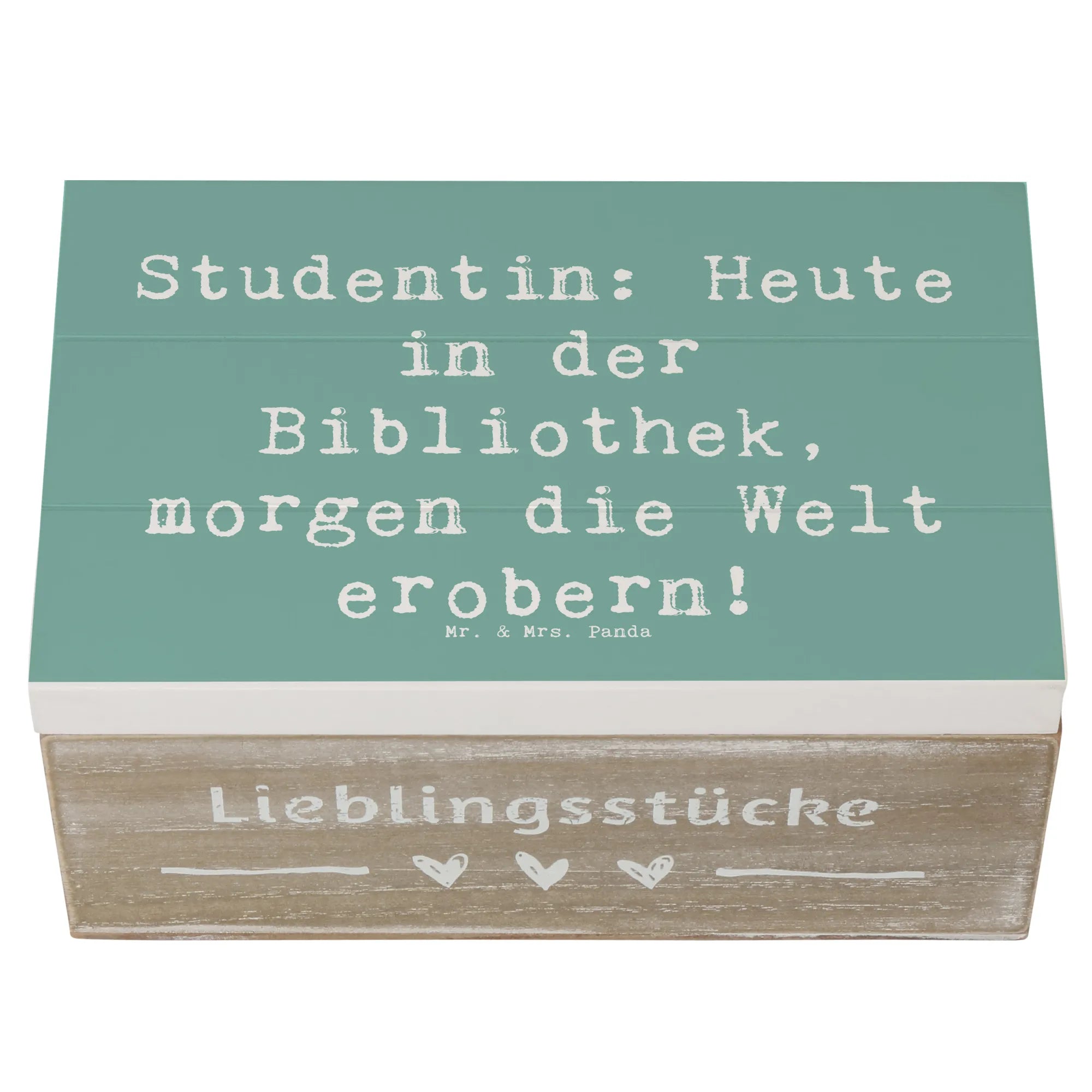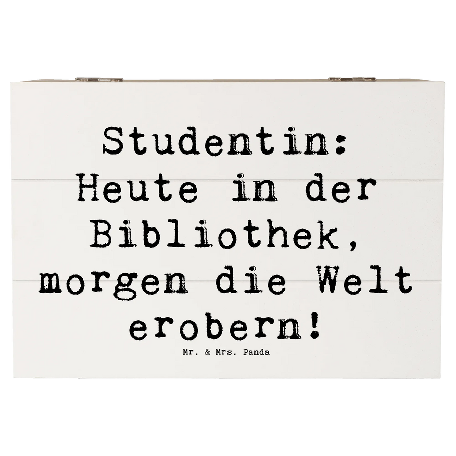 Diese wundervolle Holzkiste von Mr. & Mrs. Panda ist das perfekte Geschenk für jede Studentin! Mit dem inspirierenden Spruch "Heute in der Bibliothek, morgen die Welt erobern!" ist sie nicht nur ein schöner Blickfang, sondern auch eine praktische Aufbewahrungsbox für all ihre wertvollen Erinnerungen und Schätze.