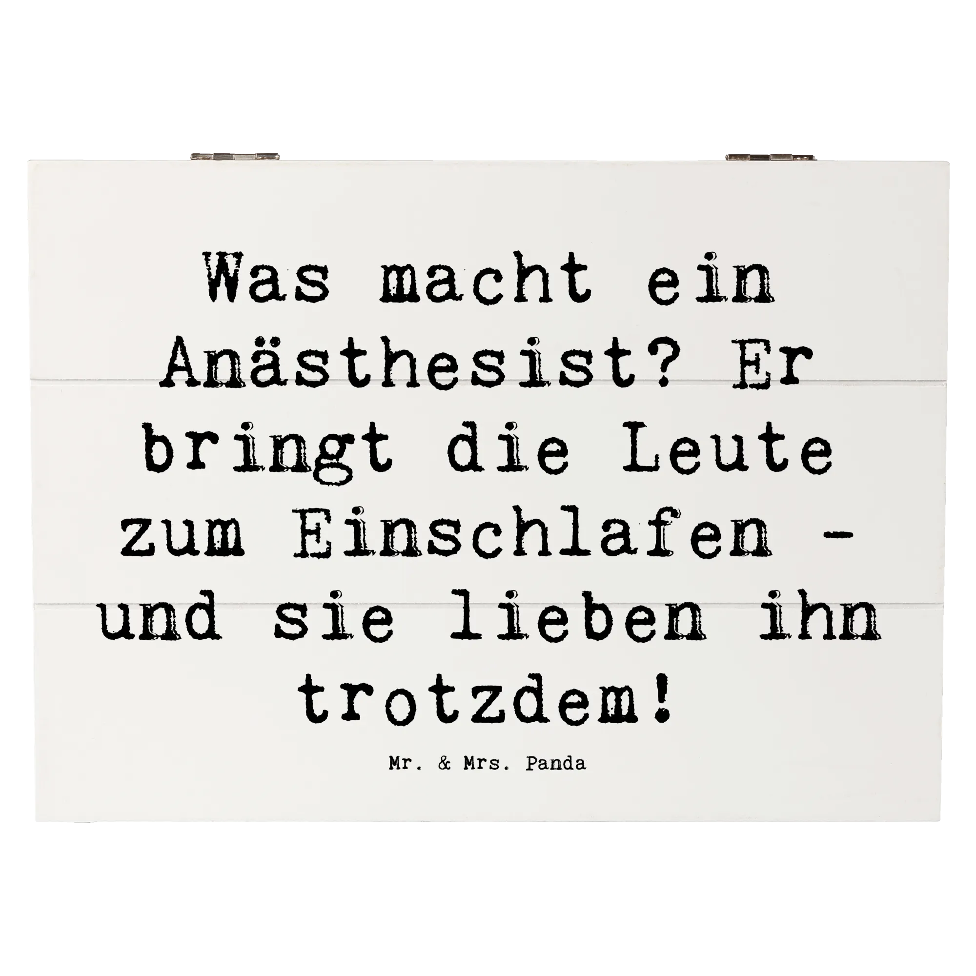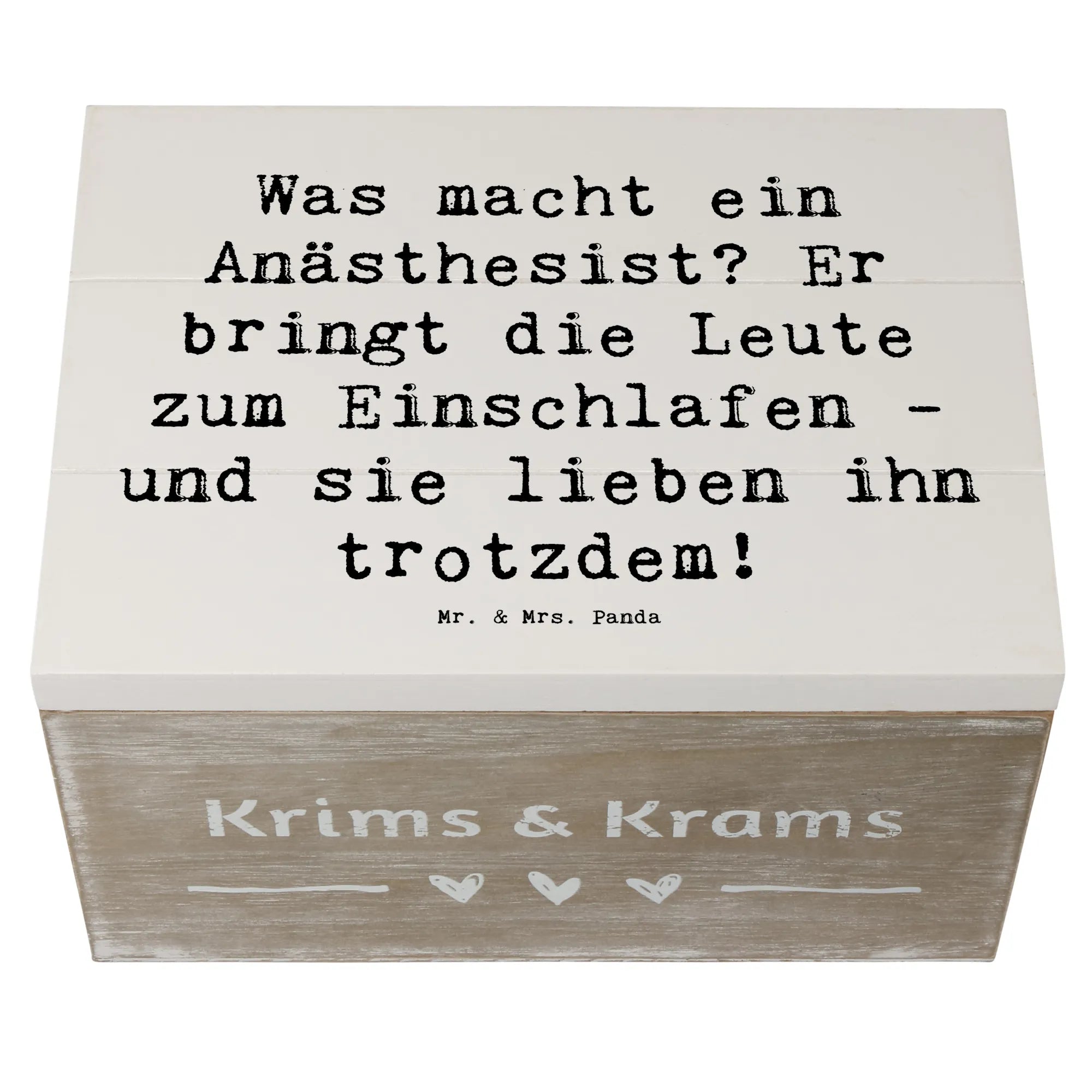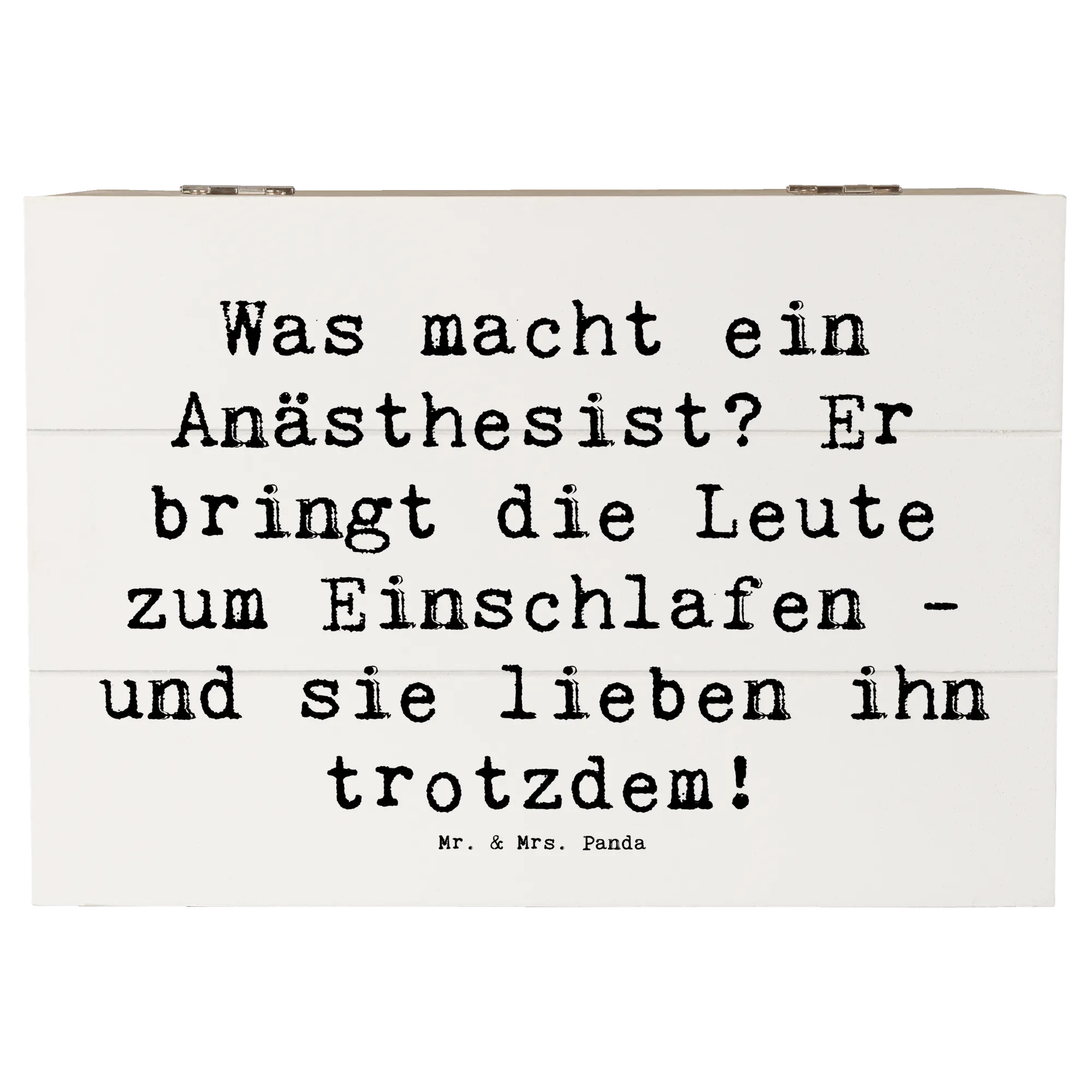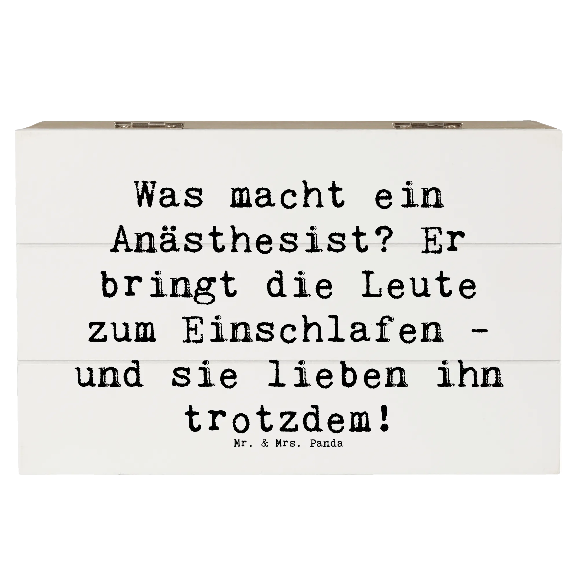 Holzkiste Spruch Was macht ein Anästhesist? Er bringt die Leute zum Einschlafen - und sie lieben ihn trotzdem! - 22 x 15 cm - Weiß