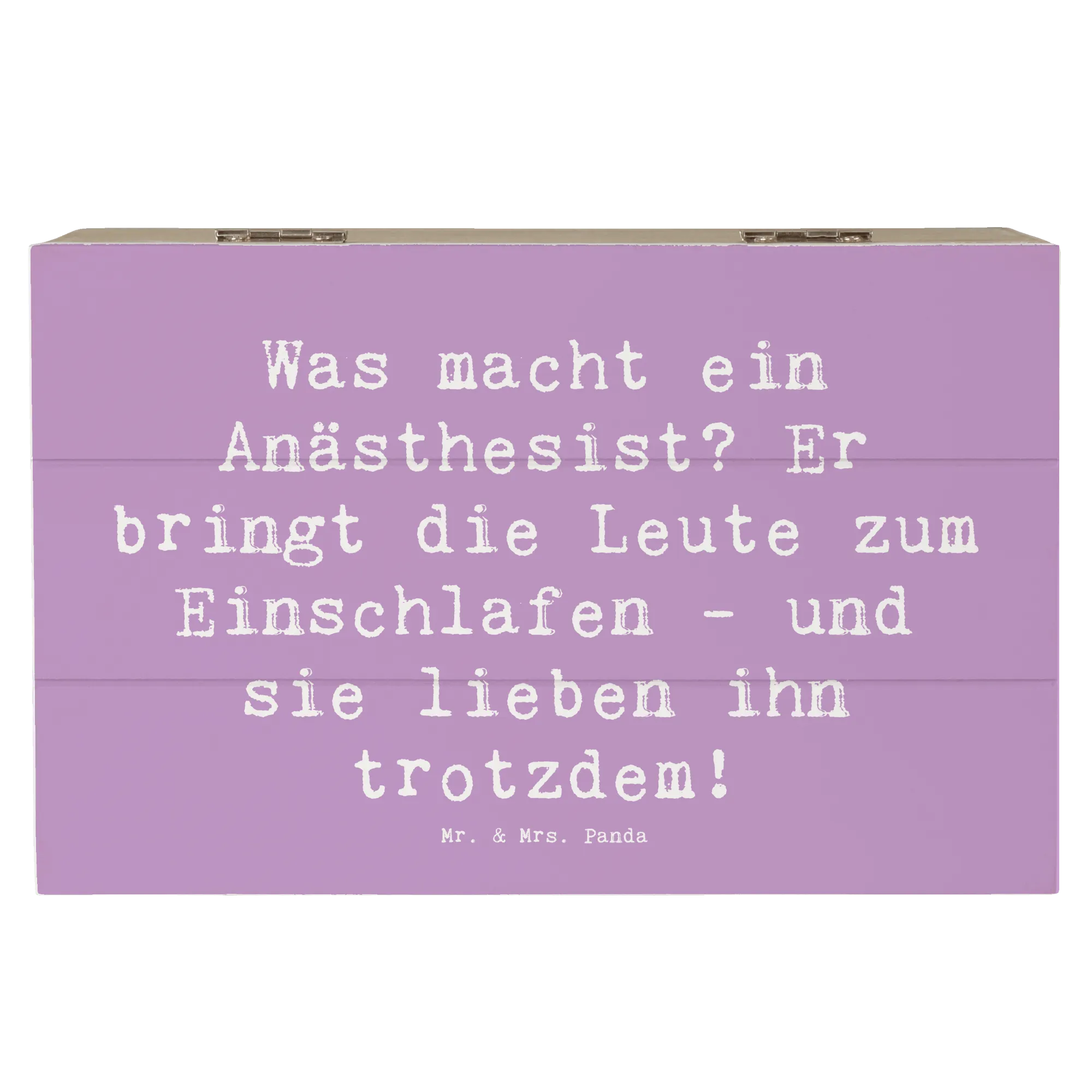 Die wunderschöne Holzkiste von Mr. & Mrs. Panda ist der perfekte Aufbewahrungsort für alle deine Erinnerungen und Schätze! Diese liebevoll gestaltete Erinnerungskiste, bedruckt mit dem einzigartigen Motiv "Anästhesist" und dem witzigen Spruch "Was macht ein Anästhesist? Er bringt die Leute zum Einschlafen - und sie lieben ihn trotzdem!", eignet sich hervorragend für verschiedene Anlässe.