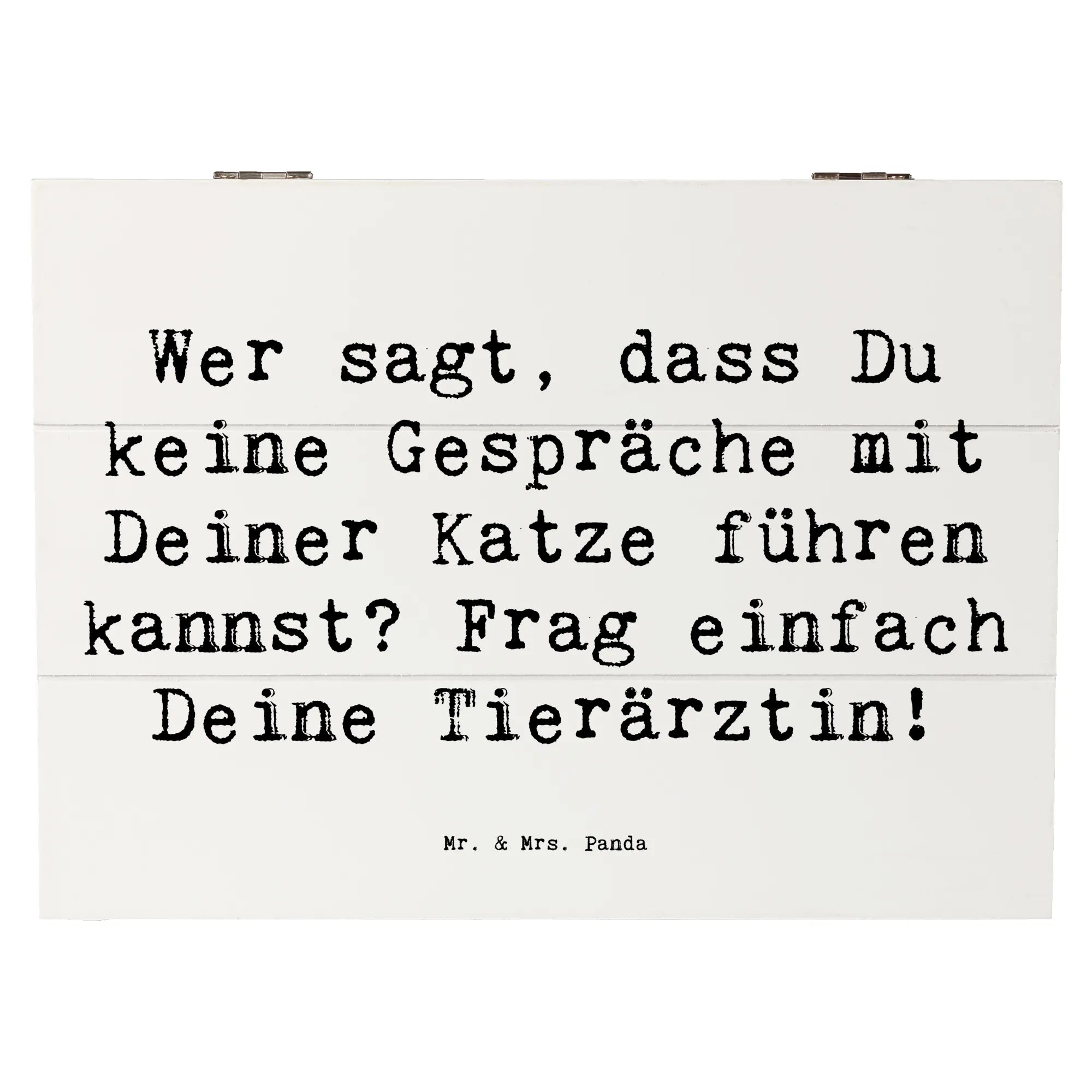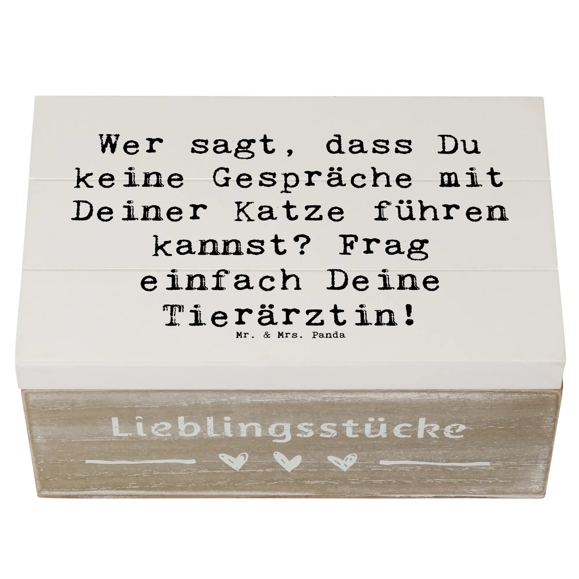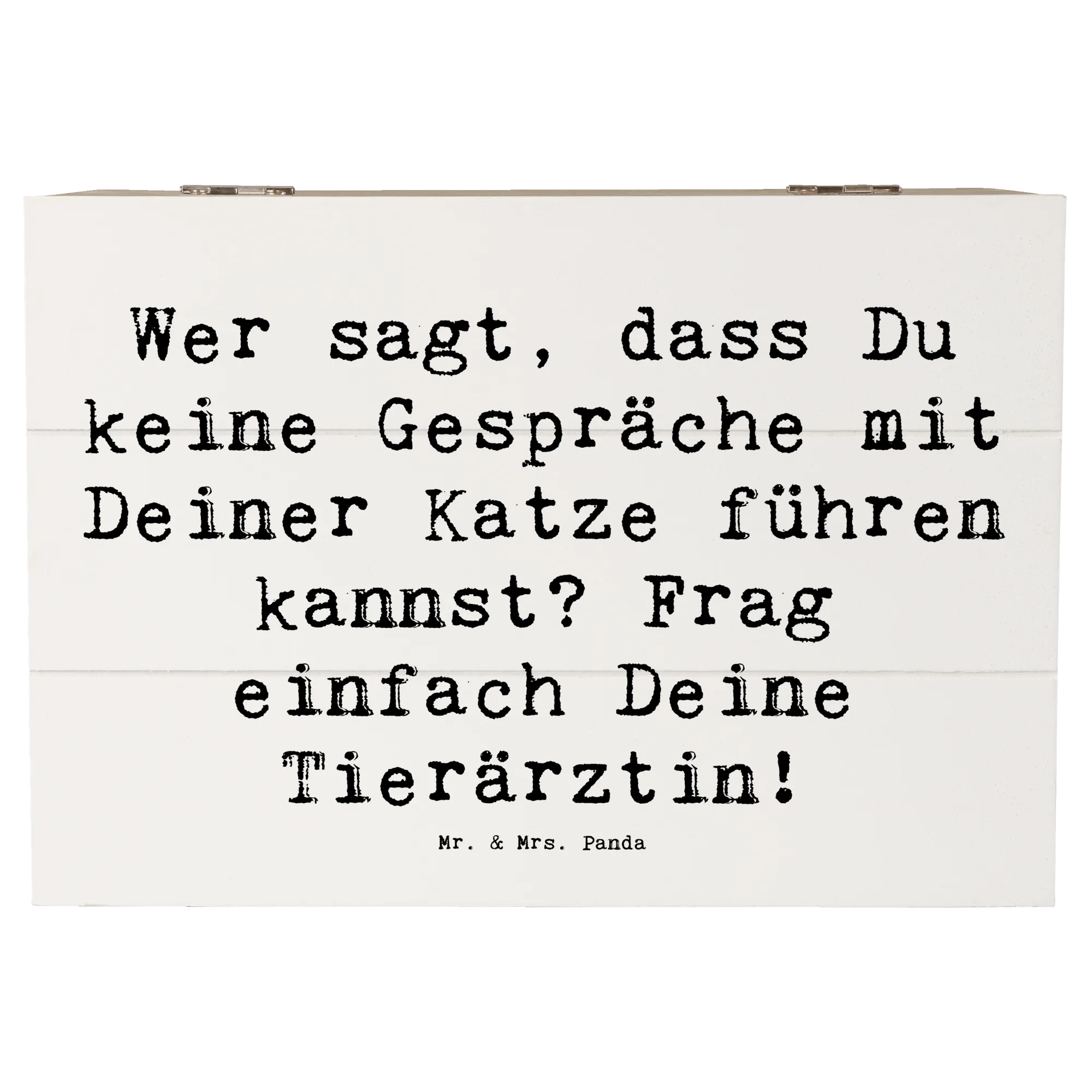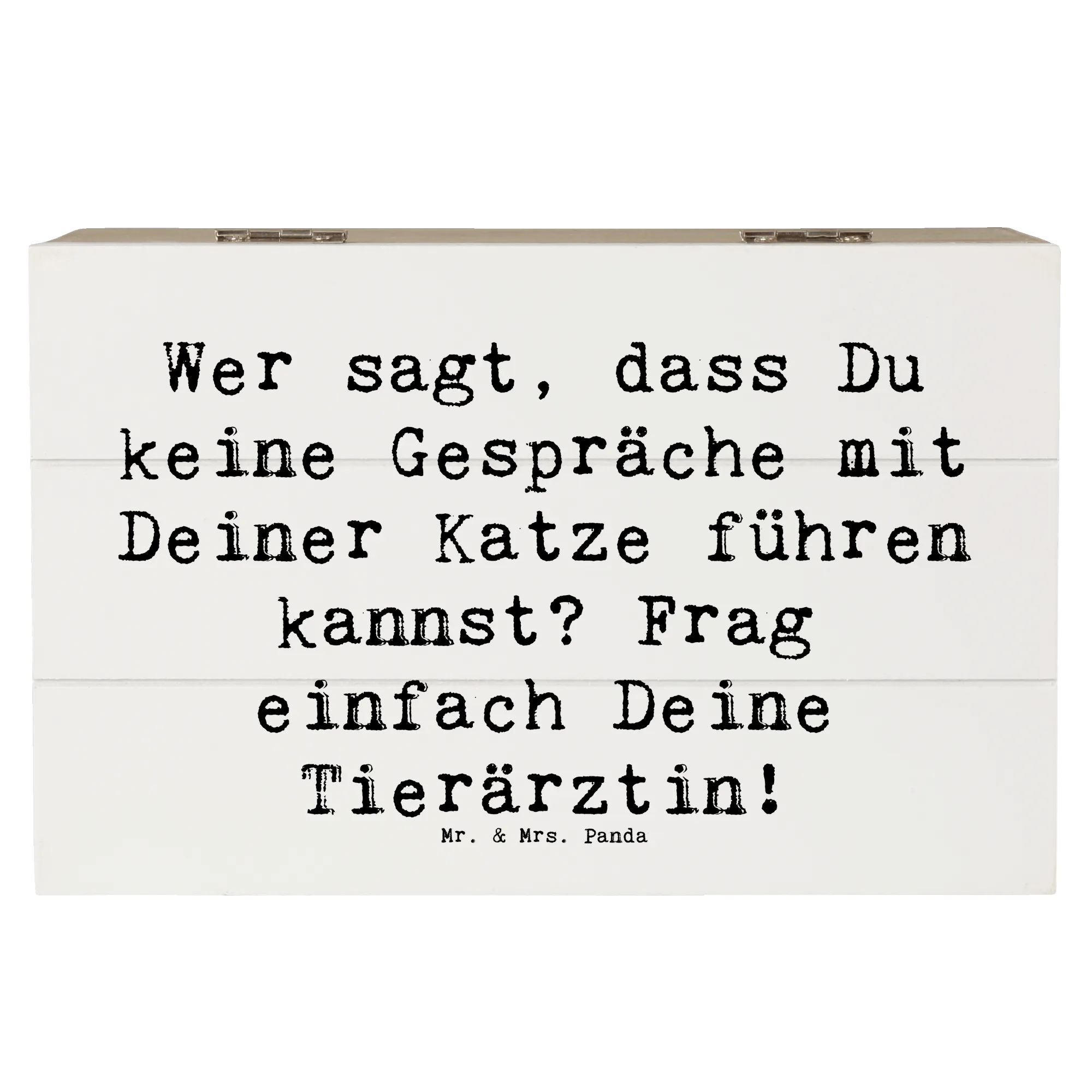 Holzkiste Spruch Wer sagt, dass Du keine Gespräche mit Deiner Katze führen kannst? Frag einfach Deine Tierärztin! - 22 x 15 cm - Weiß