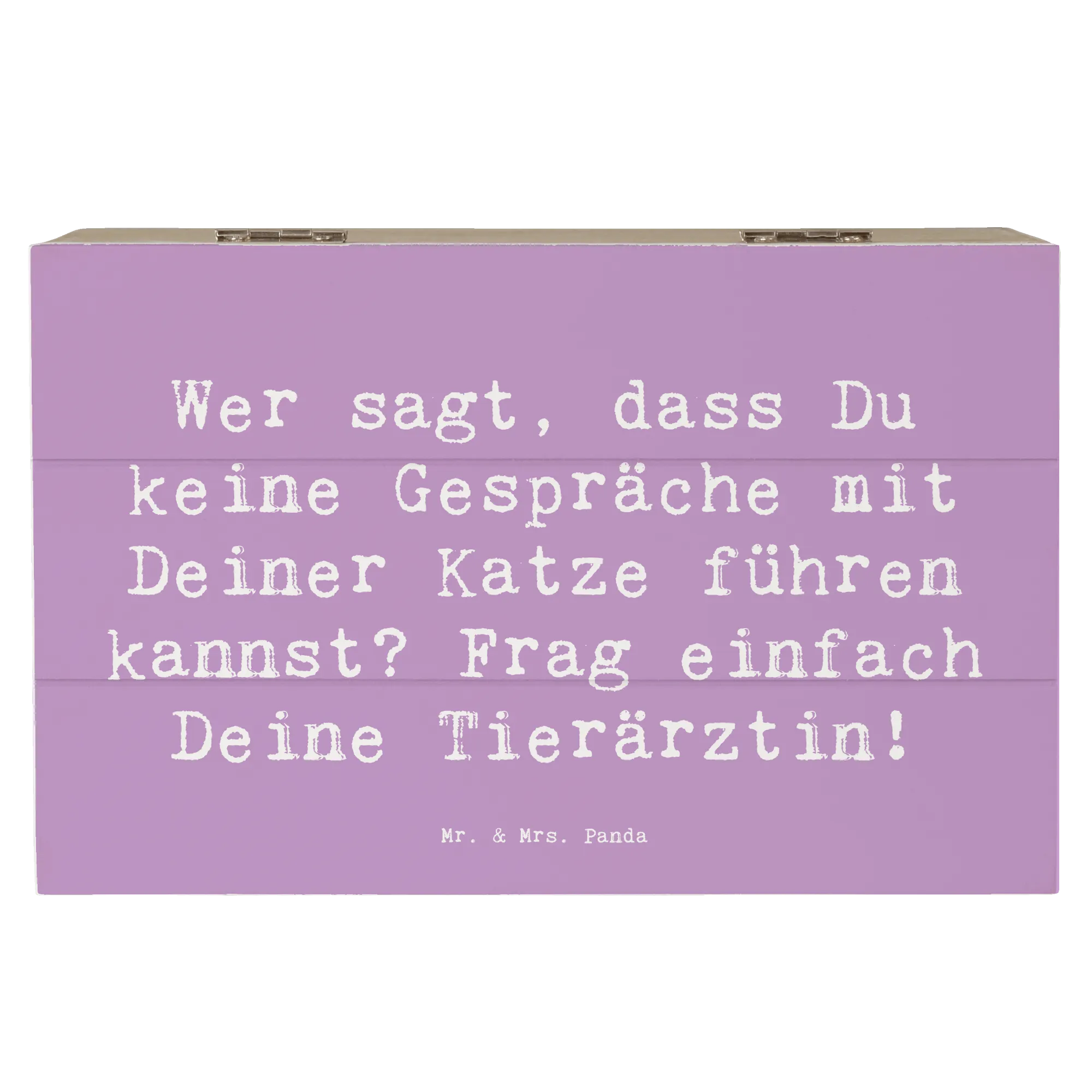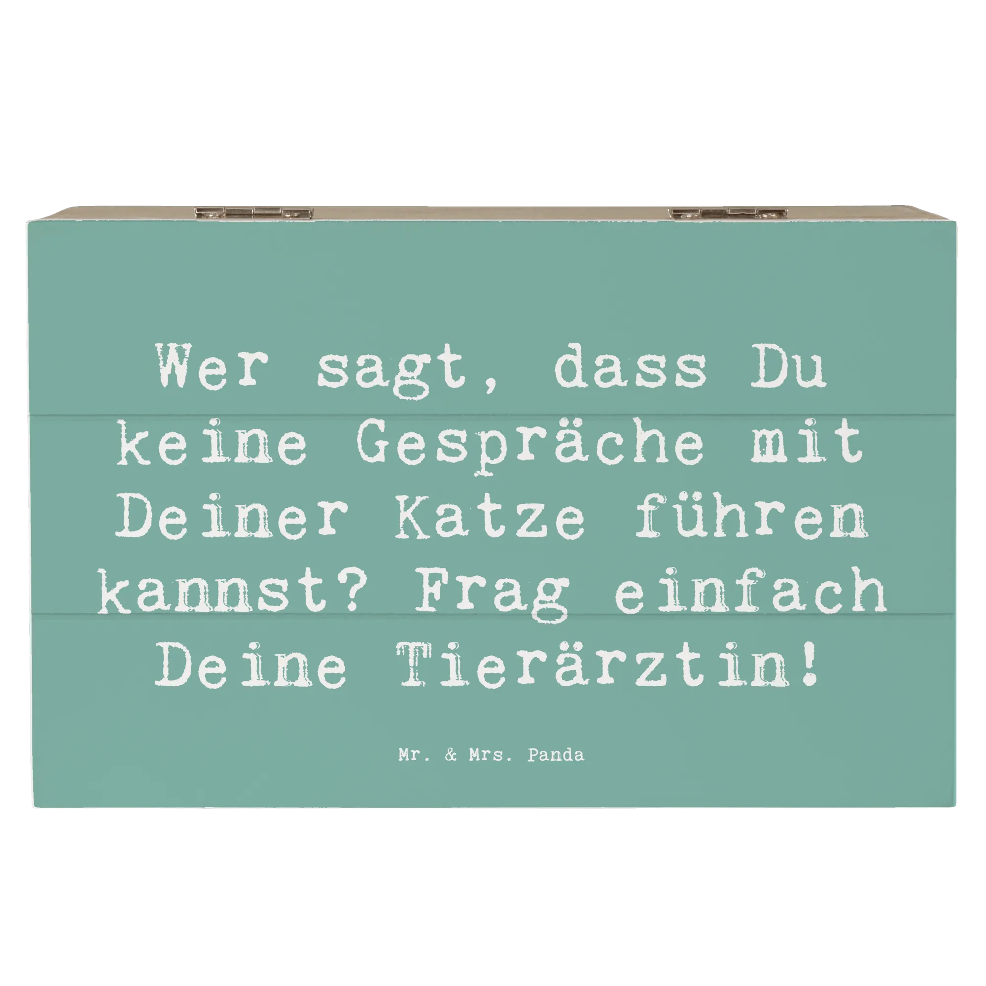 Die wunderschöne Holzkiste von Mr. & Mrs. Panda ist das perfekte Geschenk für alle Tierärztinnen und Tierärzte oder einfach für Tierliebhaber! Mit dem süßen Motiv "Tierärztin" und dem witzigen Spruch "Wer sagt, dass Du keine Gespräche mit Deiner Katze führen kannst? Frag einfach Deine Tierärztin!" ist diese Kiste nicht nur ein praktischer Aufbewahrungsort, sondern auch ein echter Hingucker.