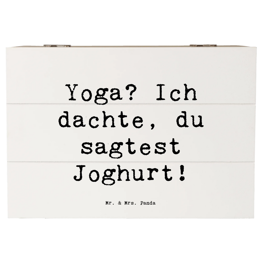 Mit einem lustigen Spruch "Yoga? Ich dachte, du sagtest Joghurt!" bringt diese Kiste ein Lächeln auf jedes Gesicht und eignet sich hervorragend als Erinnerungskiste für besondere Anlässe wie Geburtstage, Kommunionen, Konfirmationen oder einfach nur als Aufbewahrungsort für Fotos.