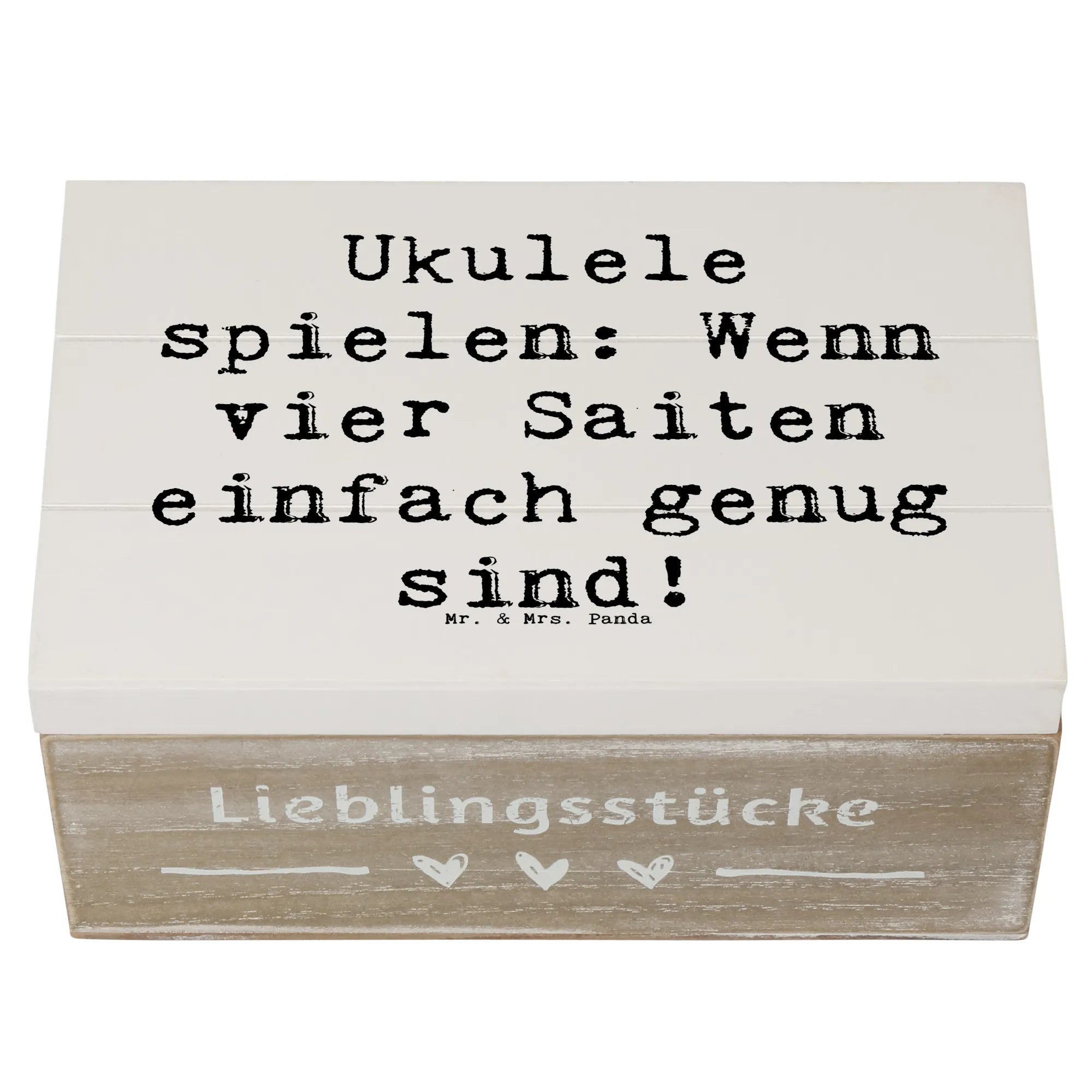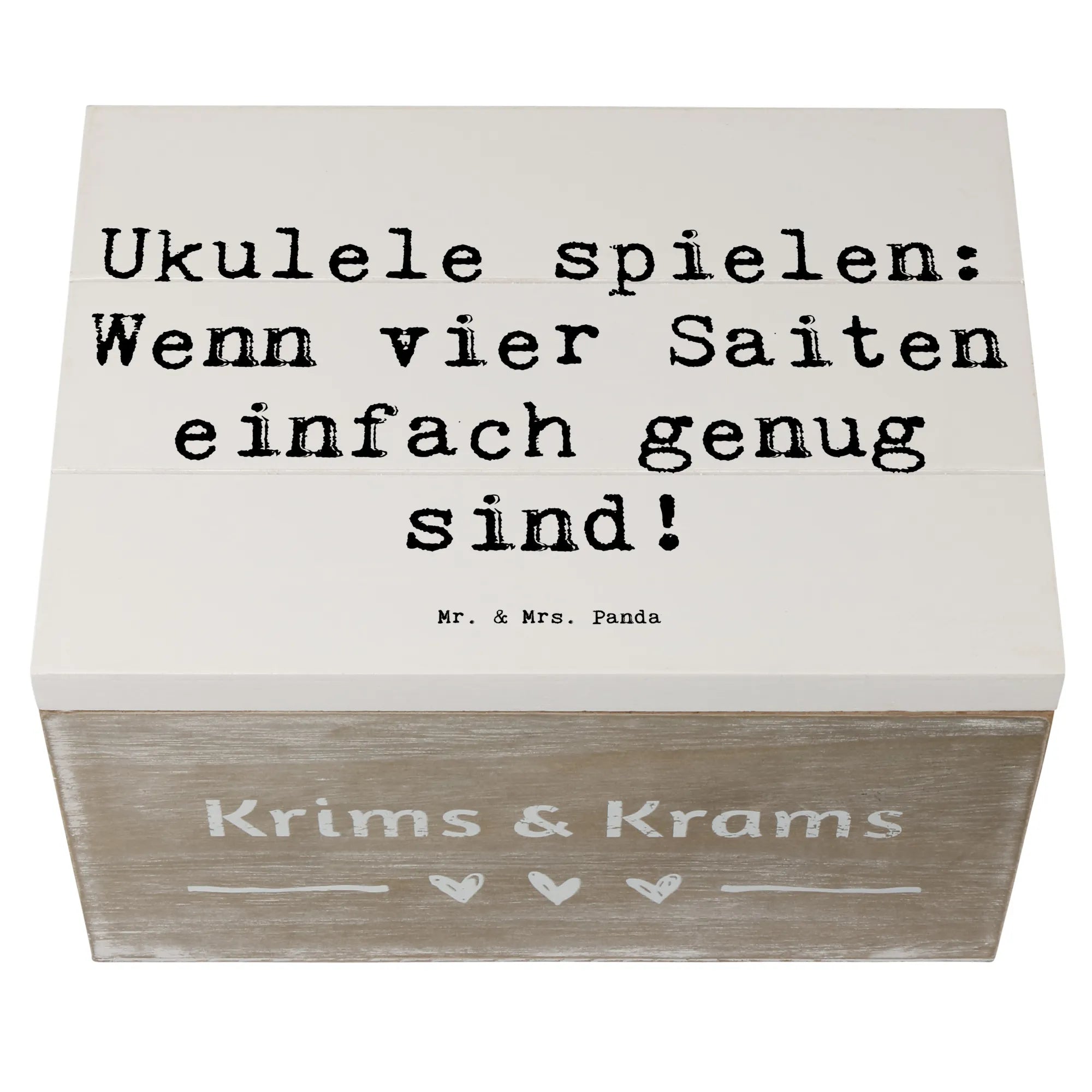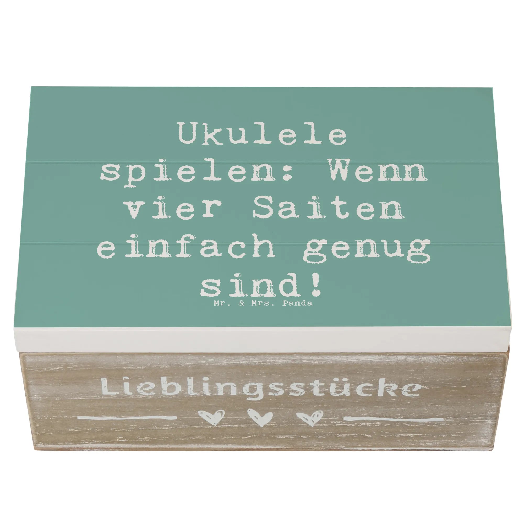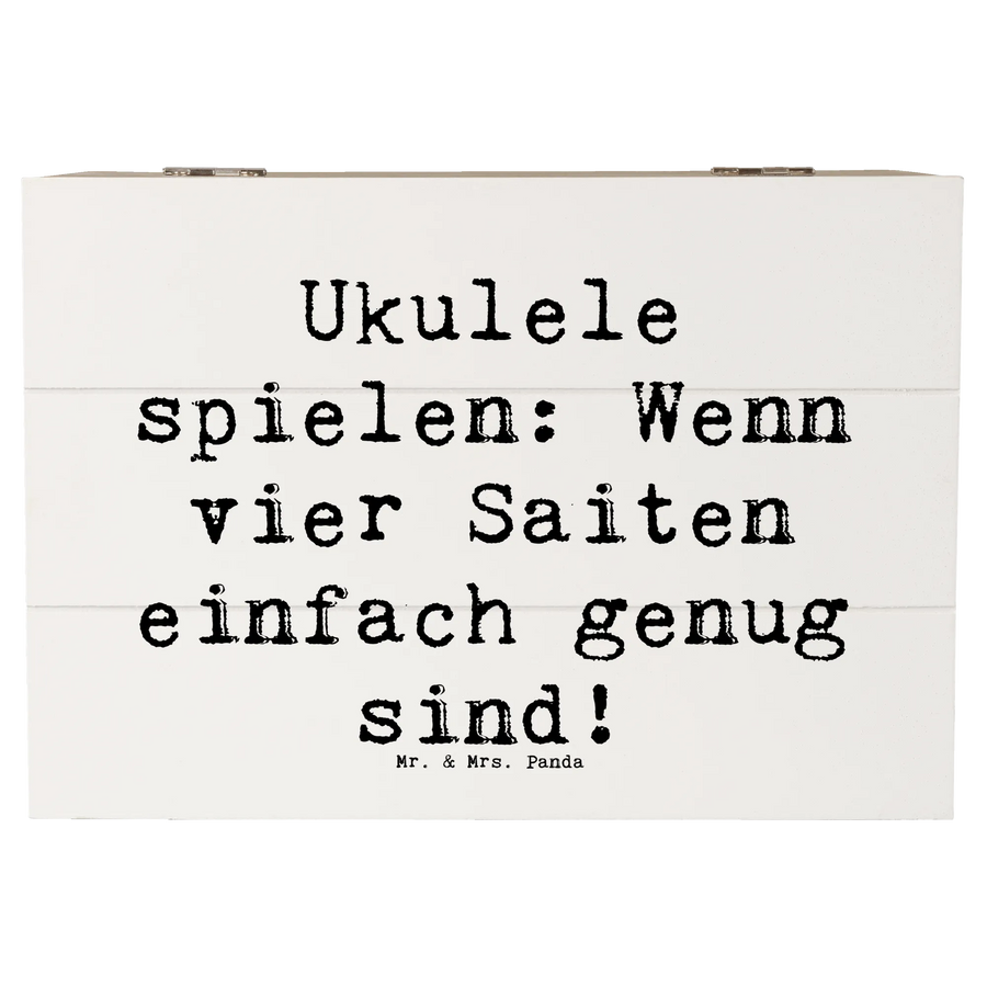 Eine wunderschöne Holzkiste von Mr. & Mrs. Panda, liebevoll bedruckt mit dem fröhlichen Ukulele-Motiv und dem Slogan „Ukulele spielen: Wenn vier Saiten einfach genug sind!“. Diese Erinnerungskiste ist das perfekte Geschenk für alle, die Musik, Sonne und kleine Schätze lieben.